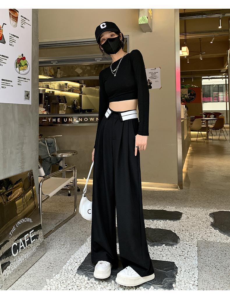 Compra Pantalones retro de estilo americano para mujer, primavera y verano, diseño de chica sexy, sueltos, adelgazantes, pierna recta, pantalones de pierna ancha, de moda. al por mayor en Joom.pro