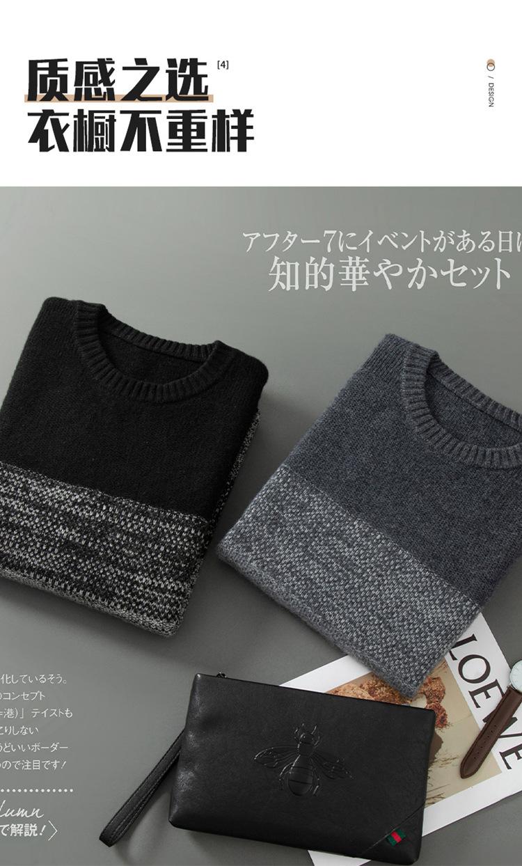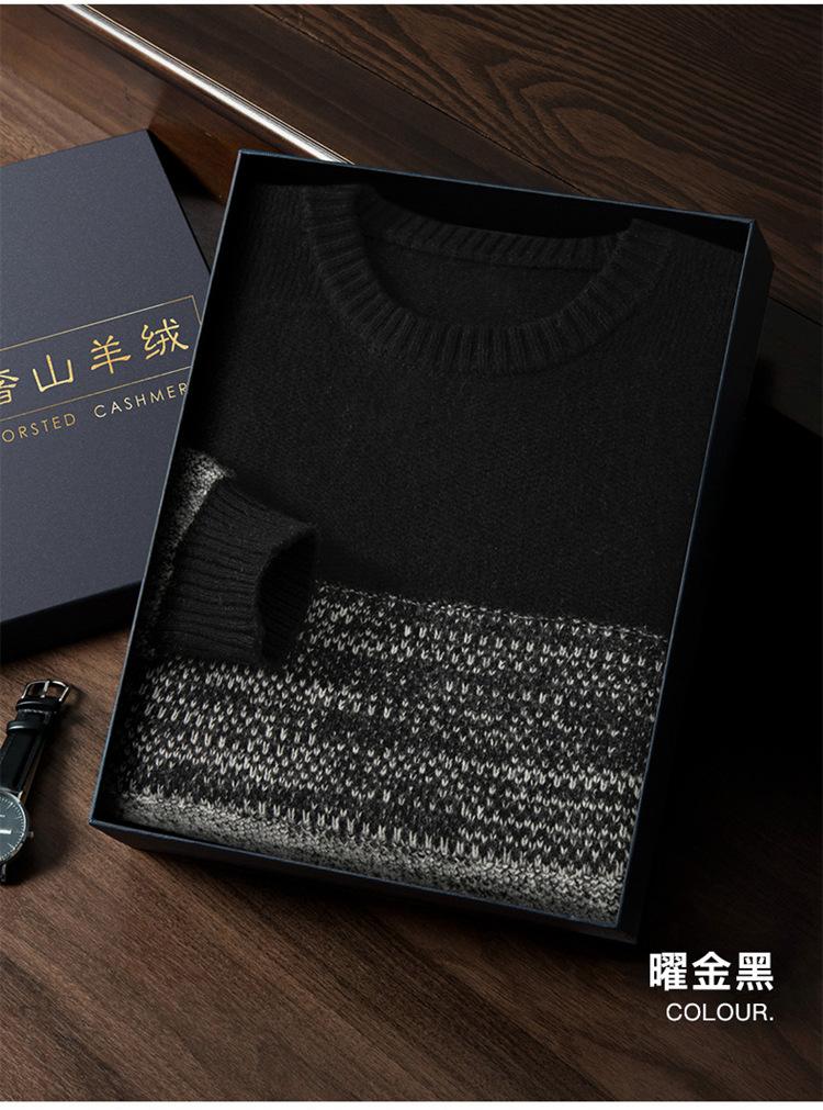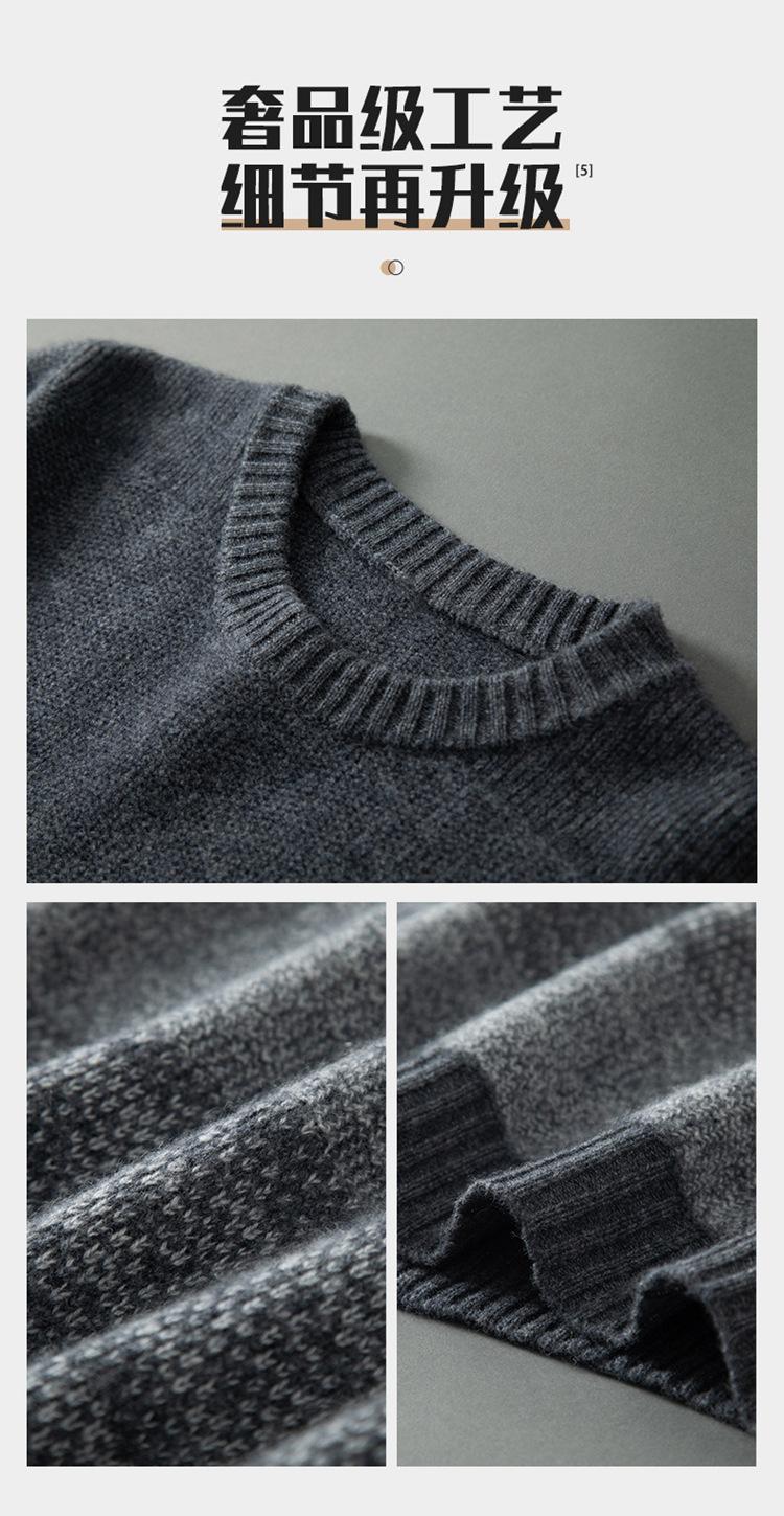 Suéter de cachemira de otoño e invierno para hombre, suéter de jacquard grueso con cuello redondo y diamantes, camisa de manga larga de lana tejida de alta gama