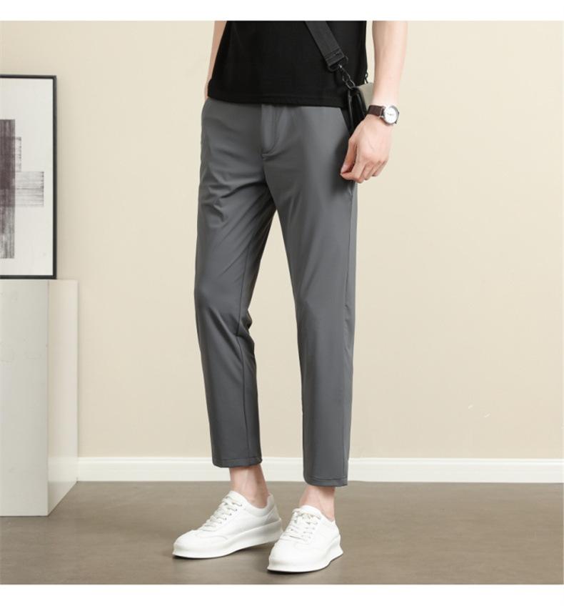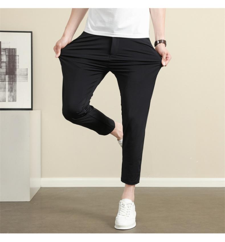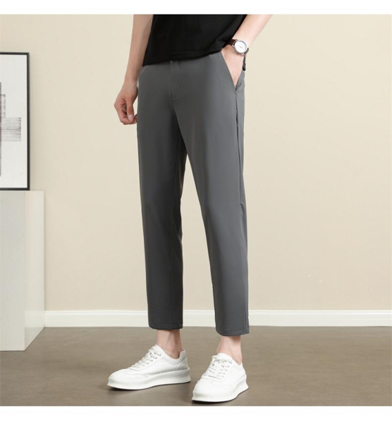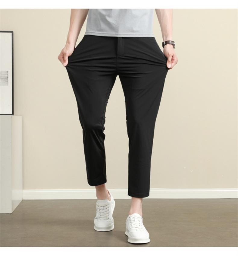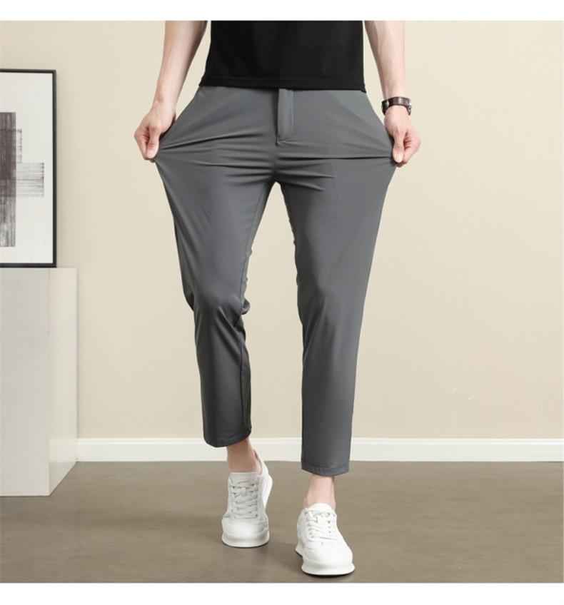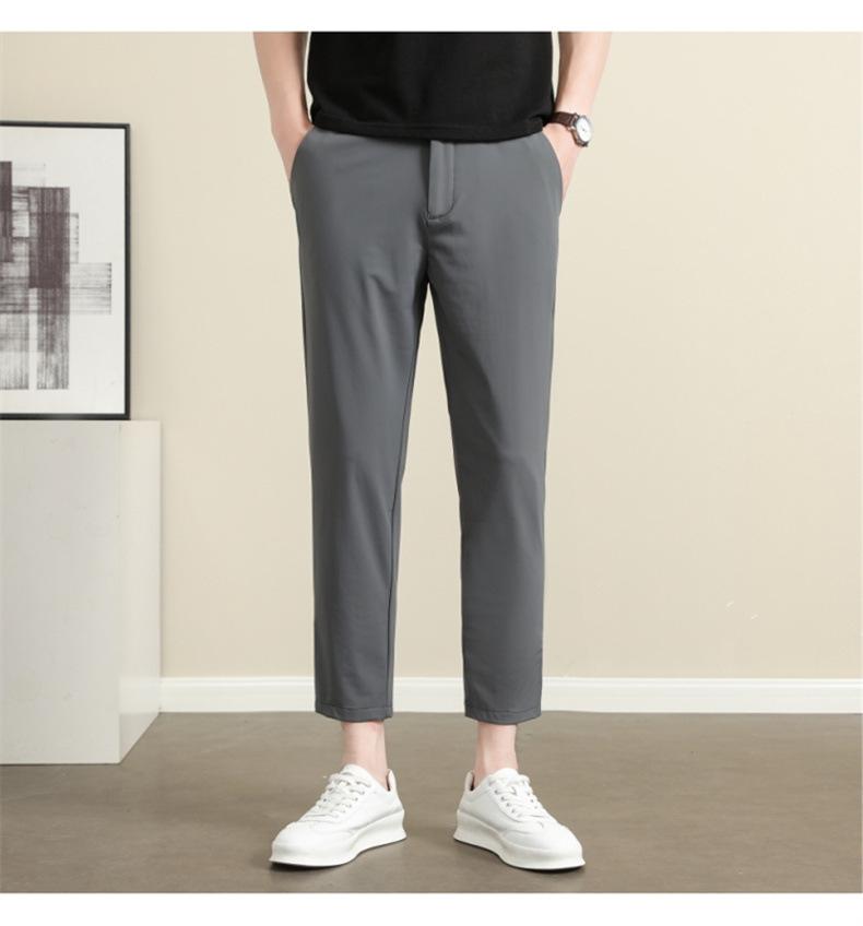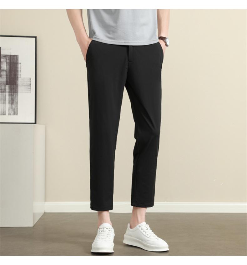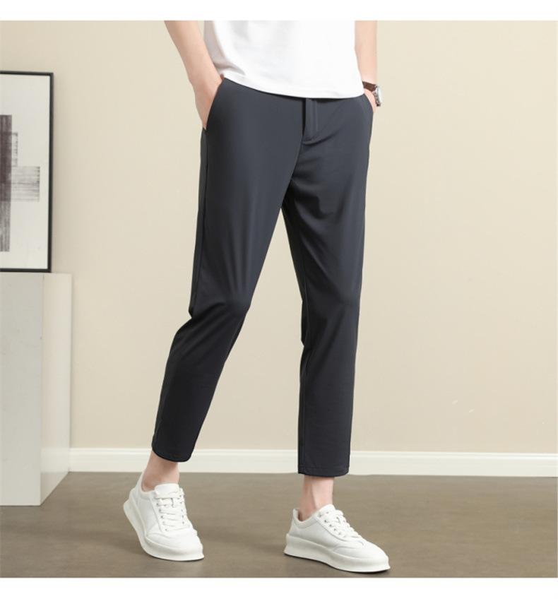 Pantalones de Verano para Hombre Nueva Moda de Marca para Hombre Delgados Casuales de Negocios Recortados para Hombre Elásticos Coreanos para Hombre de Seda de Hielo