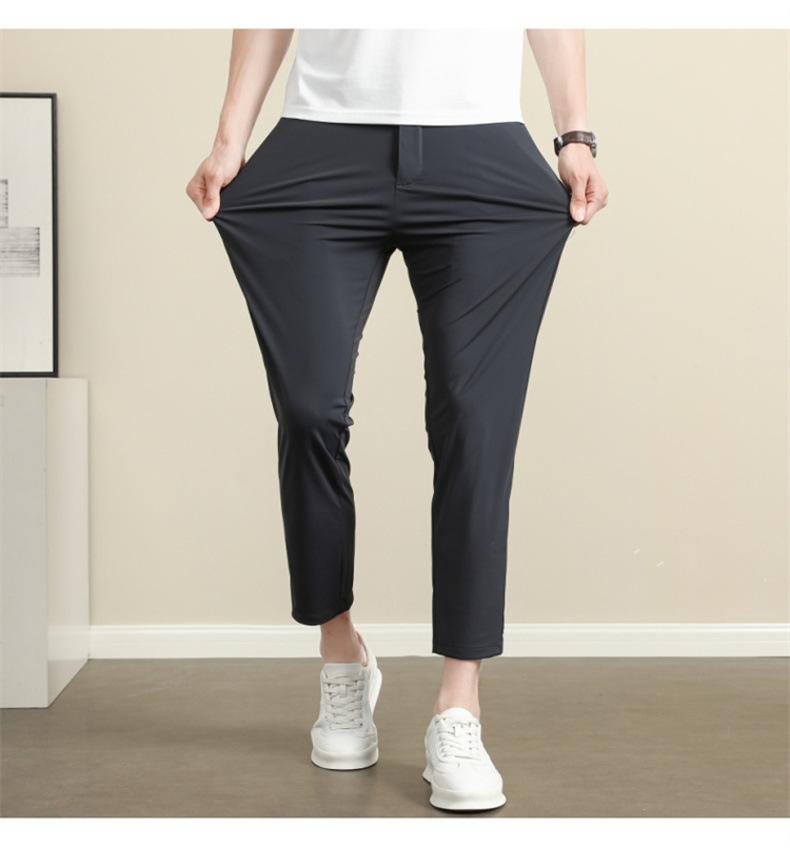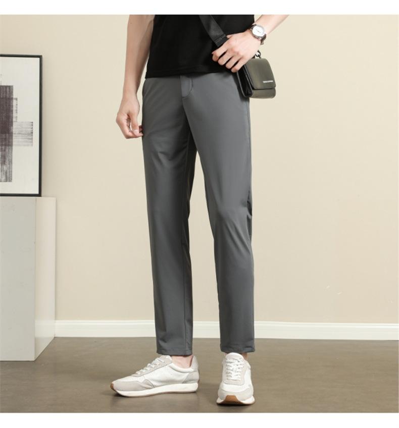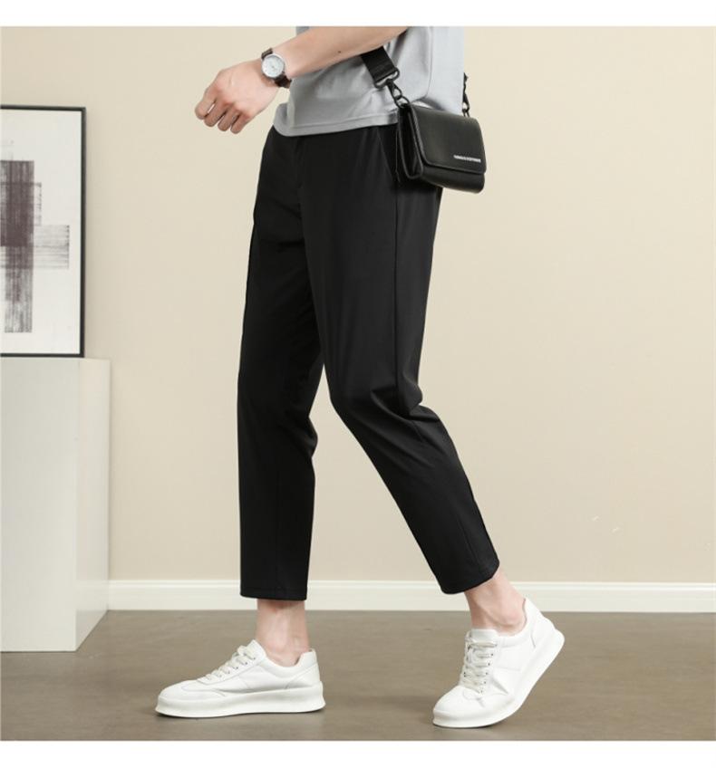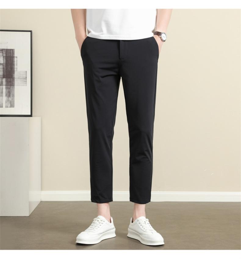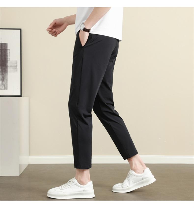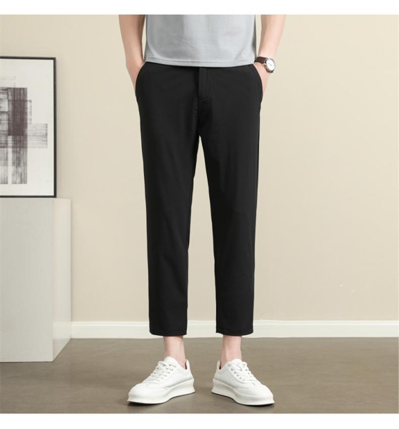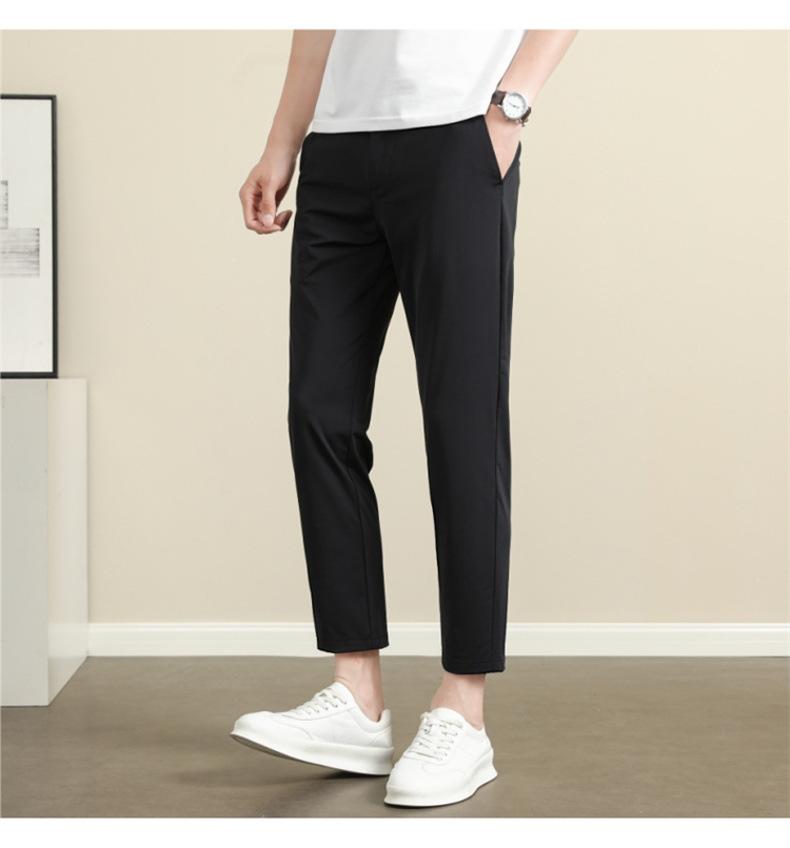 Pantalones de Verano para Hombre Nueva Moda de Marca para Hombre Delgados Casuales de Negocios Recortados para Hombre Elásticos Coreanos para Hombre de Seda de Hielo