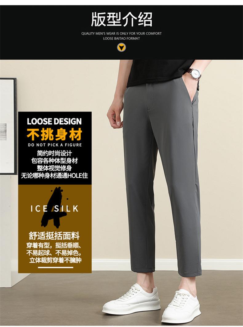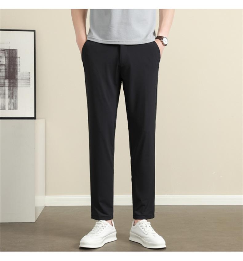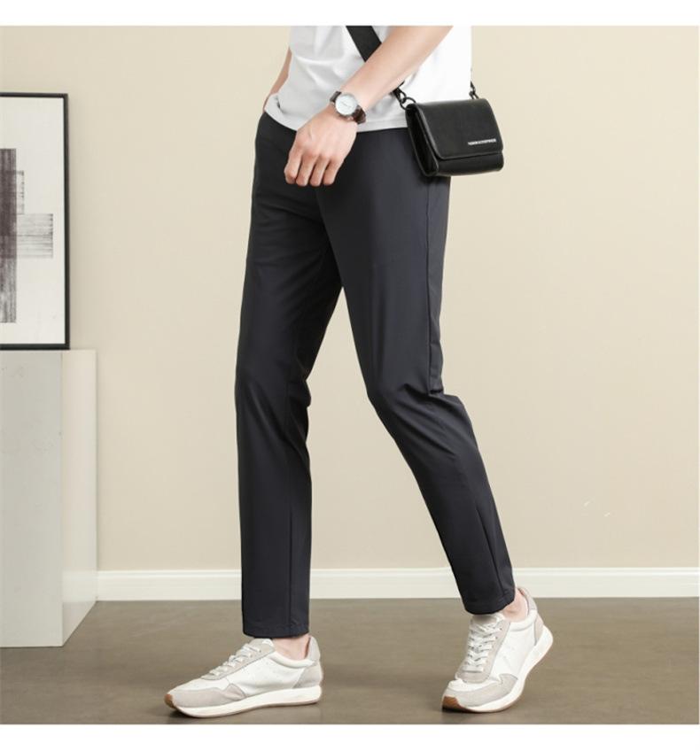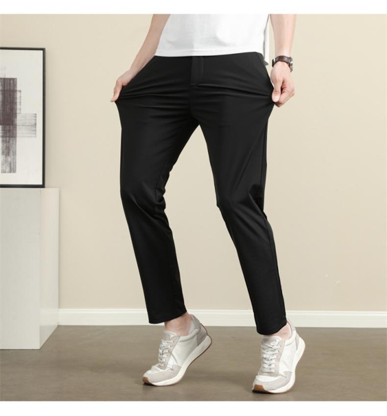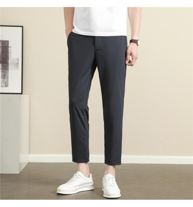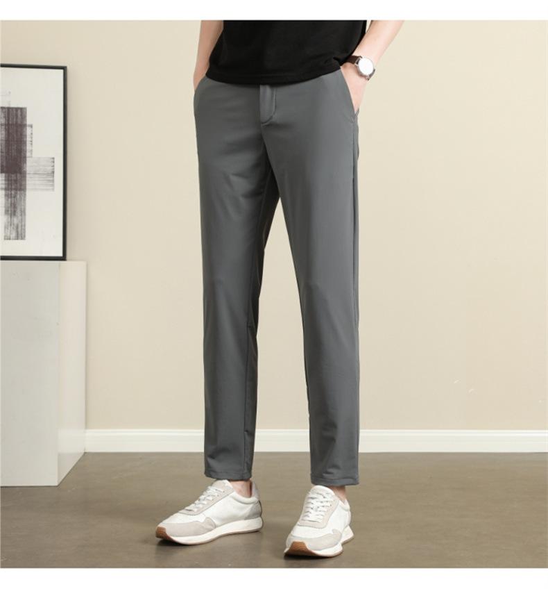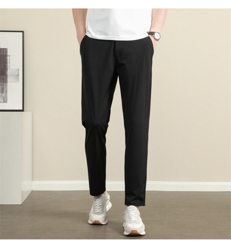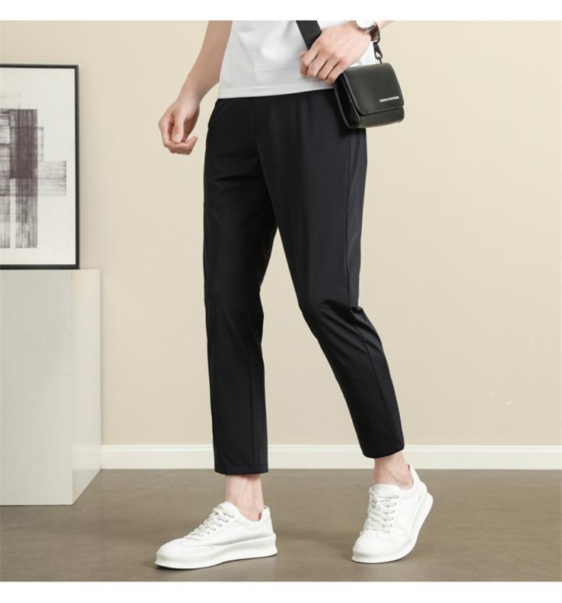 Pantalones de Verano para Hombre Nueva Moda de Marca para Hombre Delgados Casuales de Negocios Recortados para Hombre Elásticos Coreanos para Hombre de Seda de Hielo
