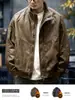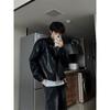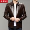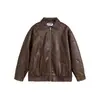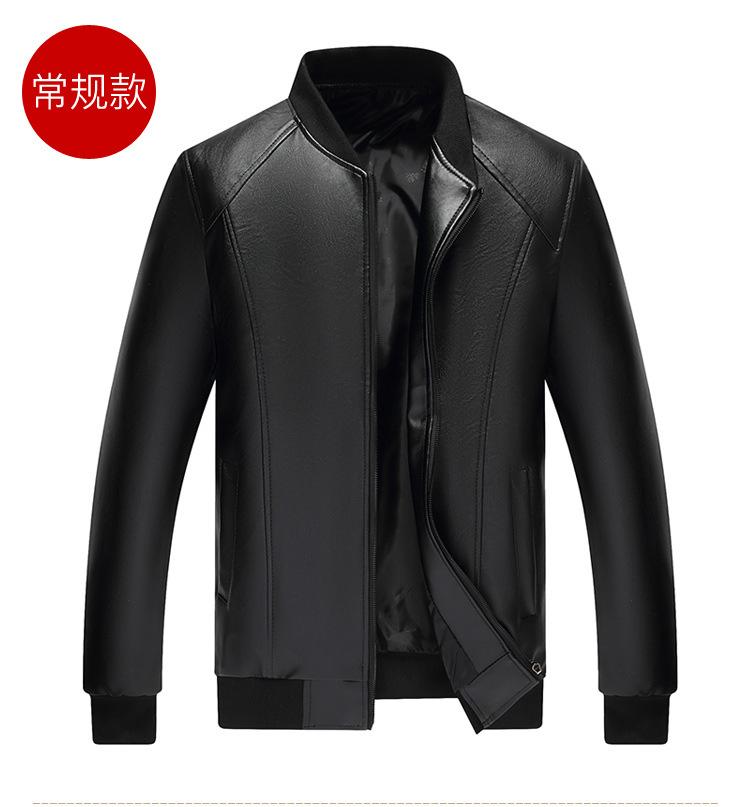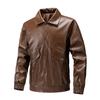 Chaqueta de cuero Forest Bird para personas de mediana edad y mayores, cuello redondo, chaqueta de cuero delgada, cuello de béisbol, casual, talla grande, chaqueta de cuero PU, chaqueta corriendo ríos y lagos