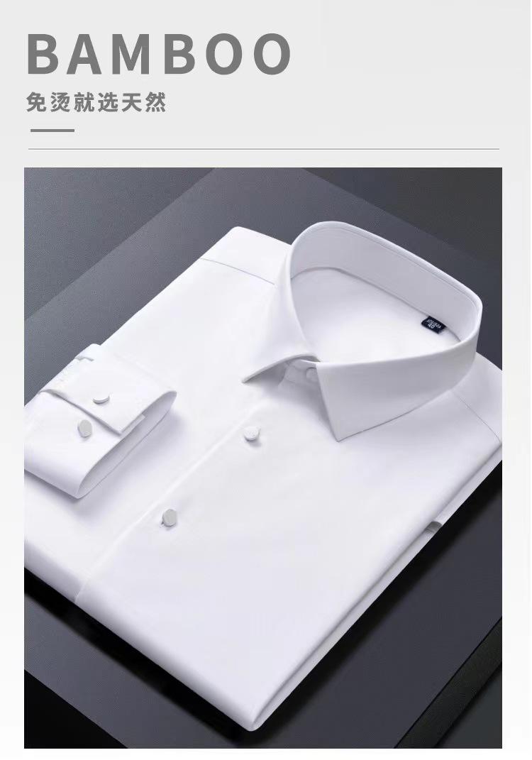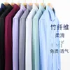 Camisa de Manga Larga de Fibra de Bambú Sin Costuras de Alta Gama para Hombre, Elástica, Sin Planchado, Business Casual, Formal, Profesional, Color Sólido, Camisa Blanca