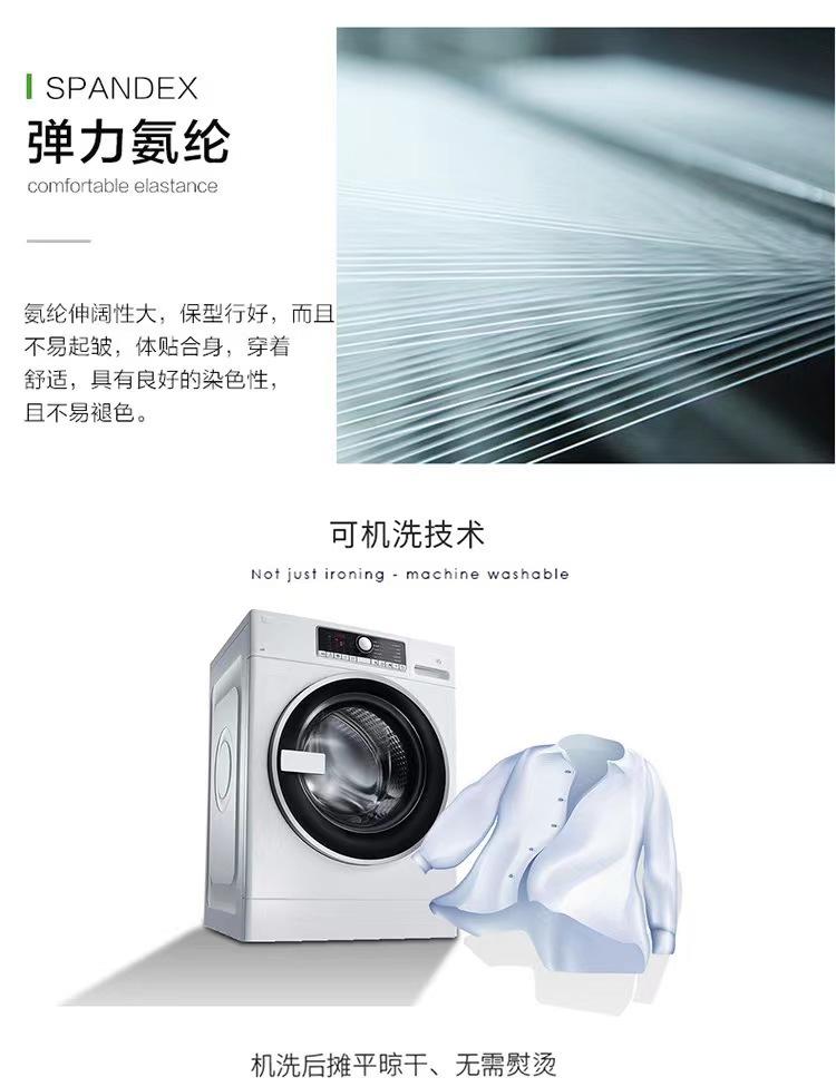 Breathable, Machine washable, Anti-wrinkle, Antibacterial, High bomb, No iron, Moisture Wicking, High color fastness