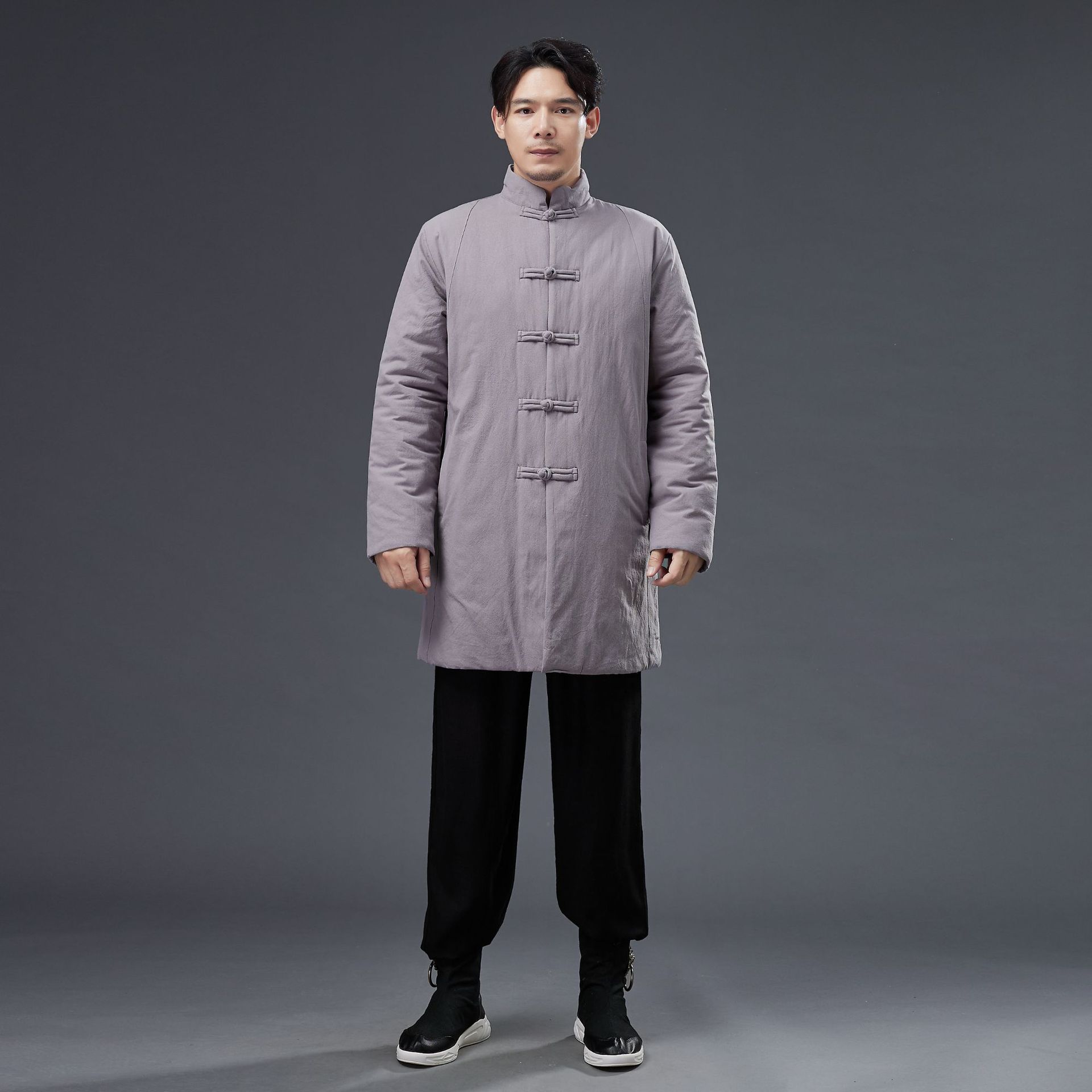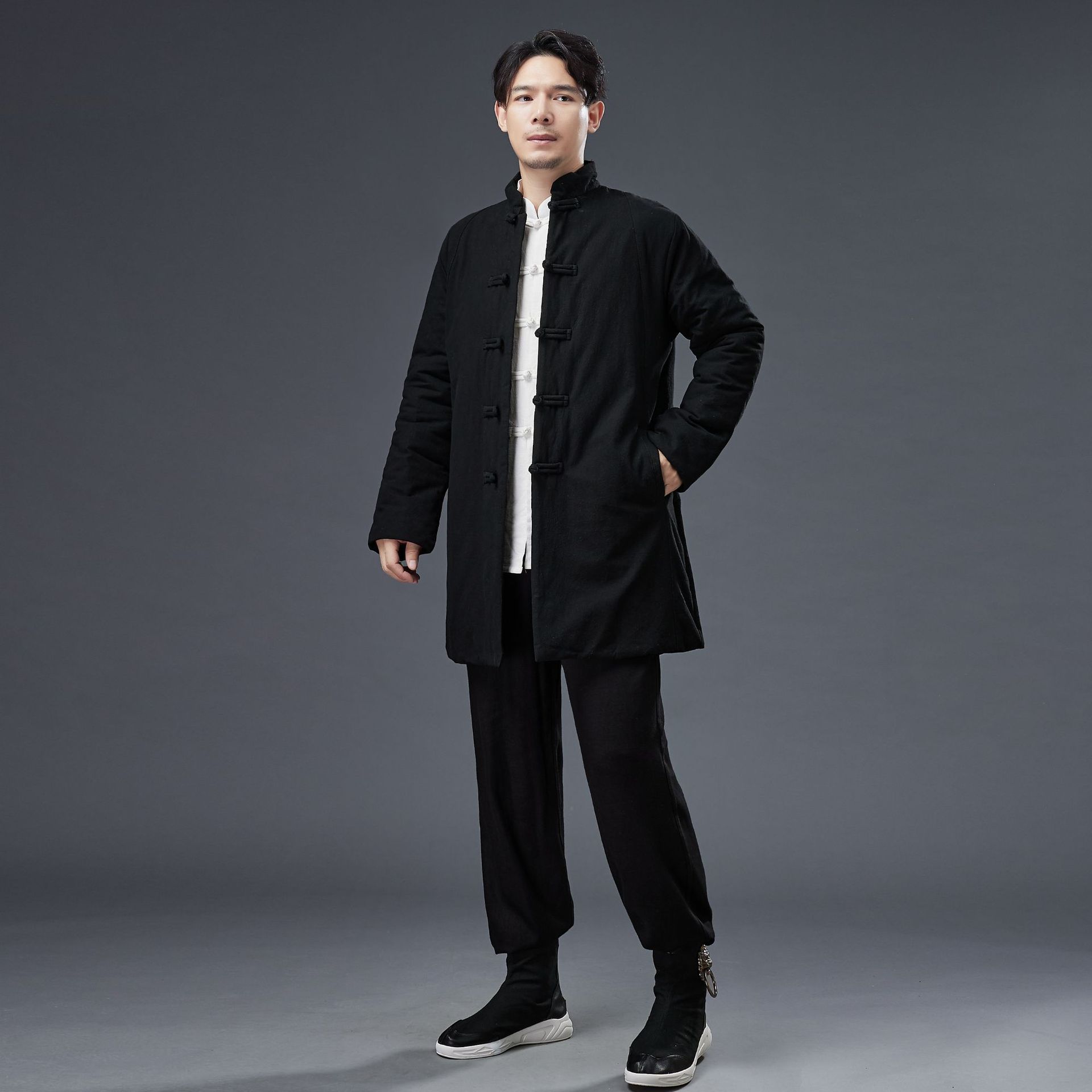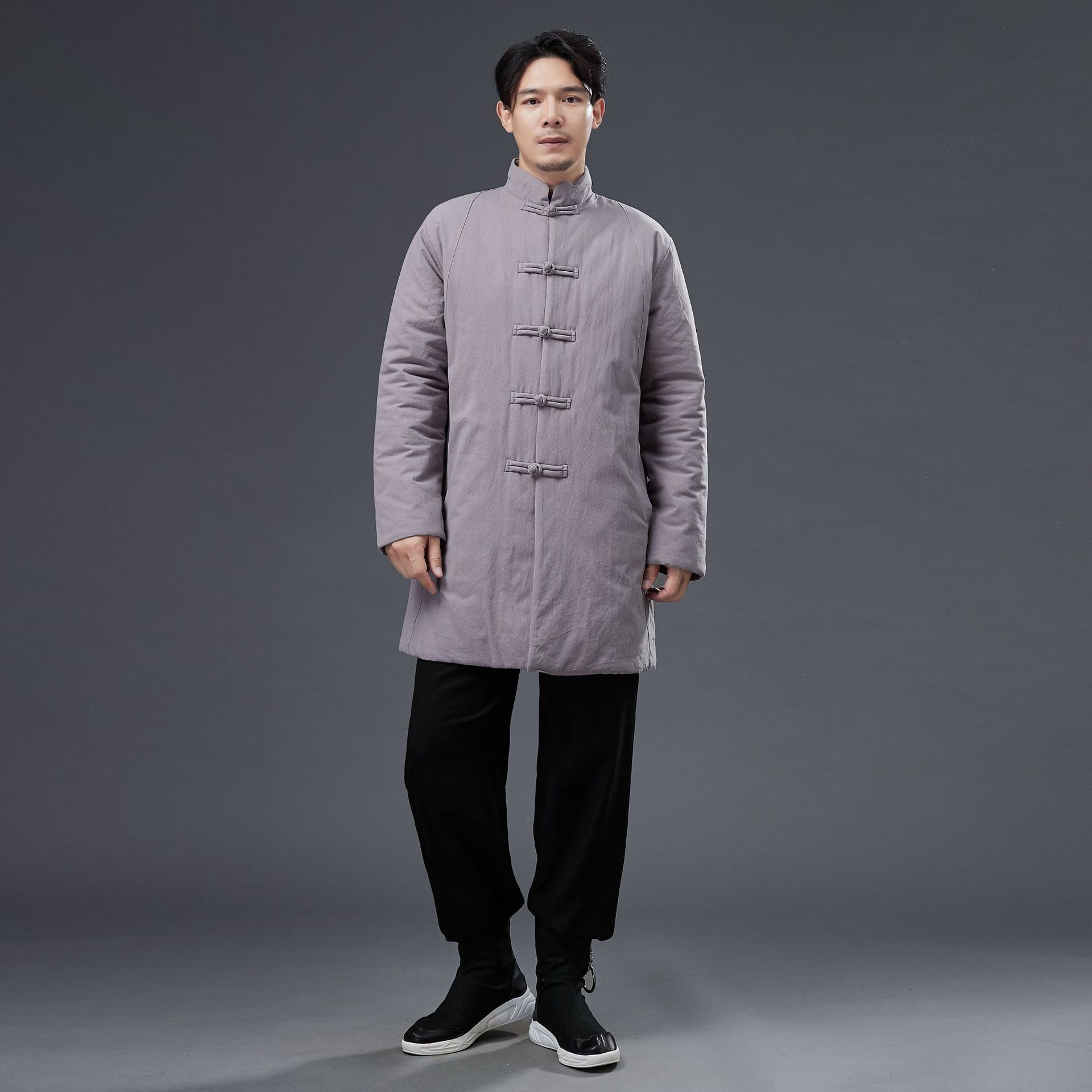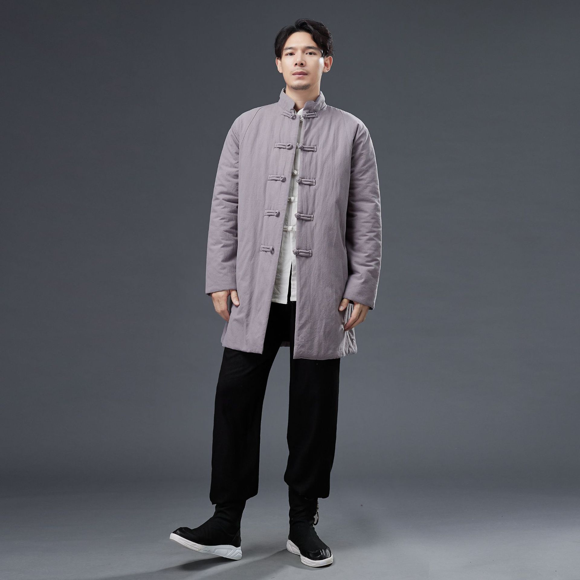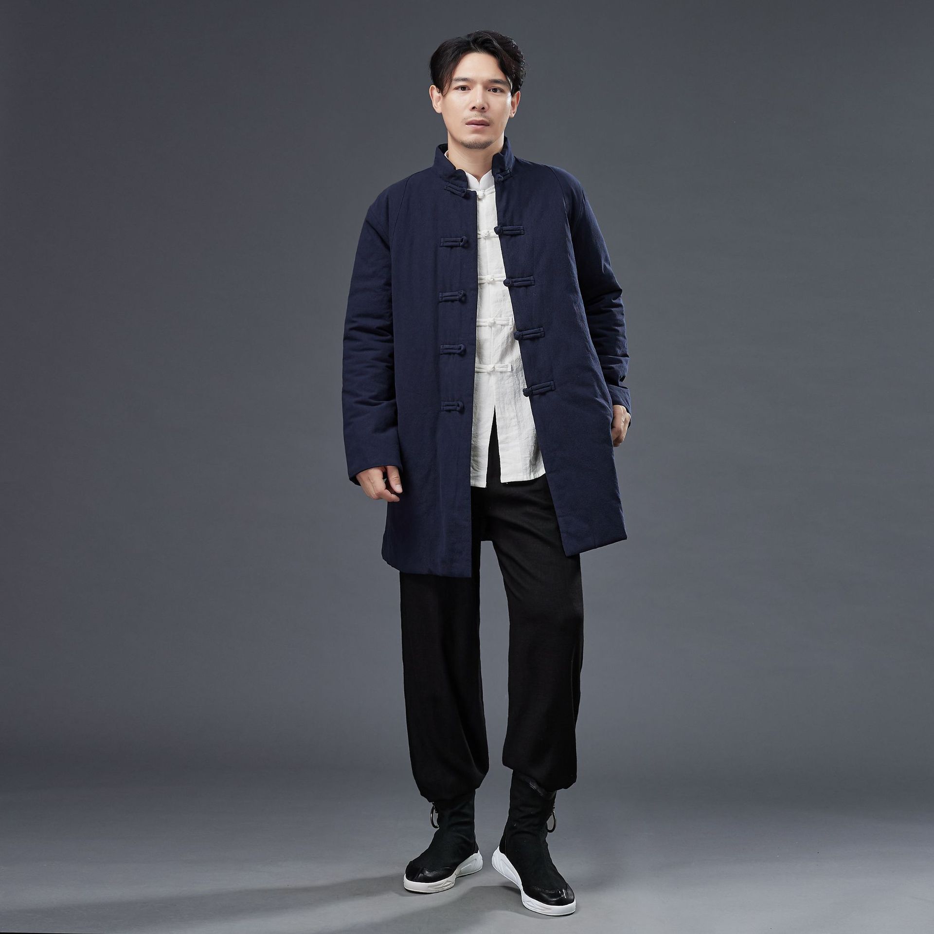 Otoño e Invierno Nuevo Abrigo Acolchado de Algodón para Hombre Abrigo Largo Medio Estilo Chino Chaqueta Acolchada de Algodón Hebilla Hecha a Mano Cuello Vertical Chaqueta Acolchada de Algodón Cálida