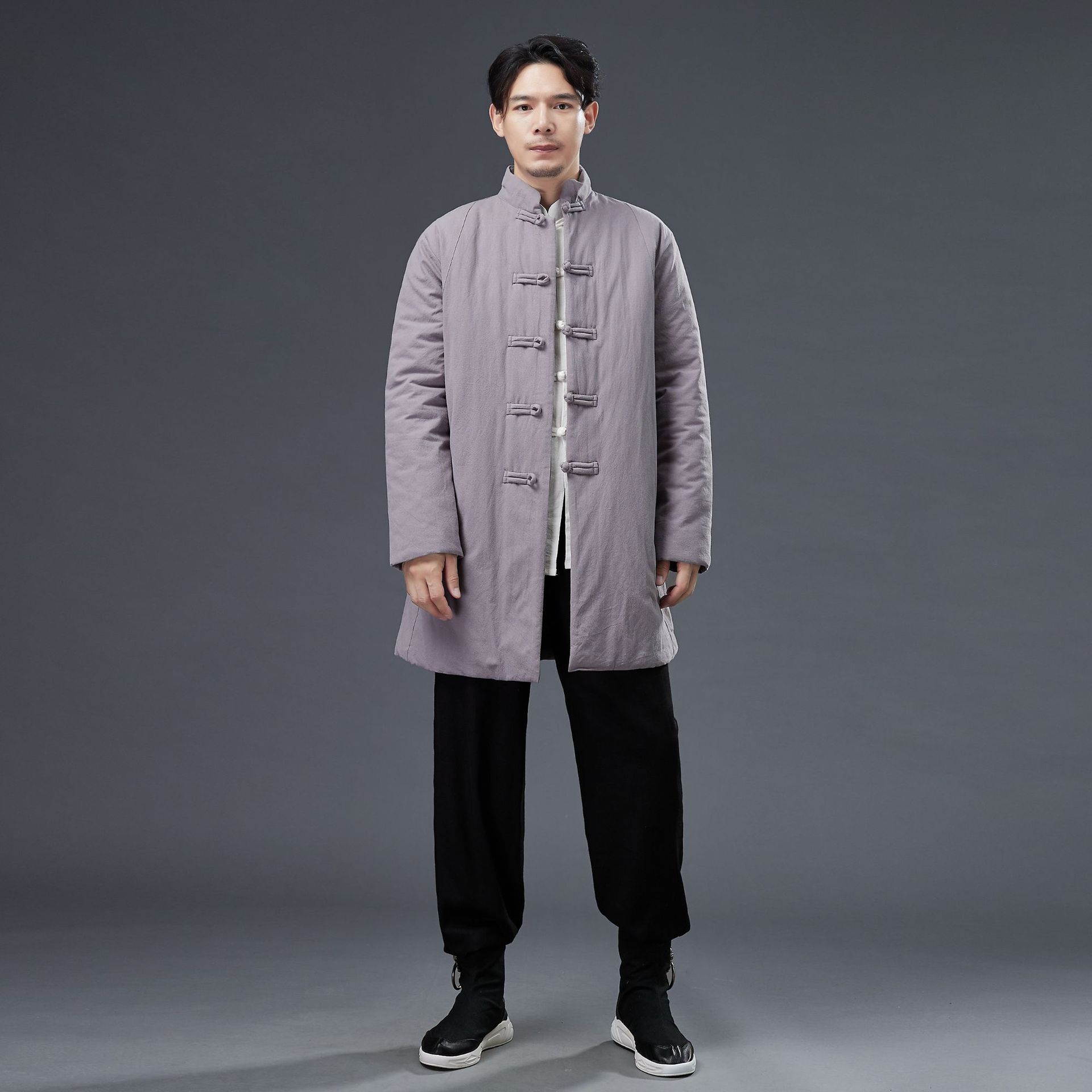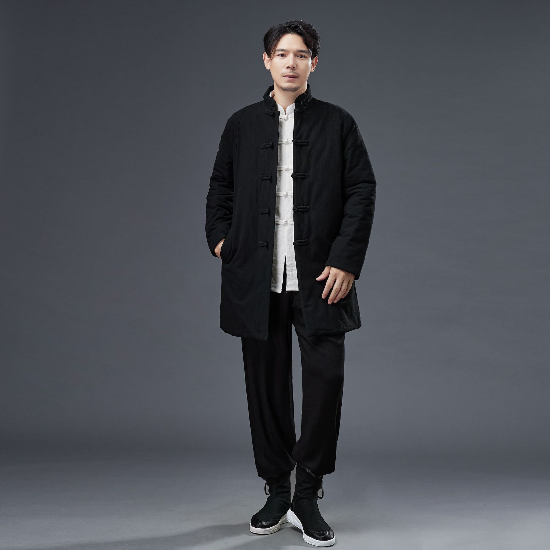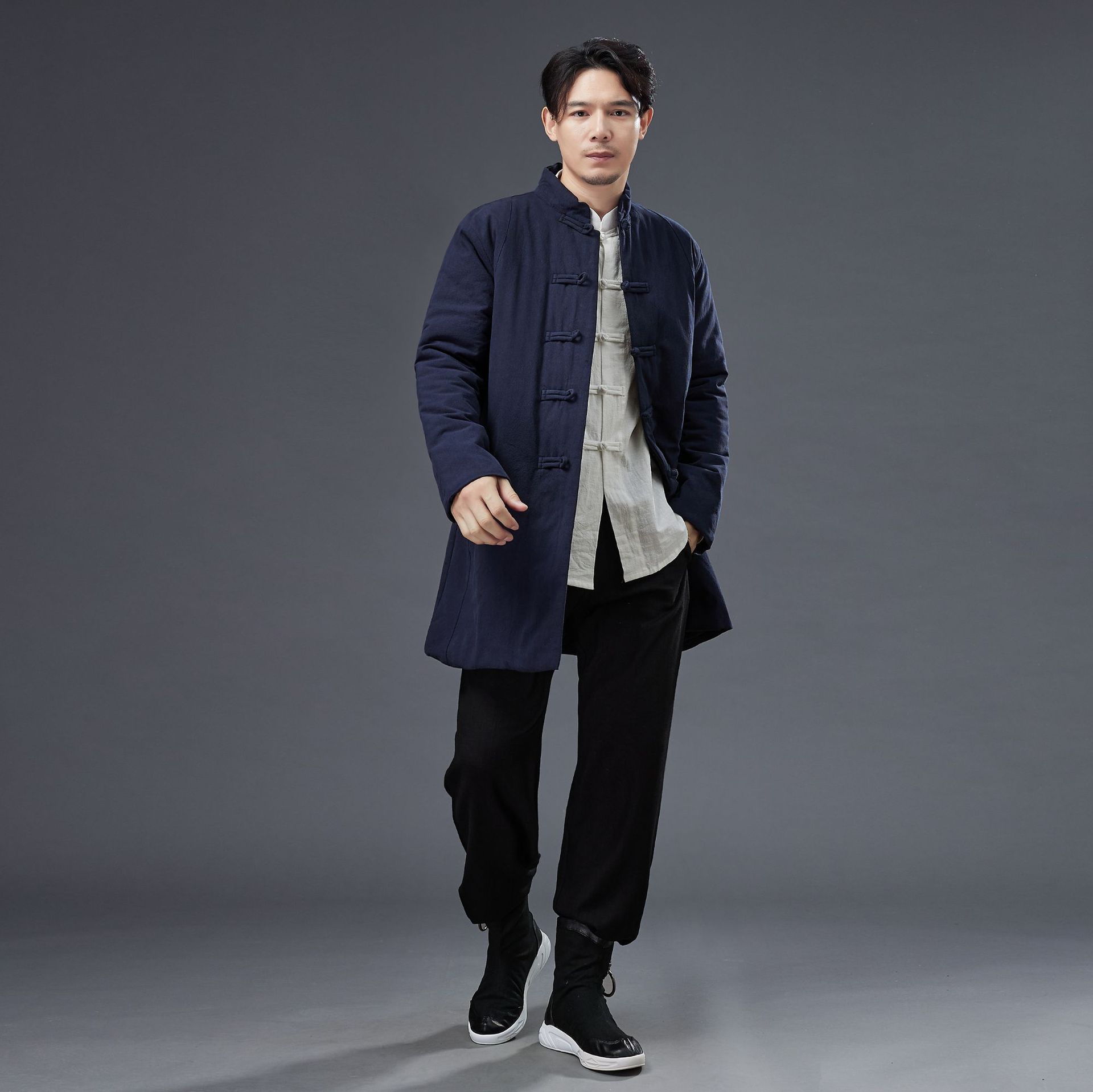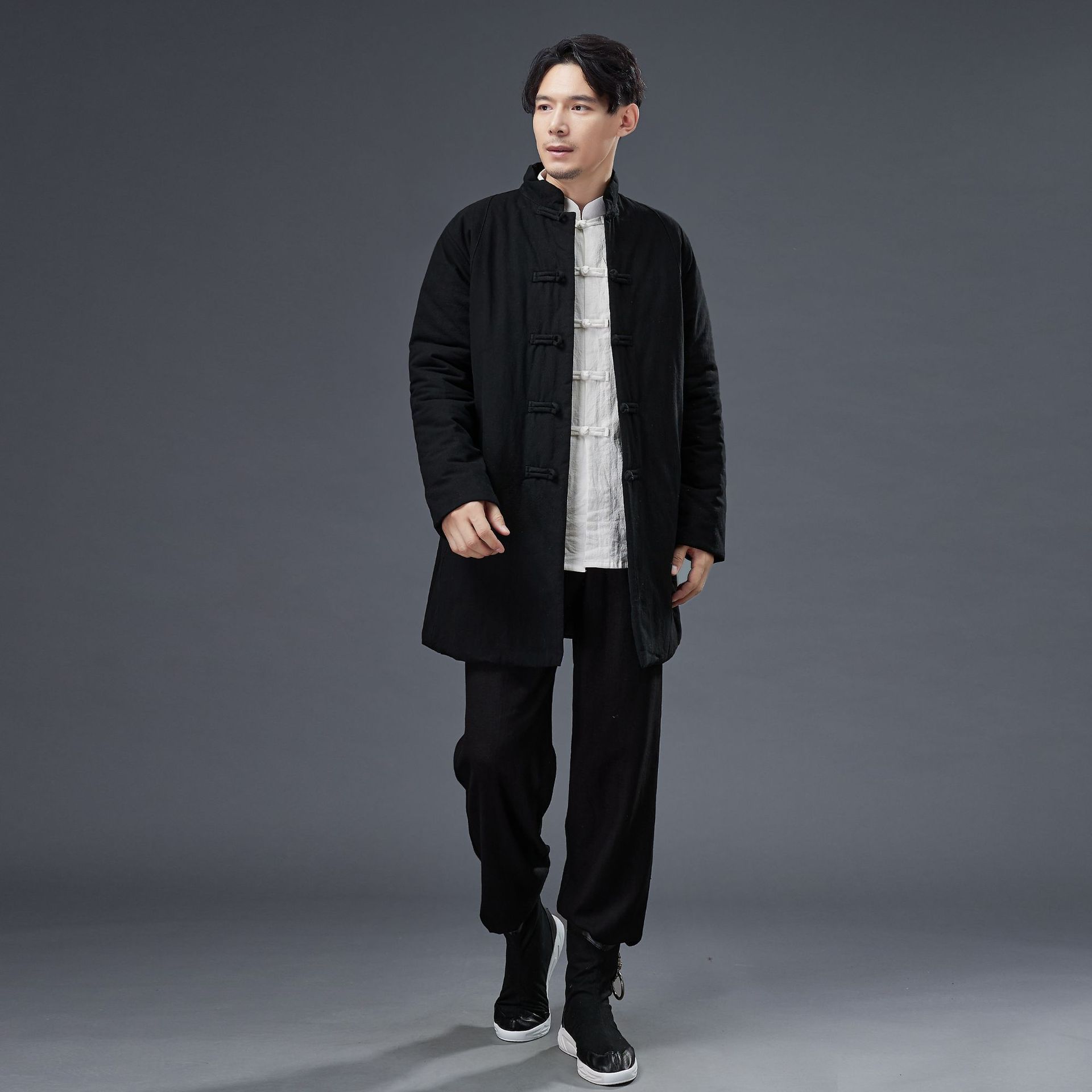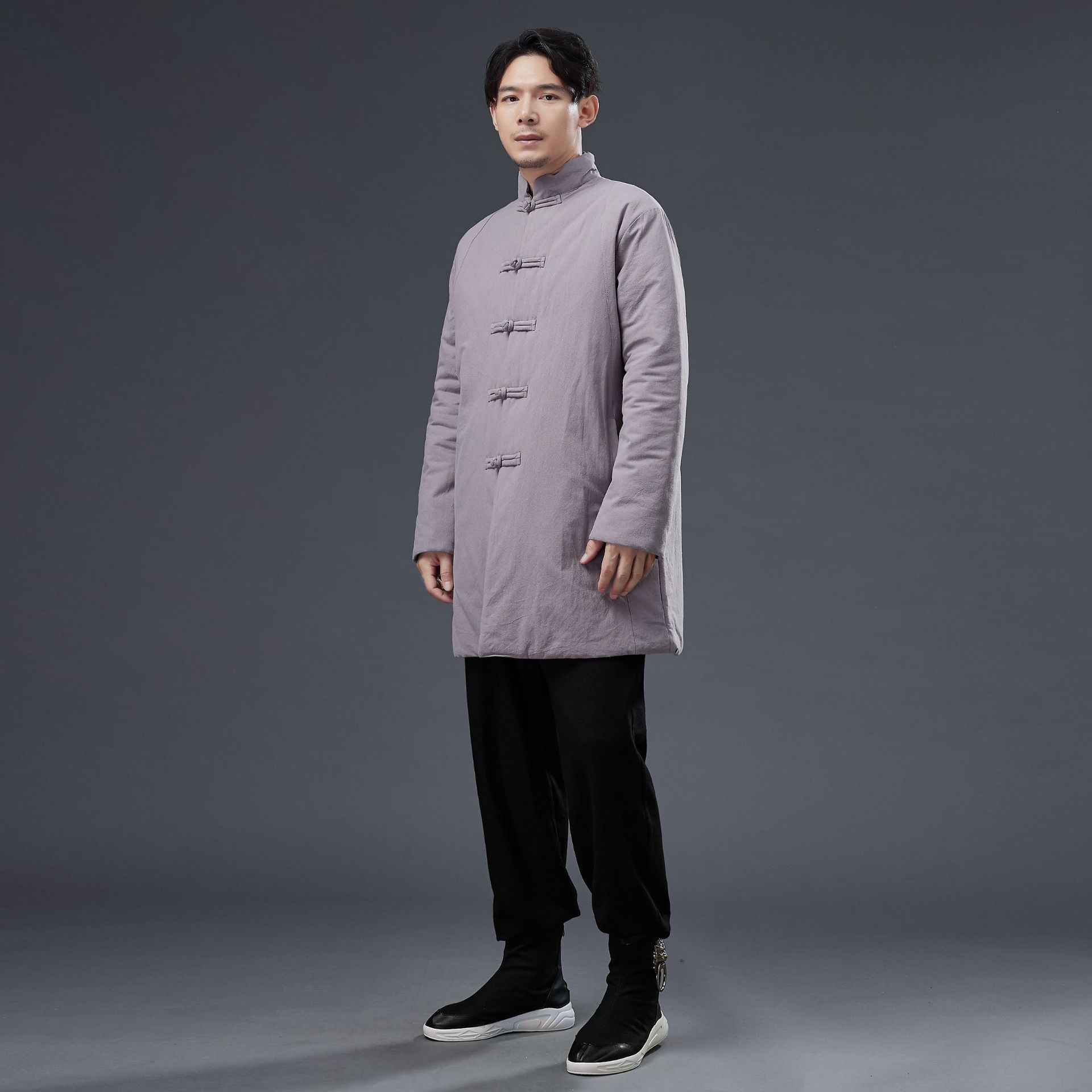 Otoño e Invierno Nuevo Abrigo Acolchado de Algodón para Hombre Abrigo Largo Medio Estilo Chino Chaqueta Acolchada de Algodón Hebilla Hecha a Mano Cuello Vertical Chaqueta Acolchada de Algodón Cálida