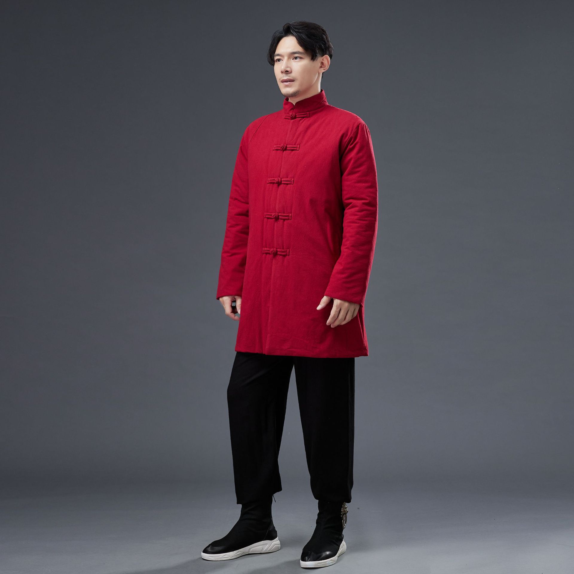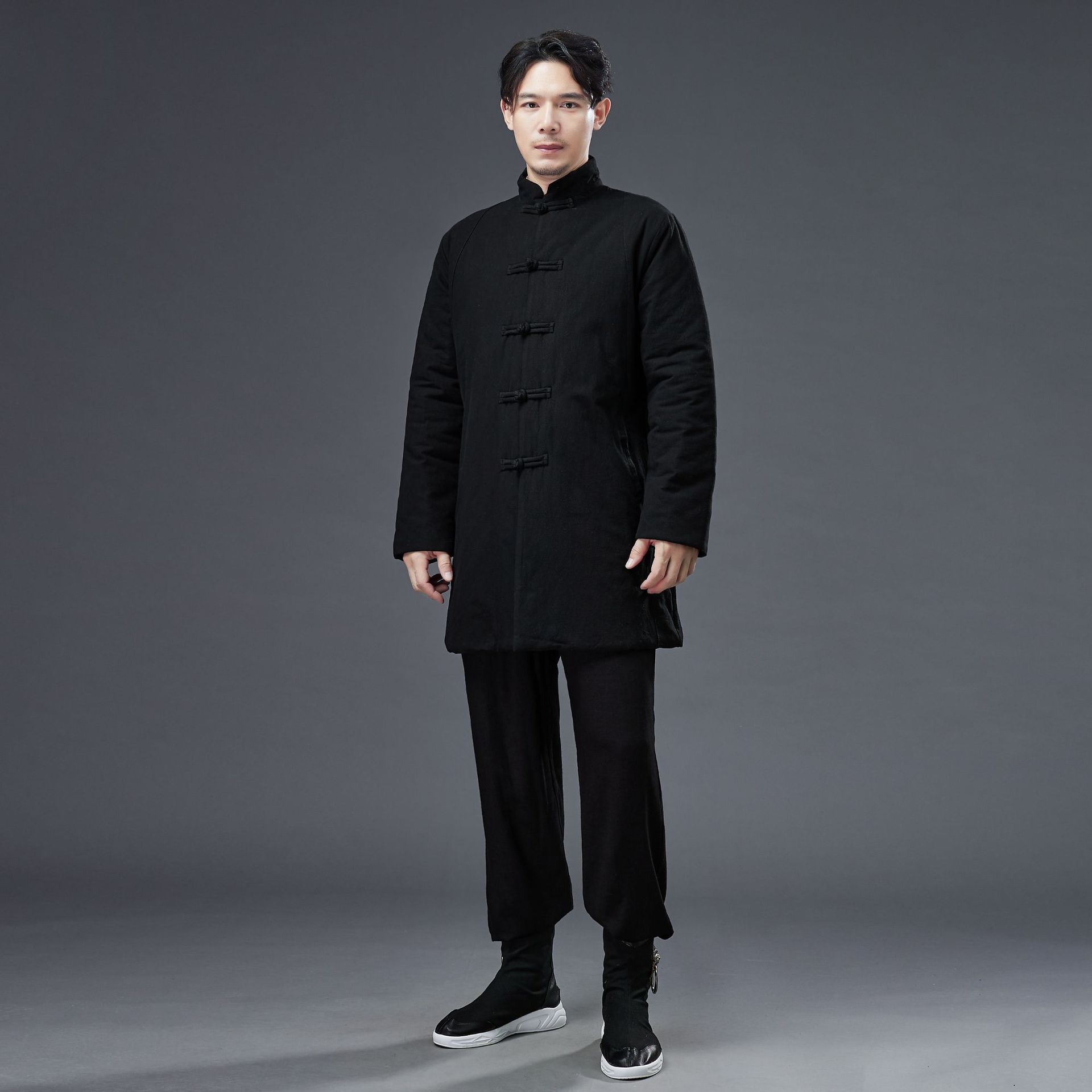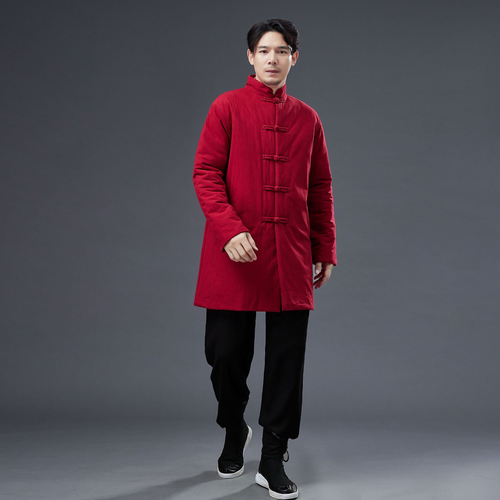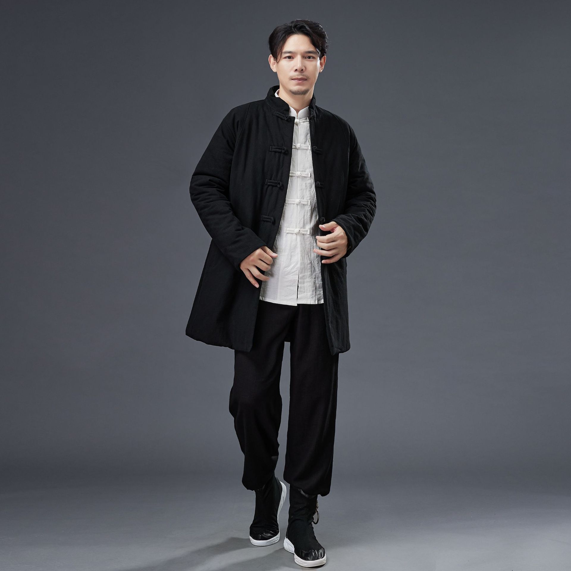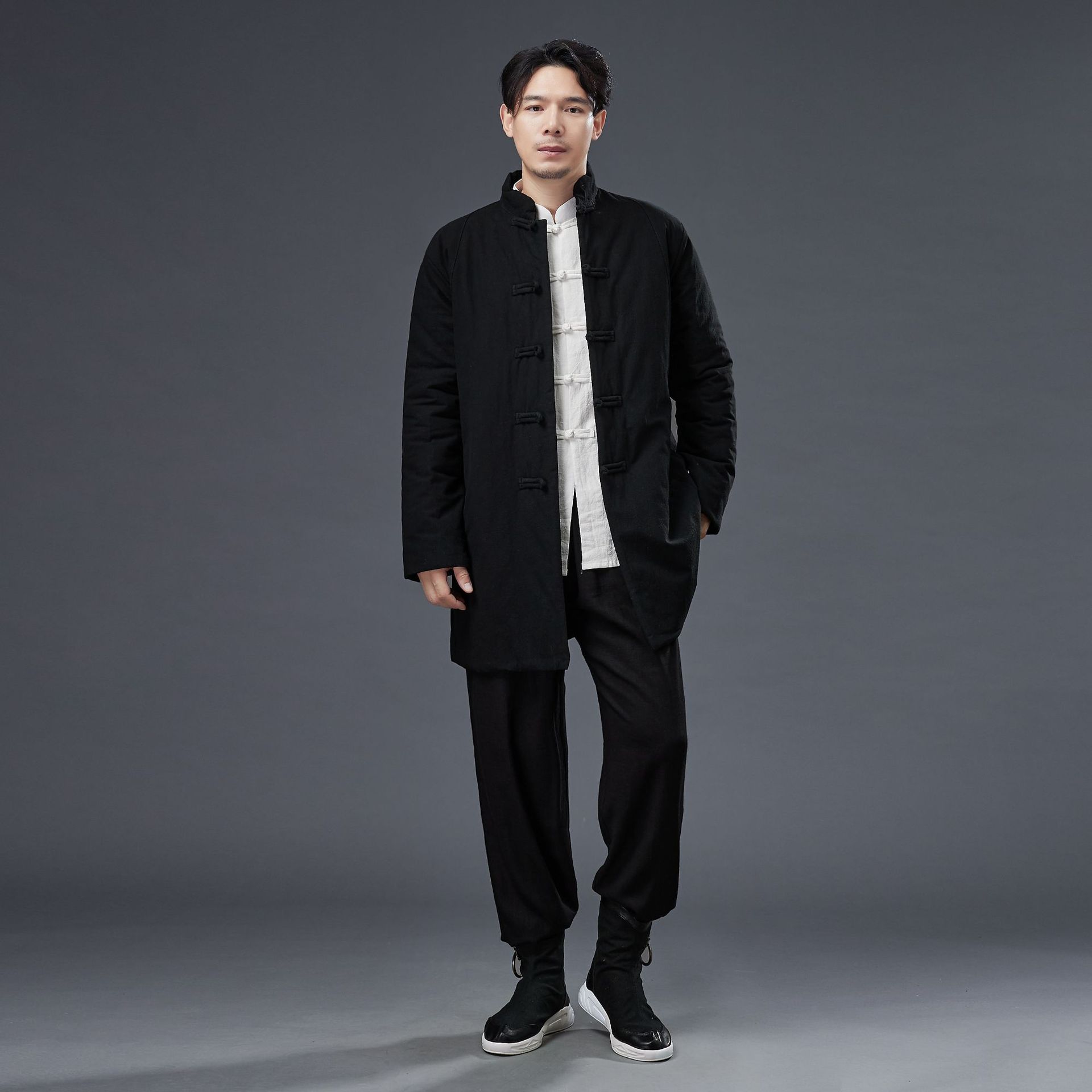 Otoño e Invierno Nuevo Abrigo Acolchado de Algodón para Hombre Abrigo Largo Medio Estilo Chino Chaqueta Acolchada de Algodón Hebilla Hecha a Mano Cuello Vertical Chaqueta Acolchada de Algodón Cálida