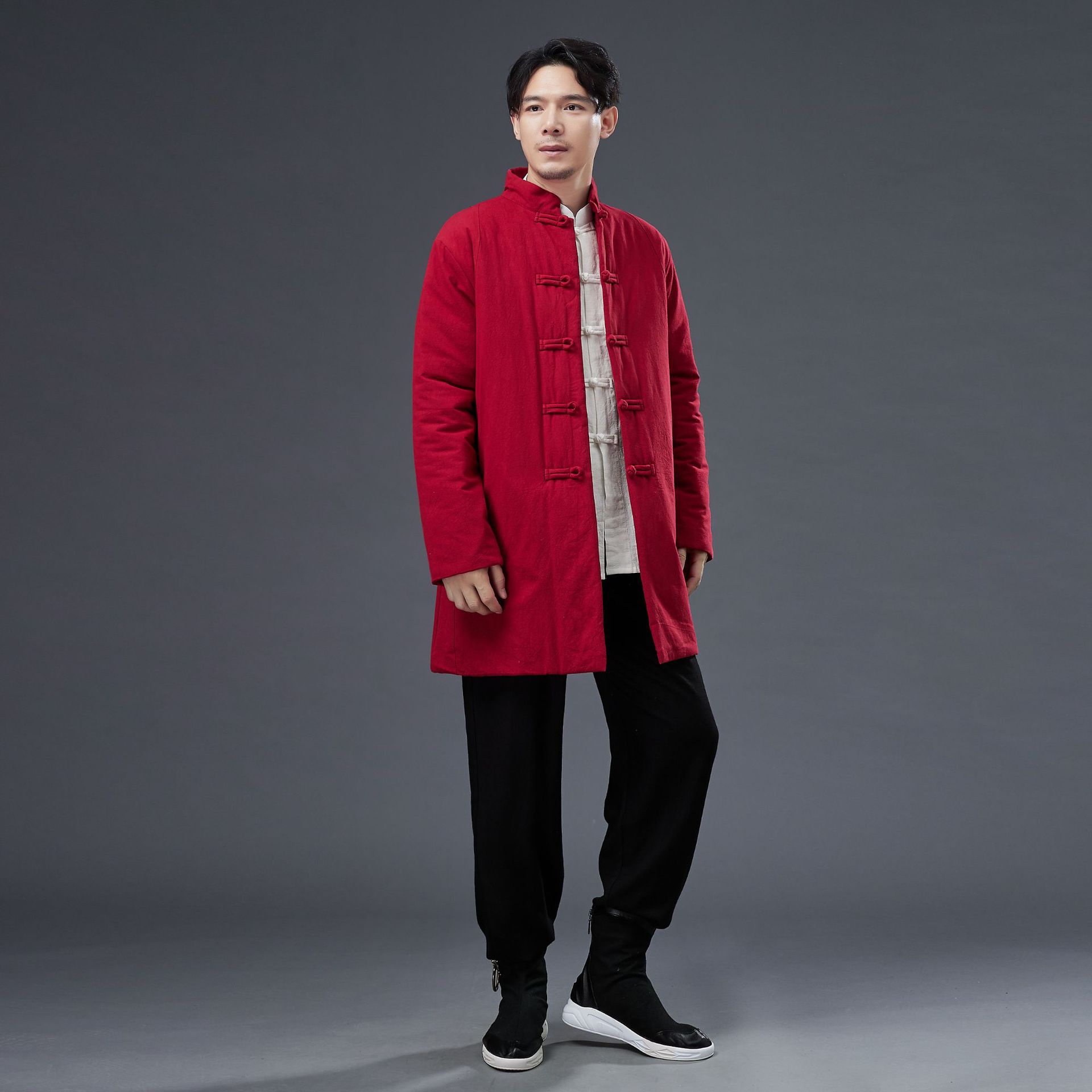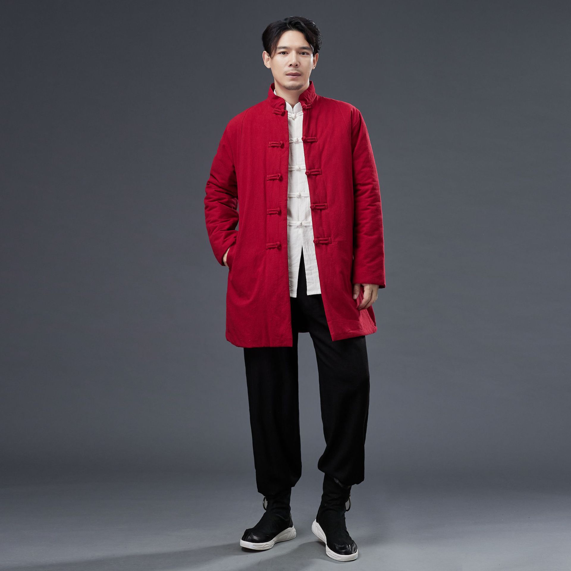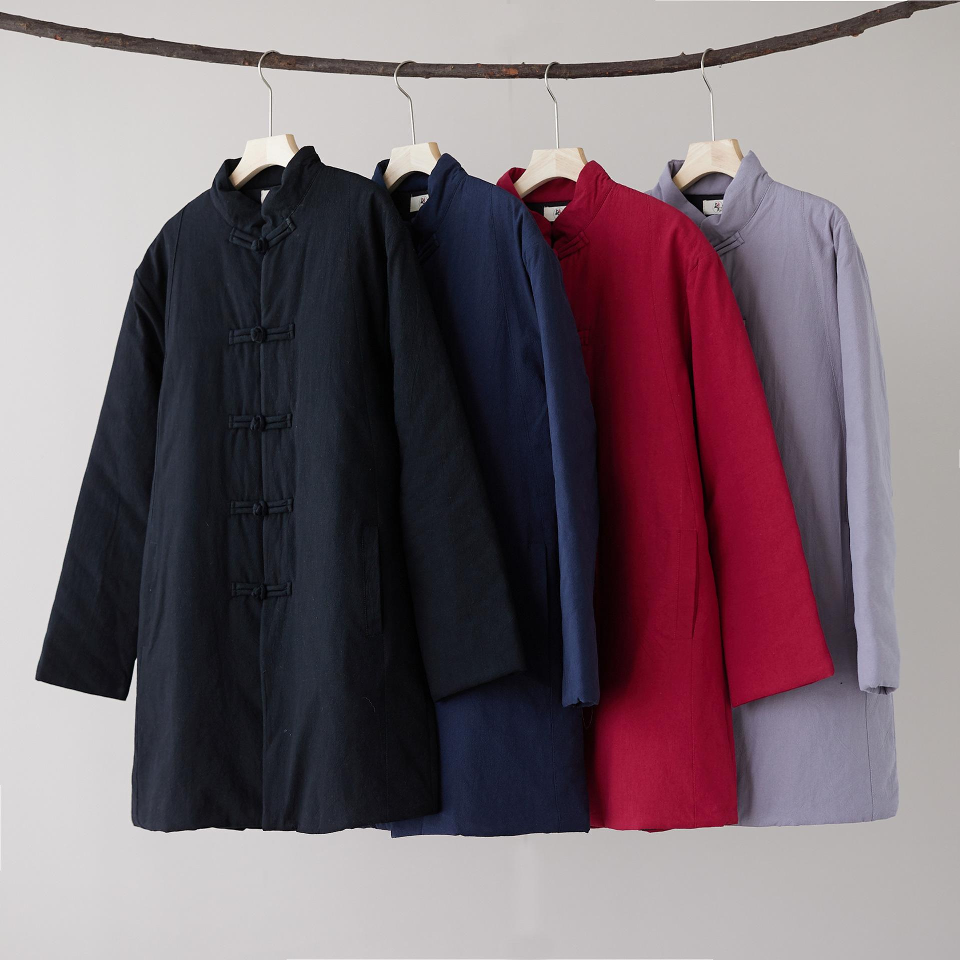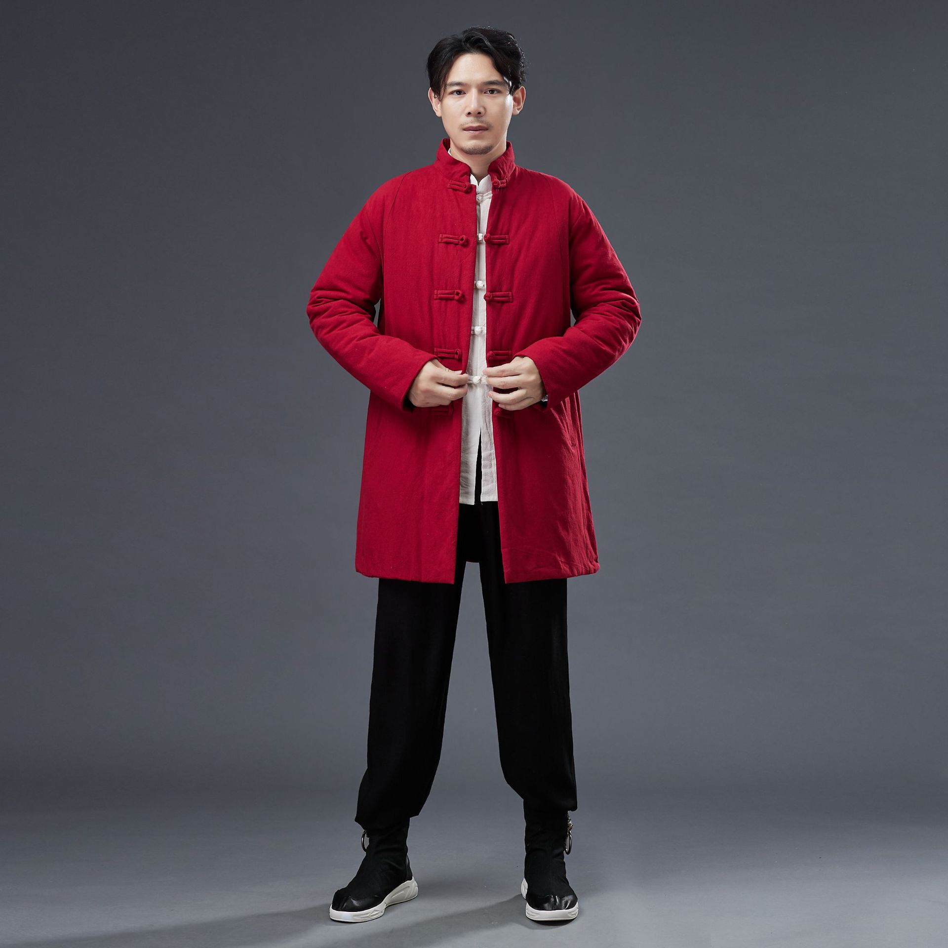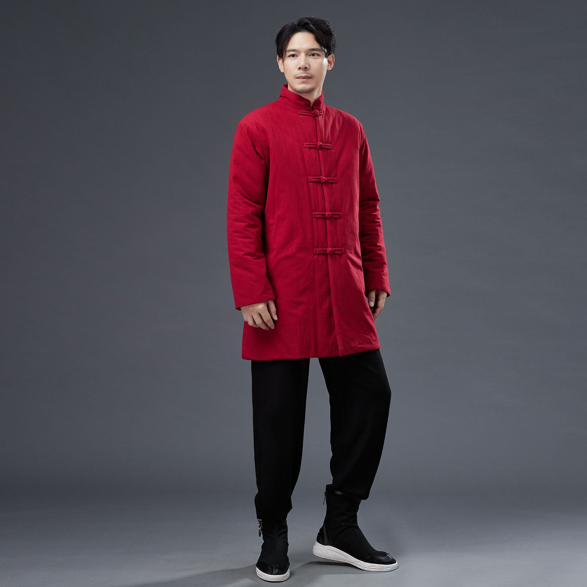 Otoño e Invierno Nuevo Abrigo Acolchado de Algodón para Hombre Abrigo Largo Medio Estilo Chino Chaqueta Acolchada de Algodón Hebilla Hecha a Mano Cuello Vertical Chaqueta Acolchada de Algodón Cálida