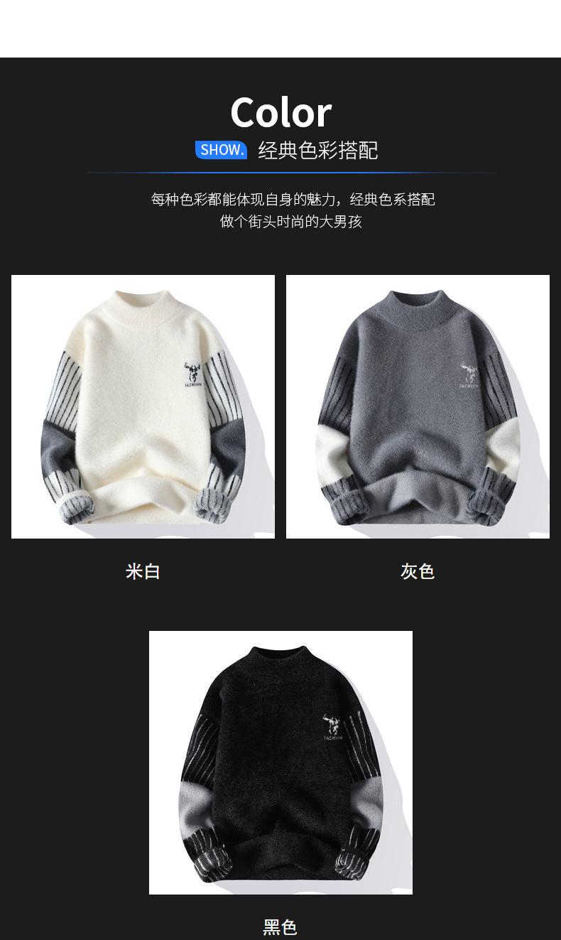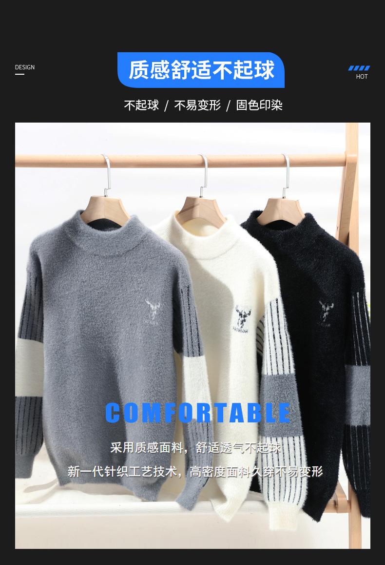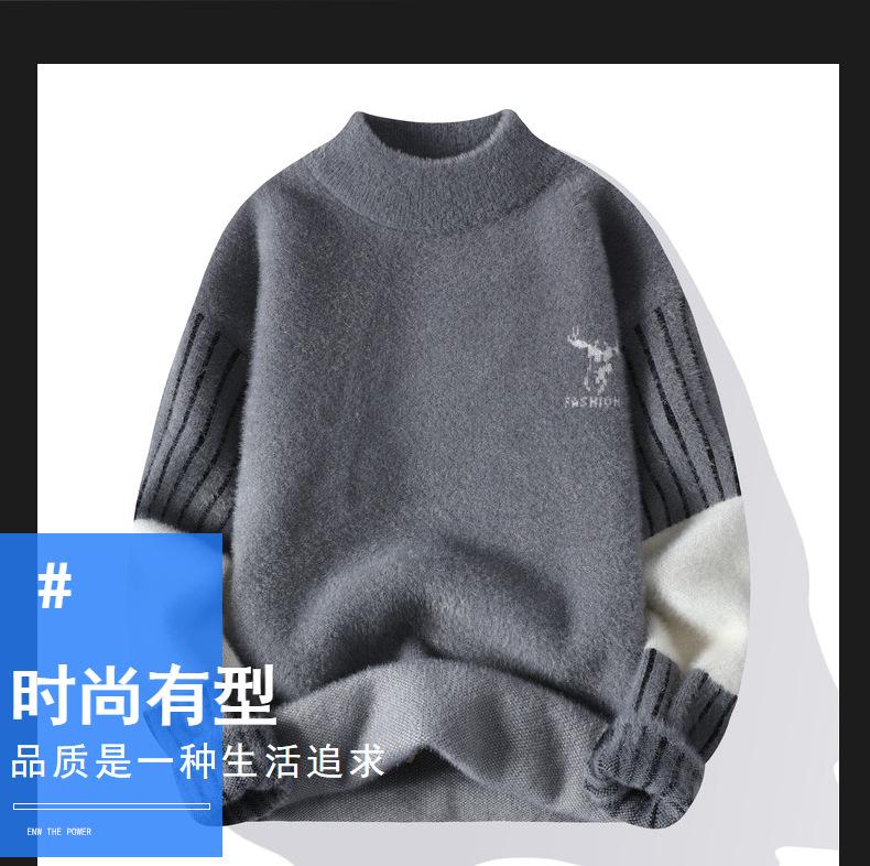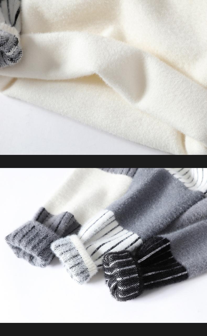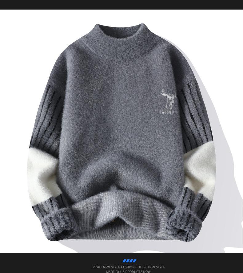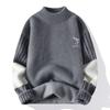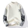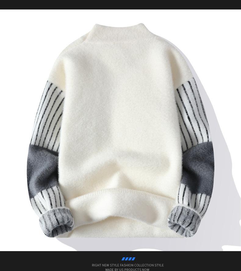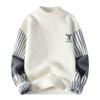 Suéter Nuevo para Hombre 2025 Cuello Alto Tejido Visón Sintético Suelto Bloques de Color Suéter Base Suéter Casual a la Moda