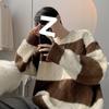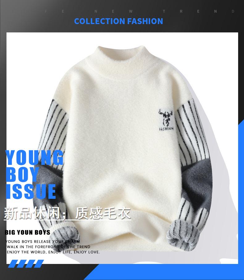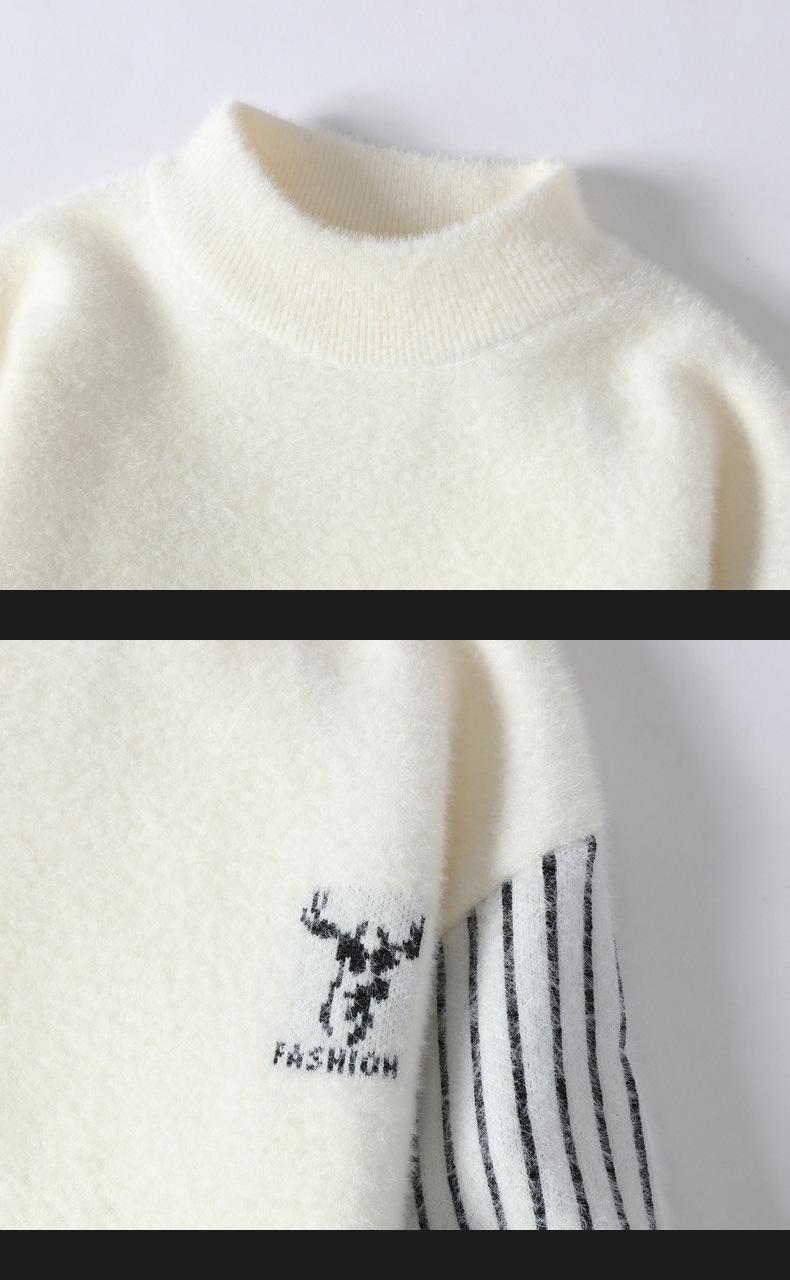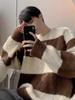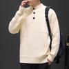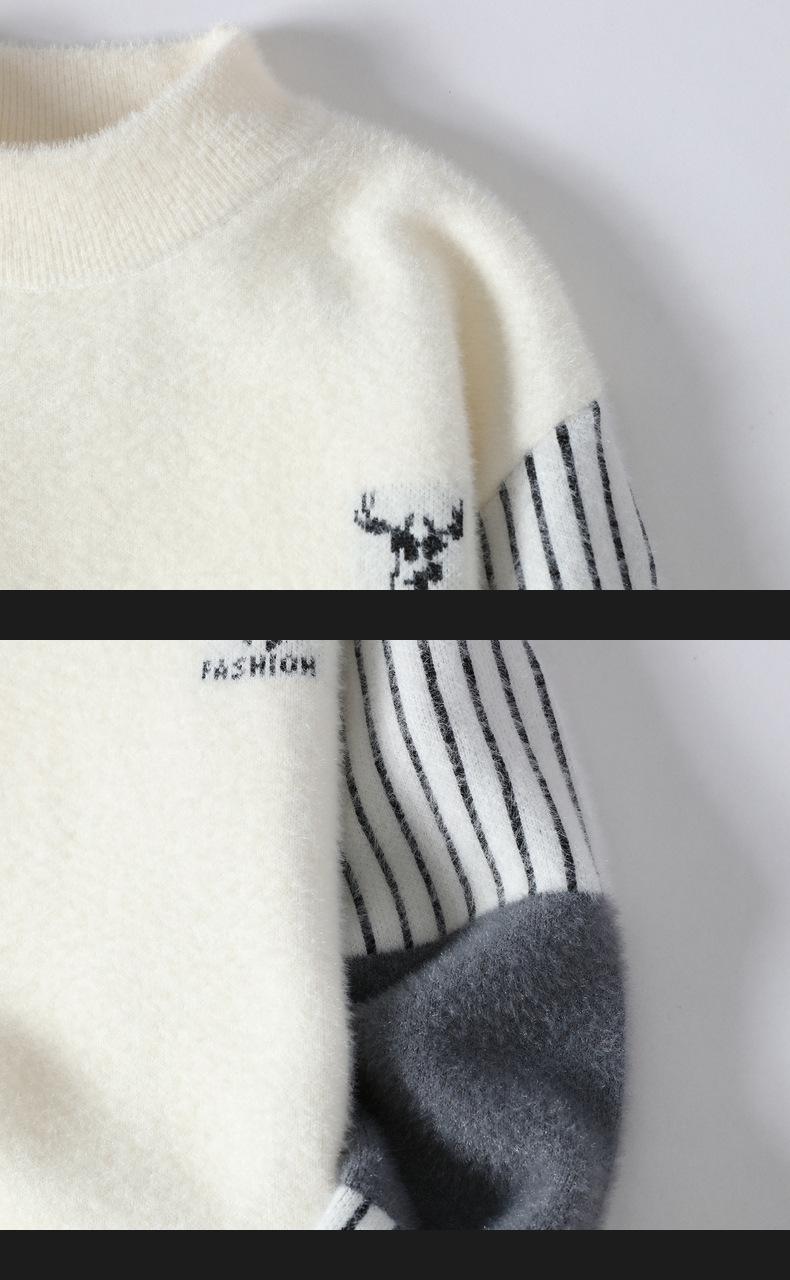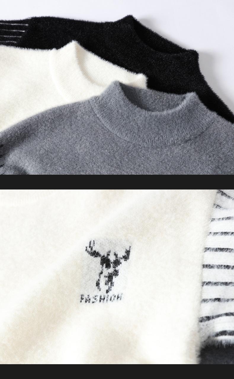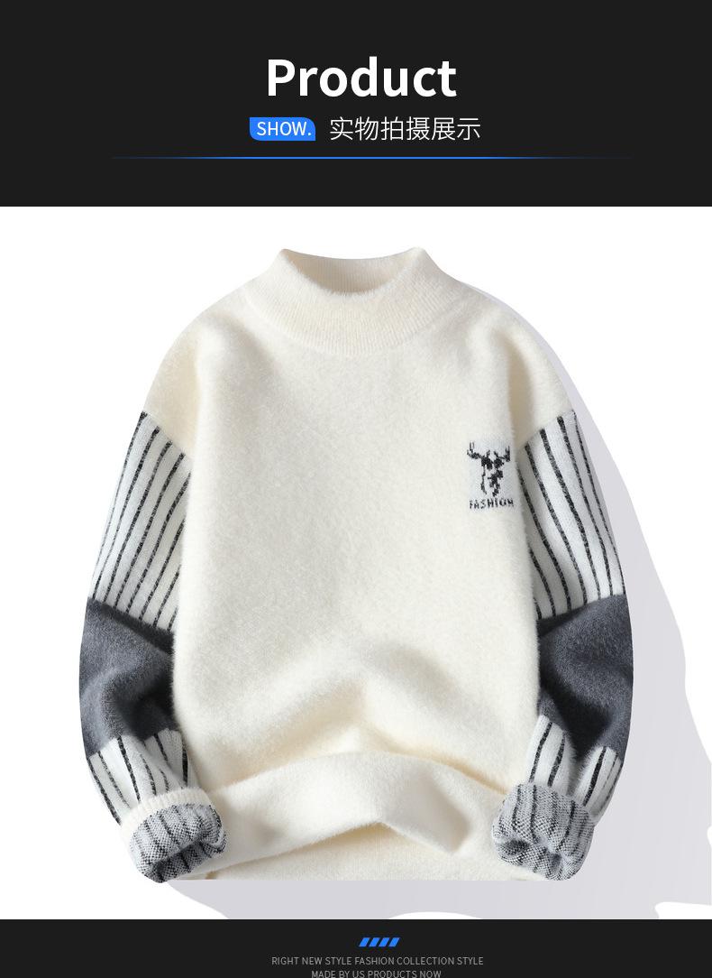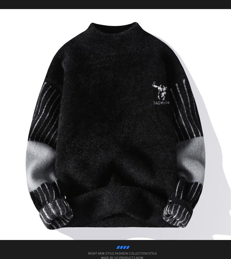 Suéter Nuevo para Hombre 2025 Cuello Alto Tejido Visón Sintético Suelto Bloques de Color Suéter Base Suéter Casual a la Moda