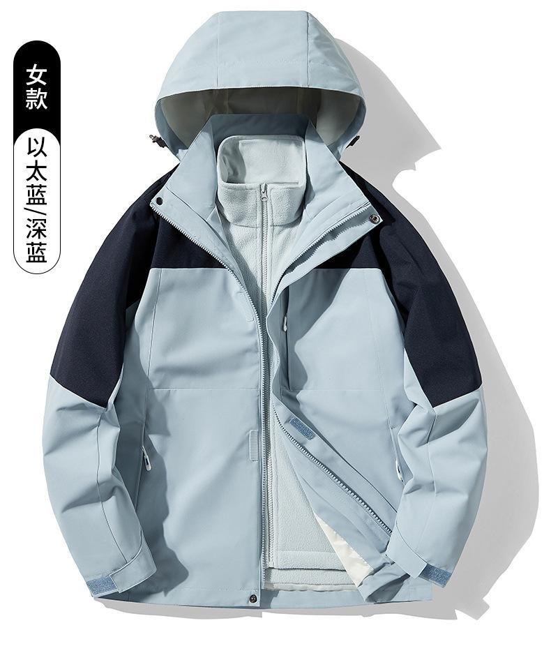 Chaqueta de exterior para hombre, tres en uno, desmontable, a prueba de viento, impermeable, cálida, traje de montañismo, ropa de invierno gruesa para mujer, traje de dos piezas