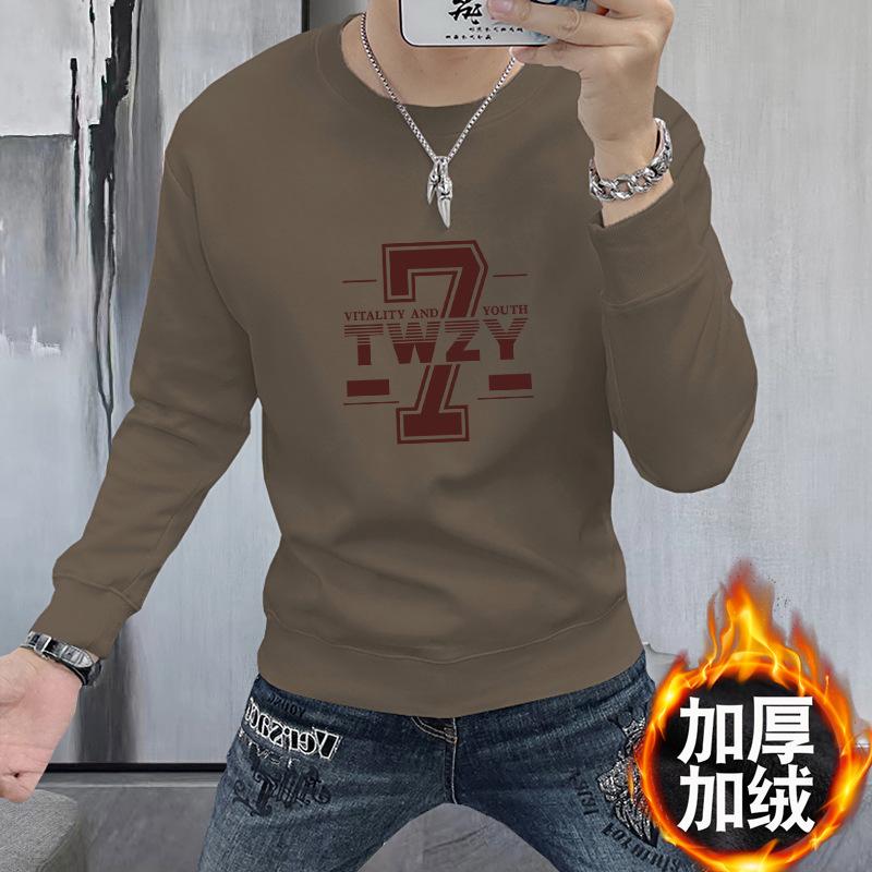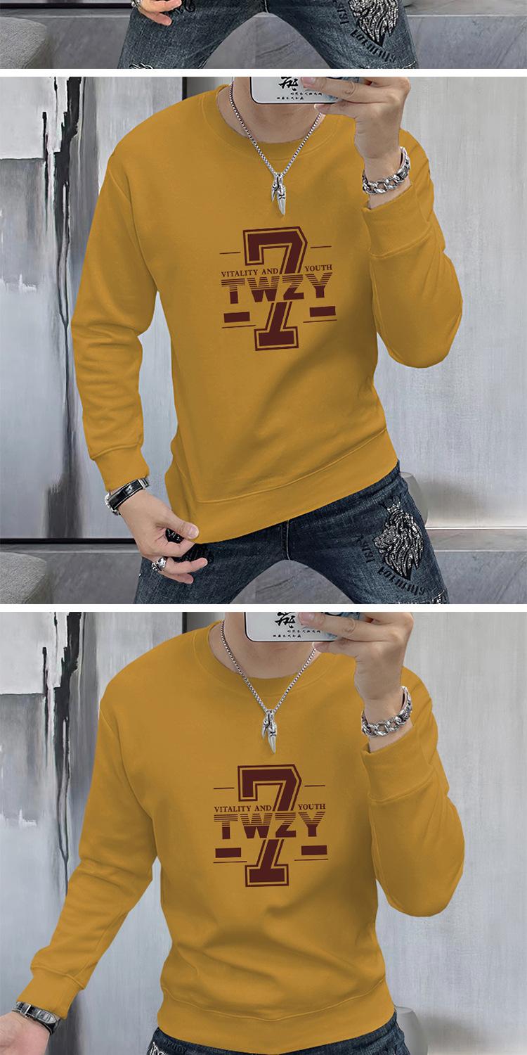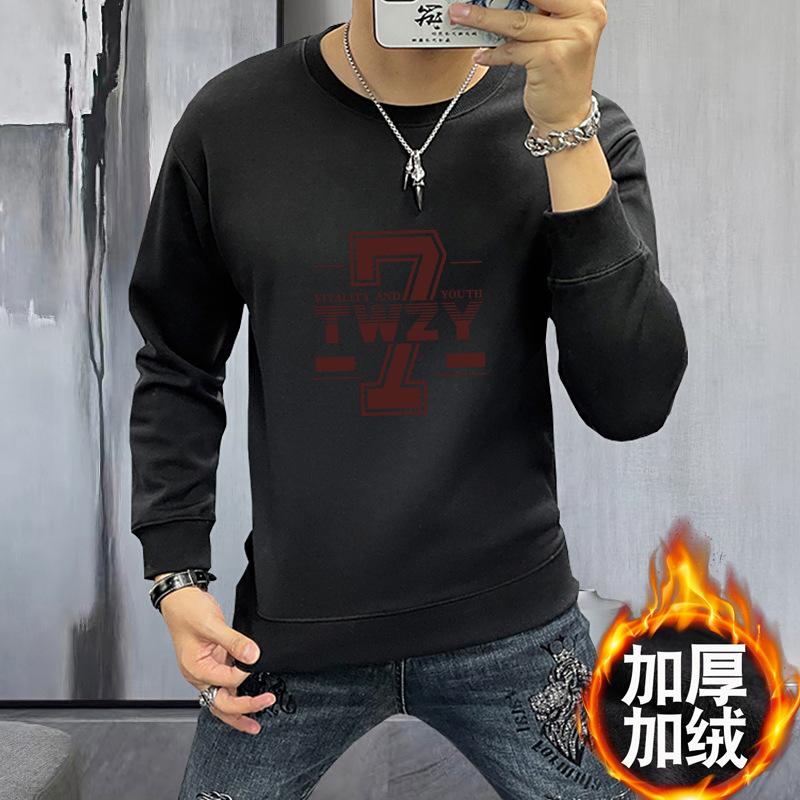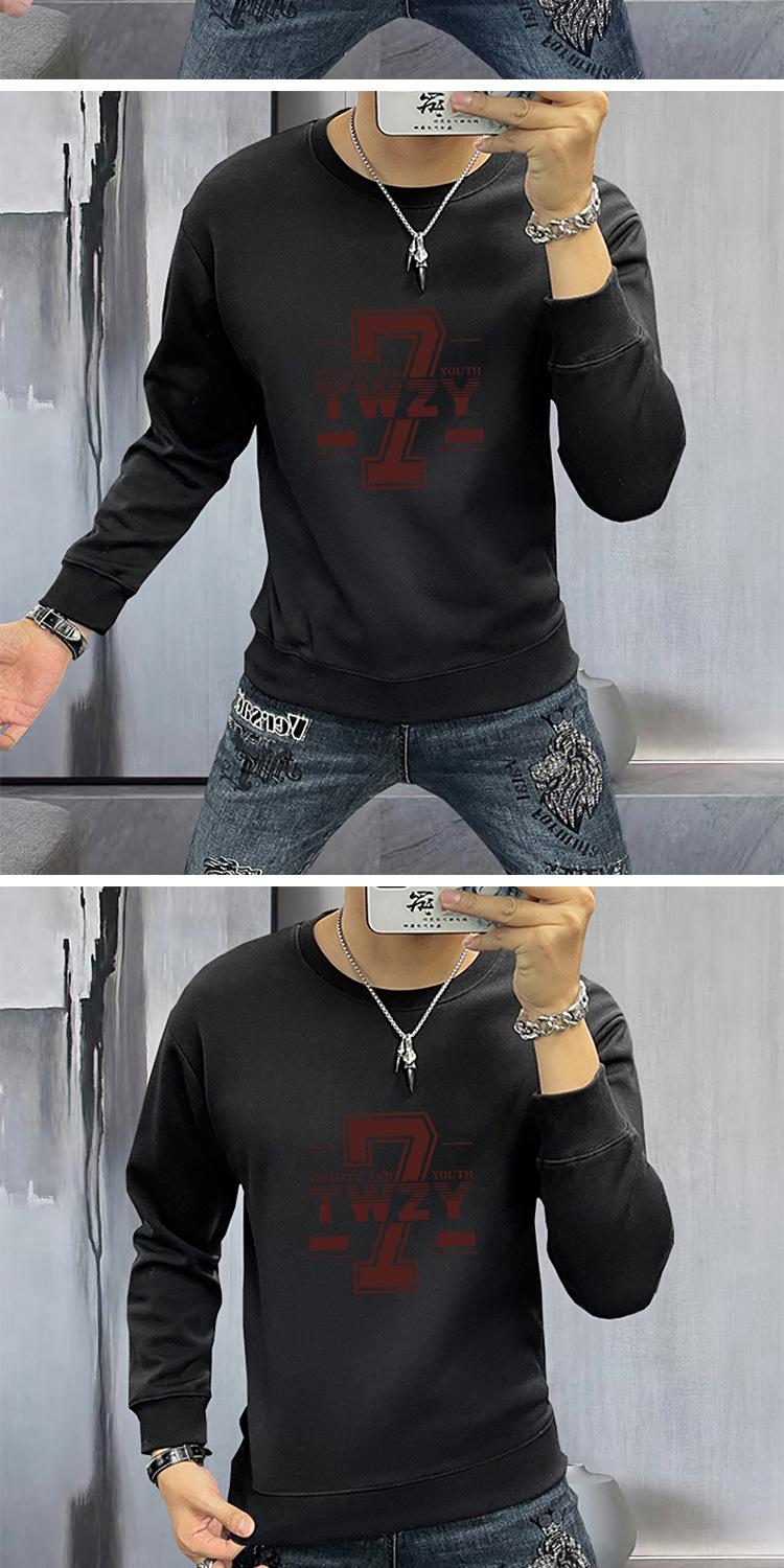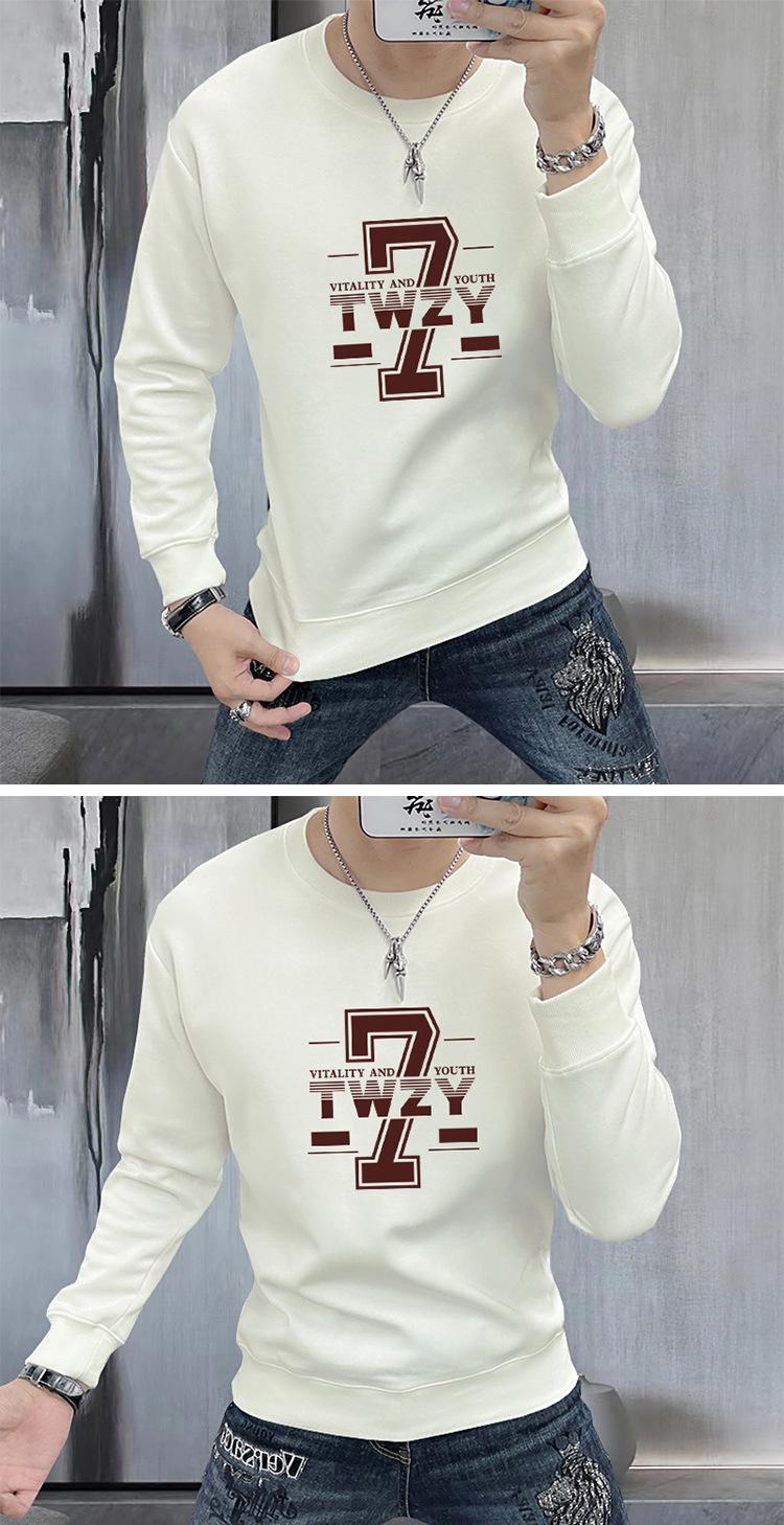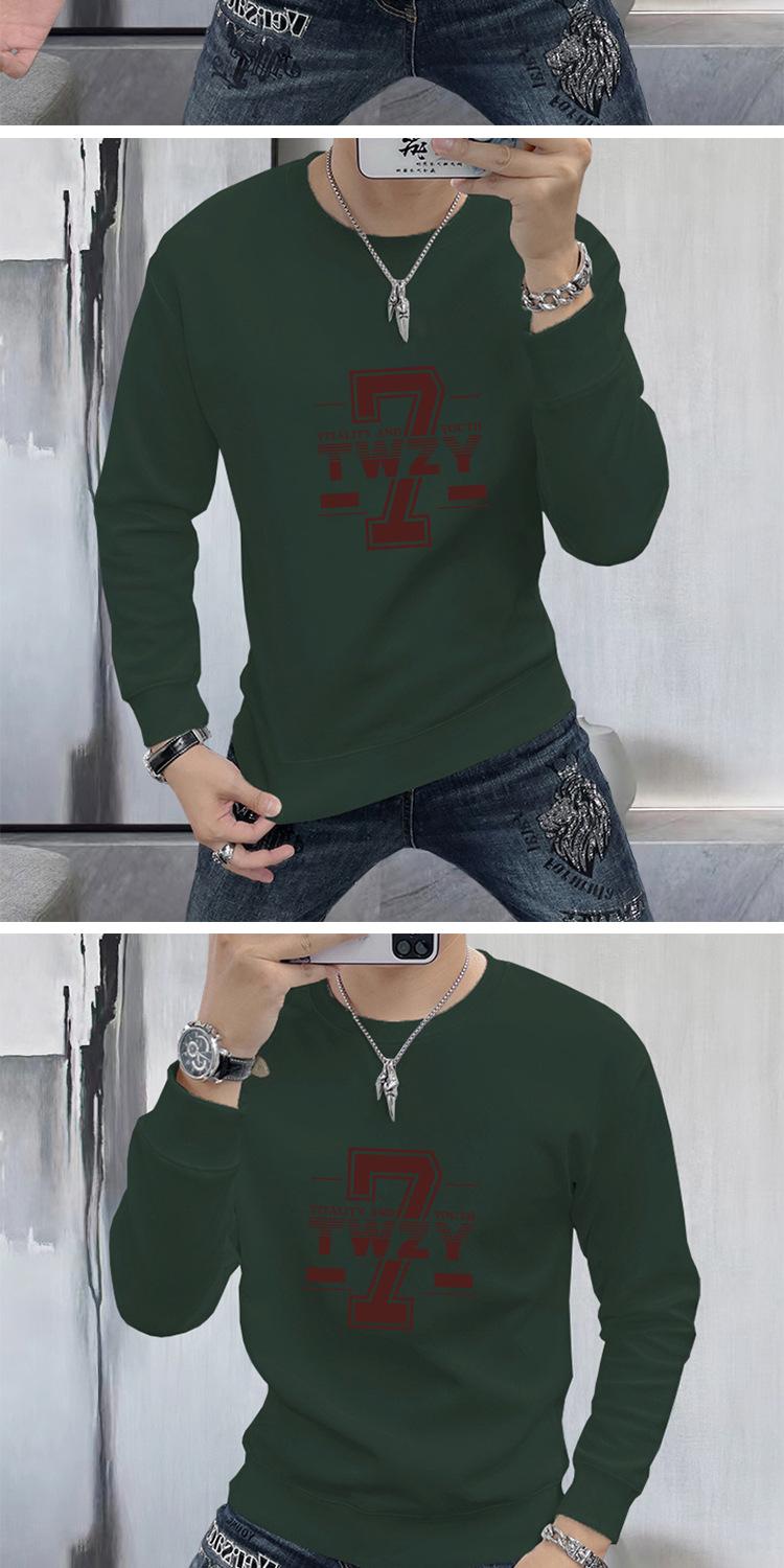 Suéter para hombre, jersey estampado de primavera y otoño, camisa de fondo, corte entallado, ropa interior y exterior, camiseta de manga larga de 360 g, cuello redondo