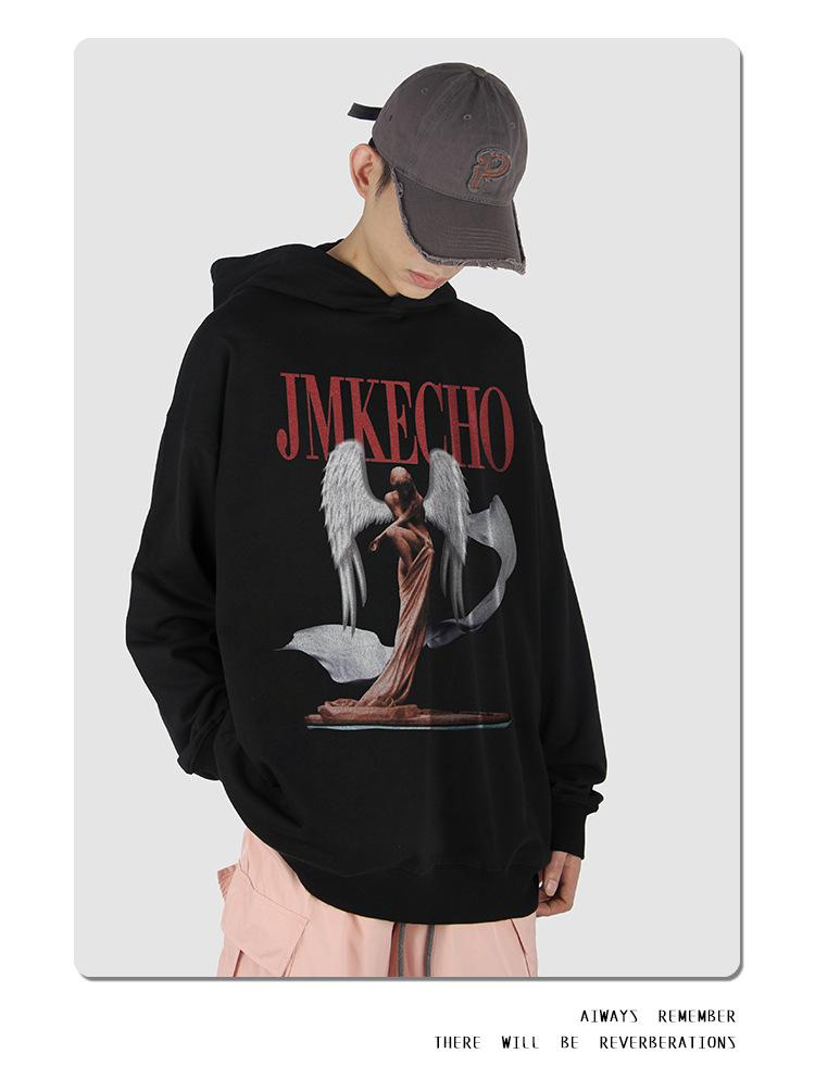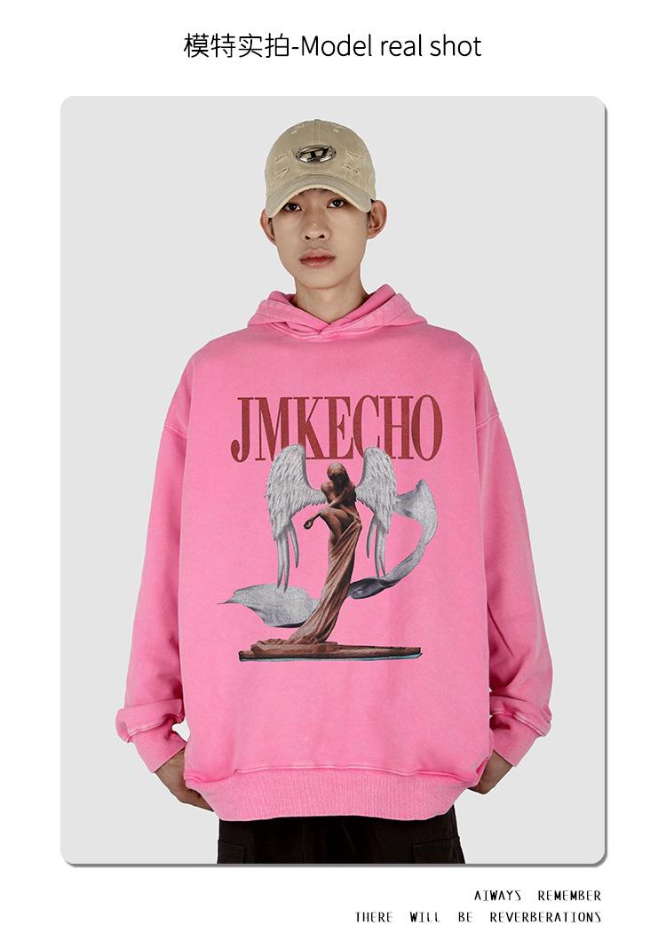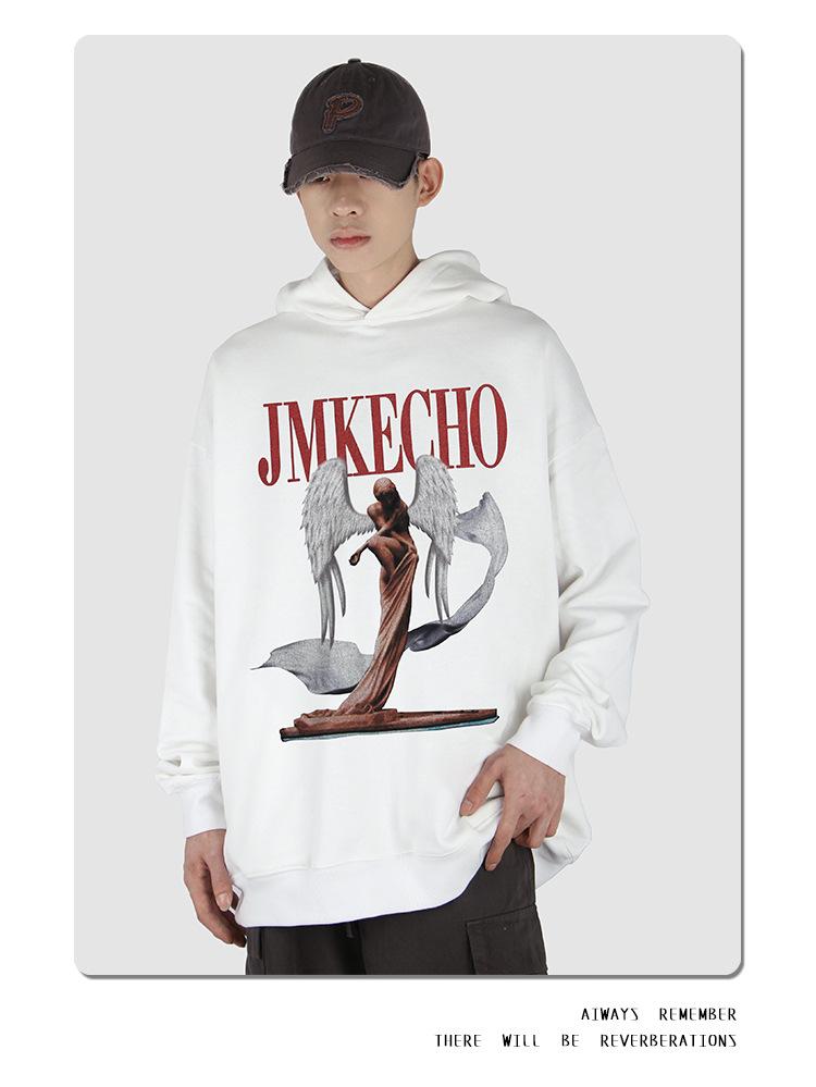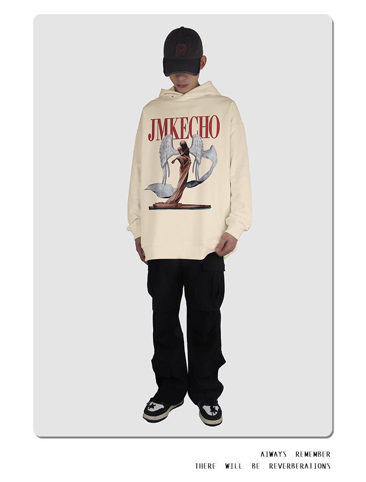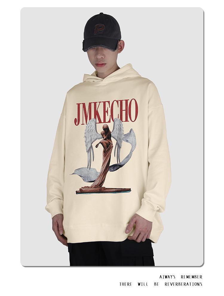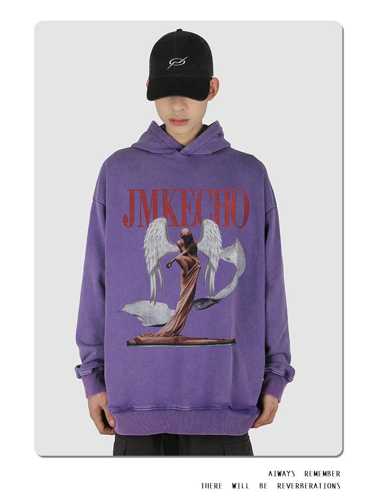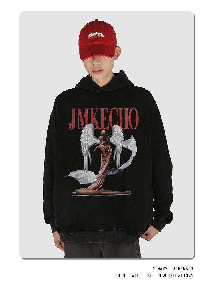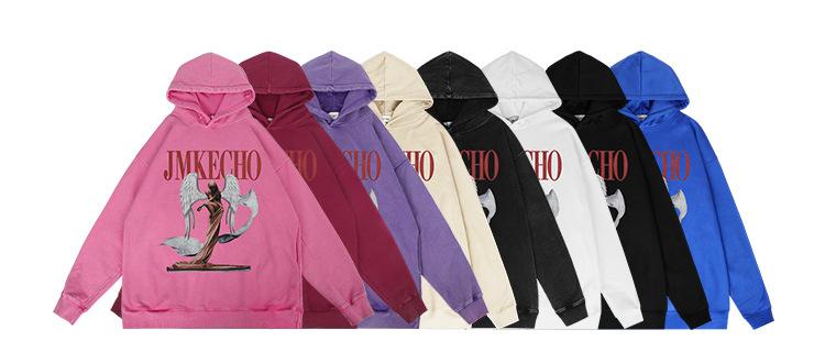JMKECHO, marca de moda masculina estadounidense, estampada, lavada, pesada, 400 g, manga larga, con capucha, suelta, estilo hip hop, para hombres y mujeres de calle