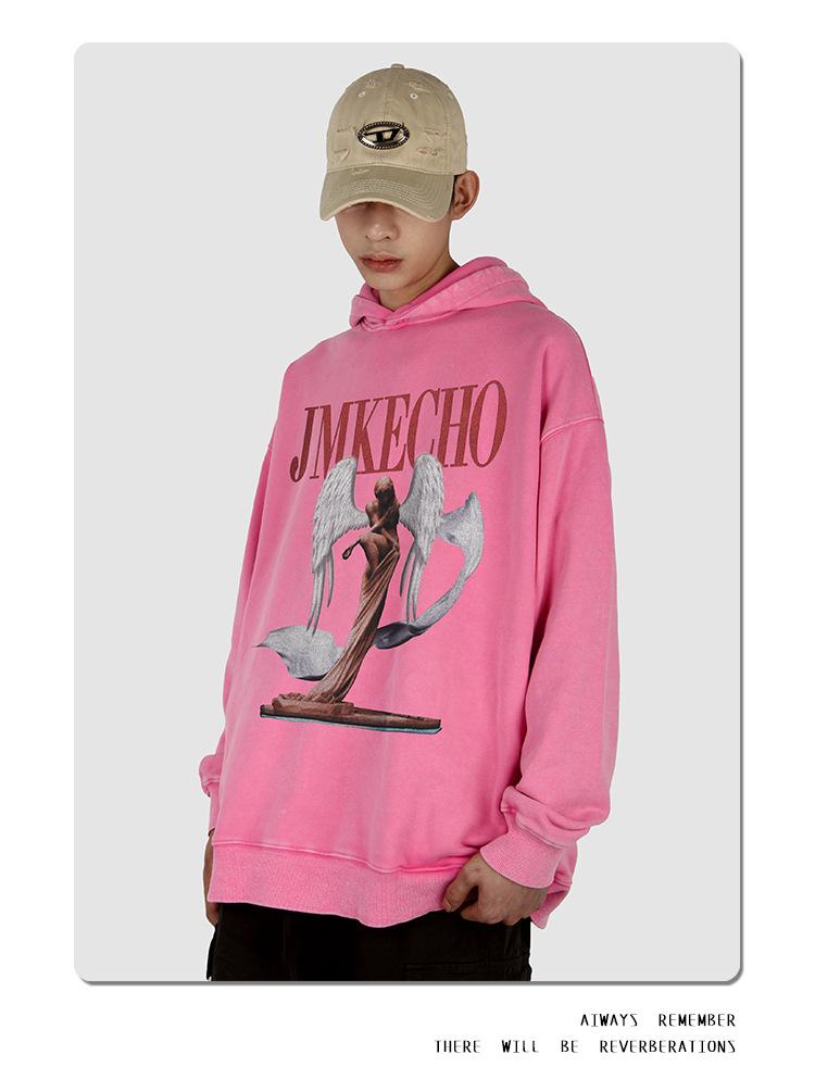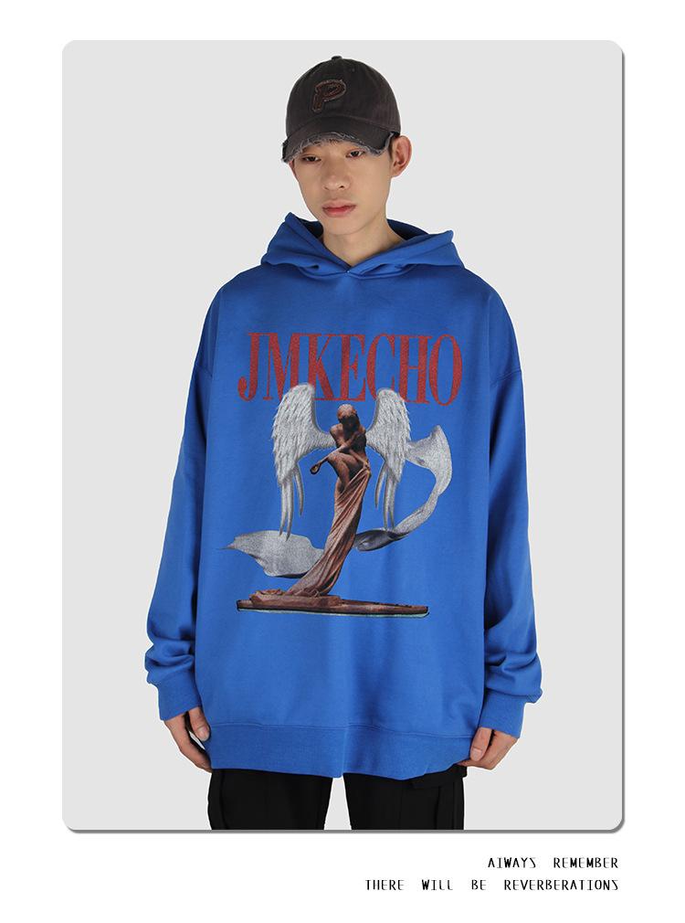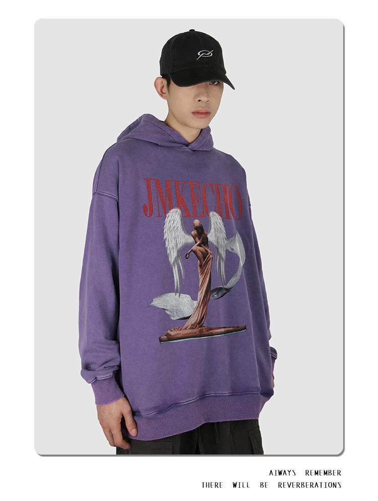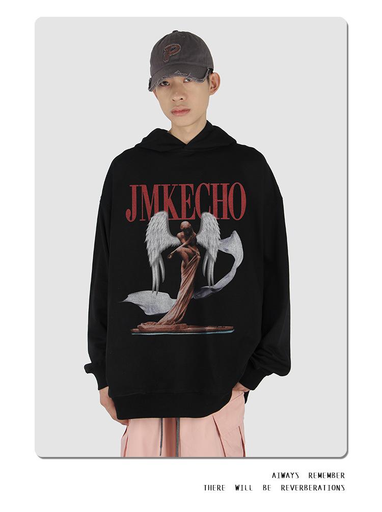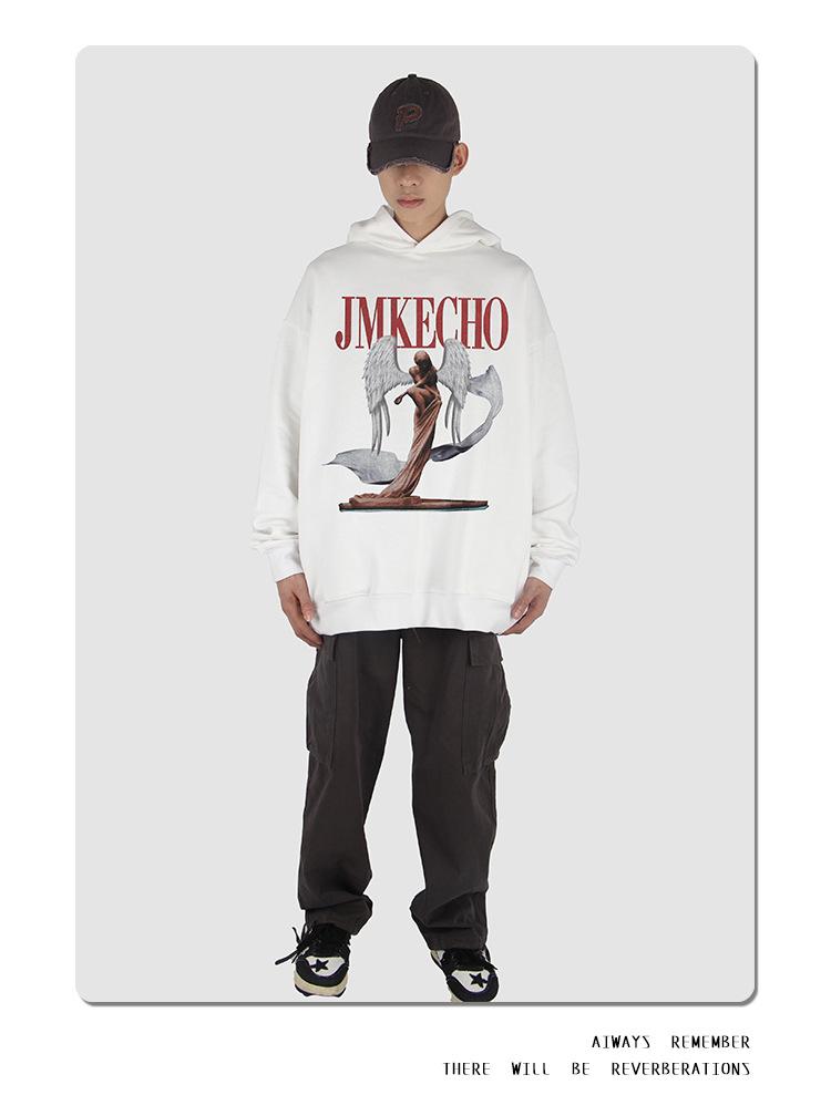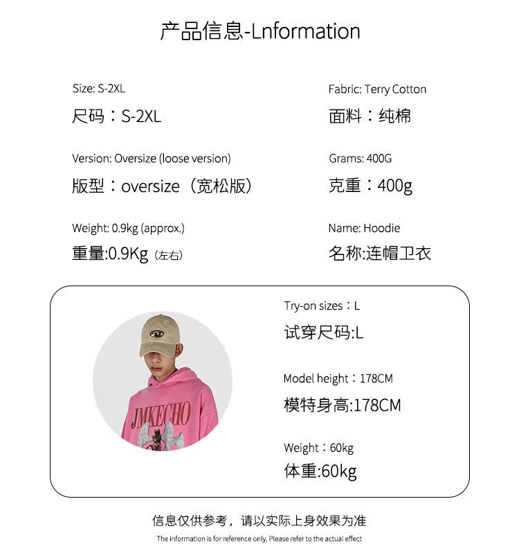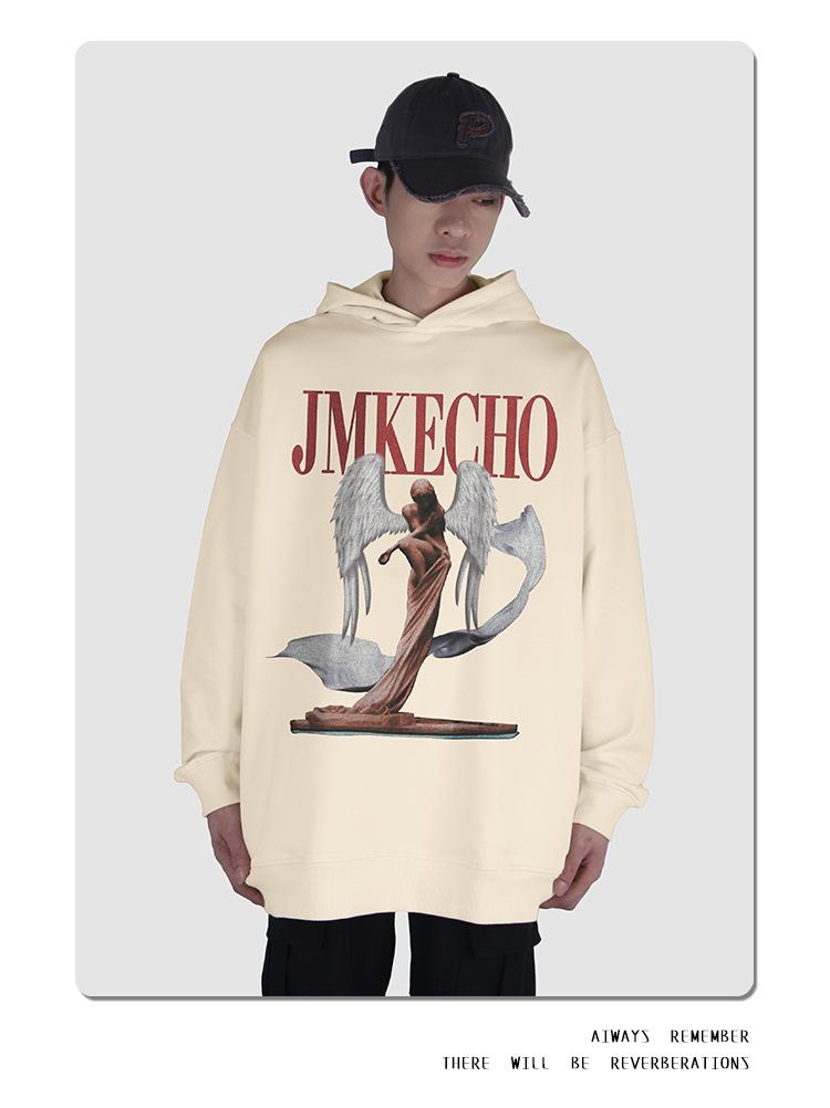 JMKECHO, marca de moda masculina estadounidense, estampada, lavada, pesada, 400 g, manga larga, con capucha, suelta, estilo hip hop, para hombres y mujeres de calle