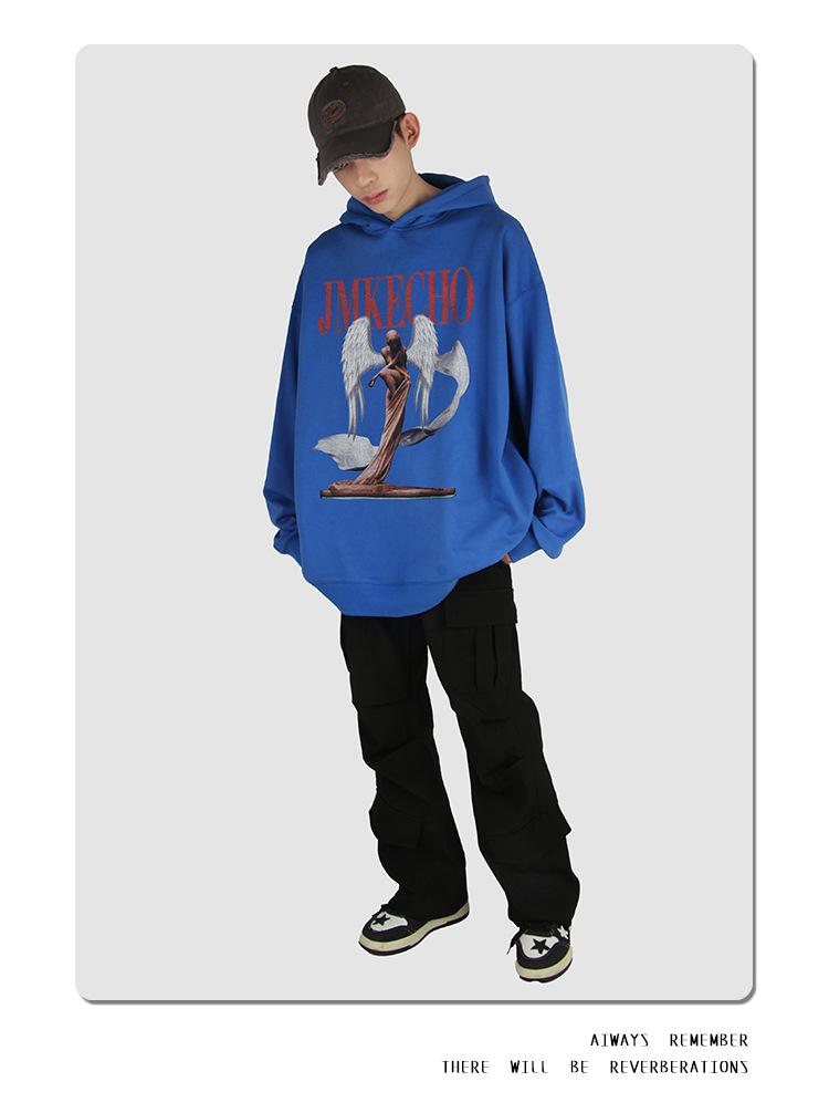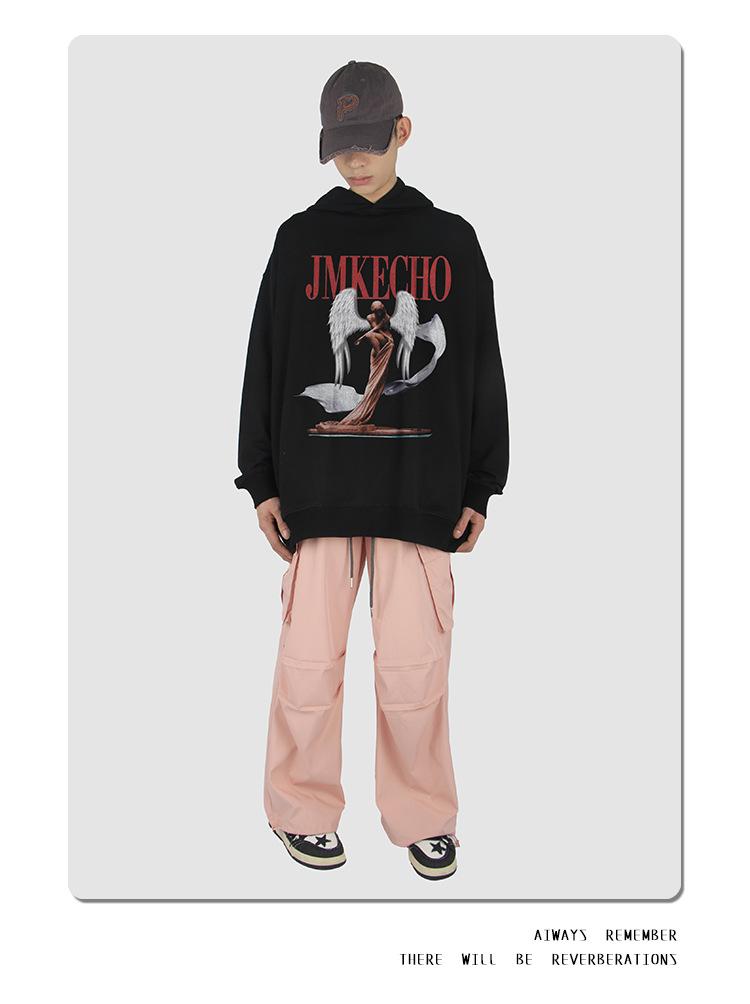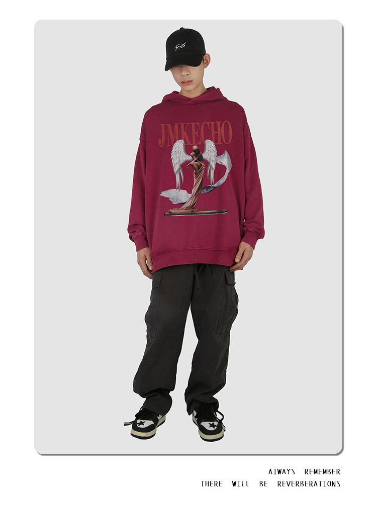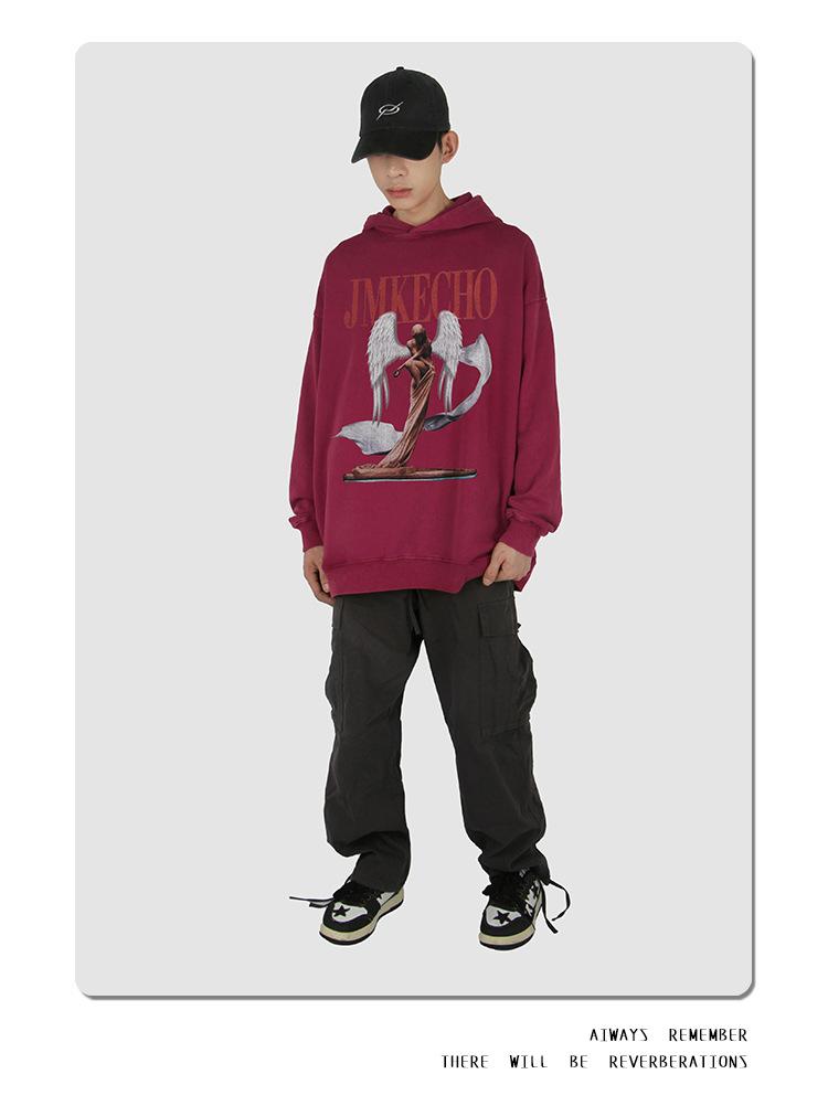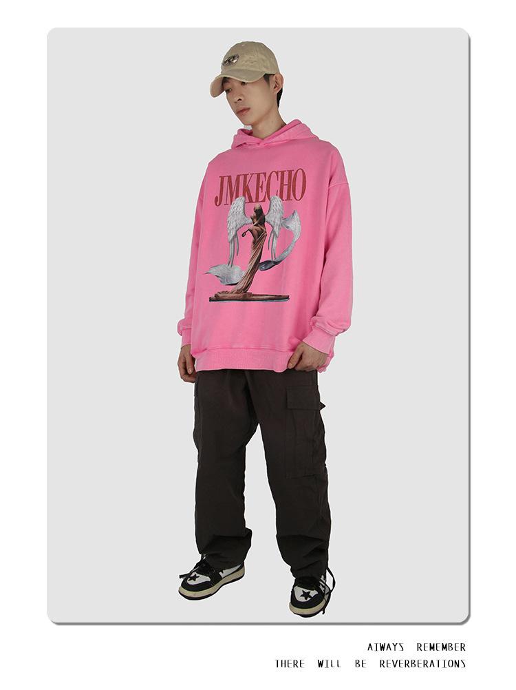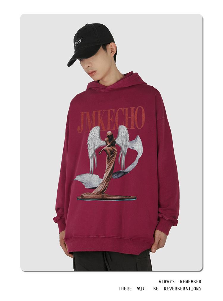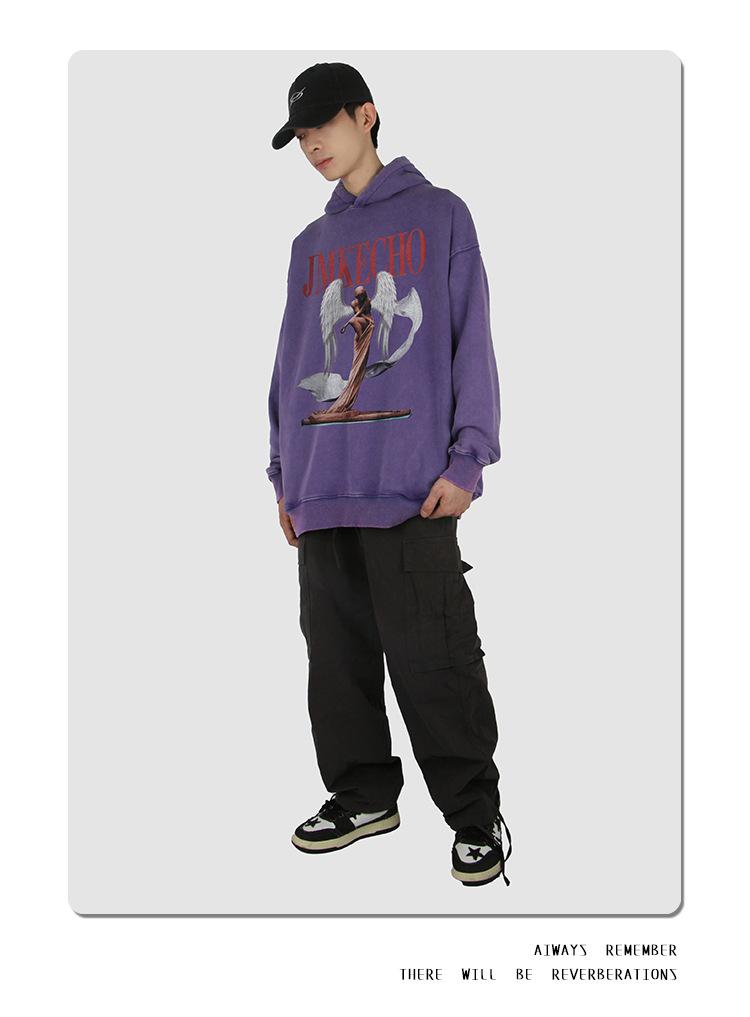 JMKECHO, marca de moda masculina estadounidense, estampada, lavada, pesada, 400 g, manga larga, con capucha, suelta, estilo hip hop, para hombres y mujeres de calle