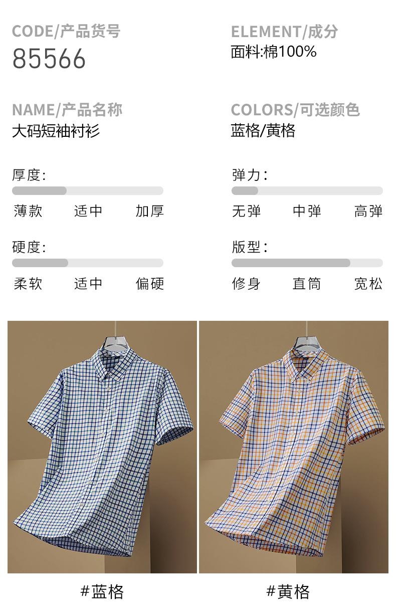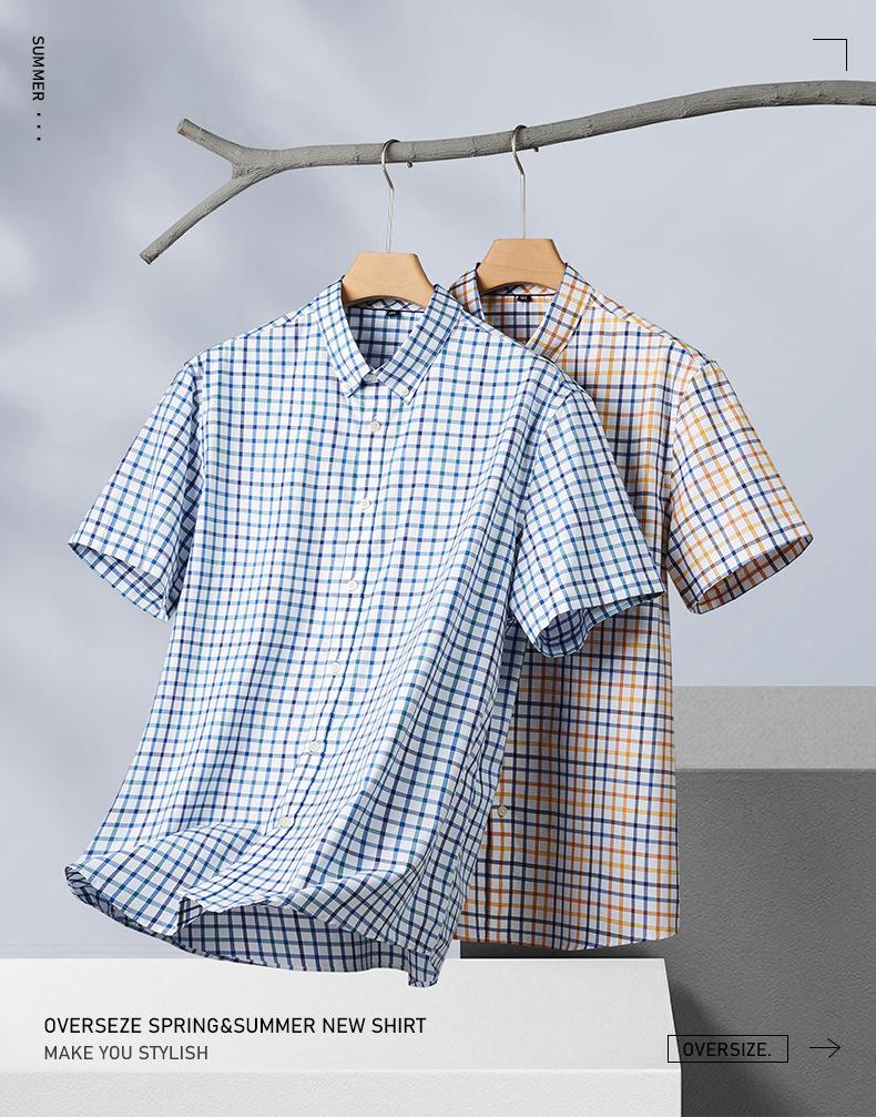 Camisa a cuadros de manga corta para hombre gordo, informal, de negocios, de talla grande, holgada y fina, a la moda, para verano