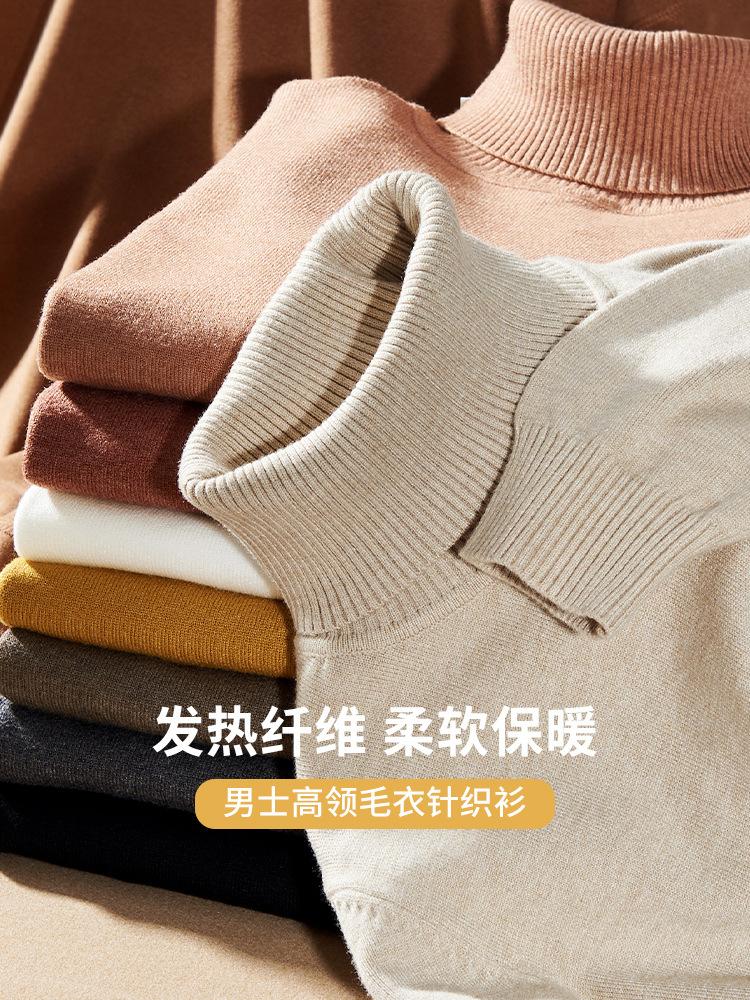 Suéter de Cuello Alto para Hombre Otoño e Invierno Nuevo Camisa de Punto Casual para Hombre Ajustado Cálido Camisa Base Top Personalizado