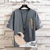 Algodón Puro Marca Trendy Manga Corta Hombre Verano Estilo Urbano Corte Holgado Tendencia Nacional Personalizado Colorido Estampado Cuello Redondo Camiseta Casual Versátil Top