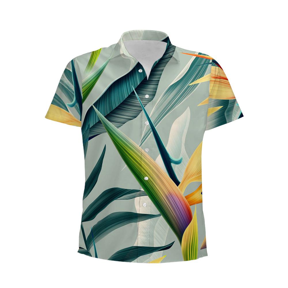 Camisa hawaiana de verano para hombre, talla europea, con solapa estampada, manga corta, estilo vacacional, para comercio exterior transfronterizo