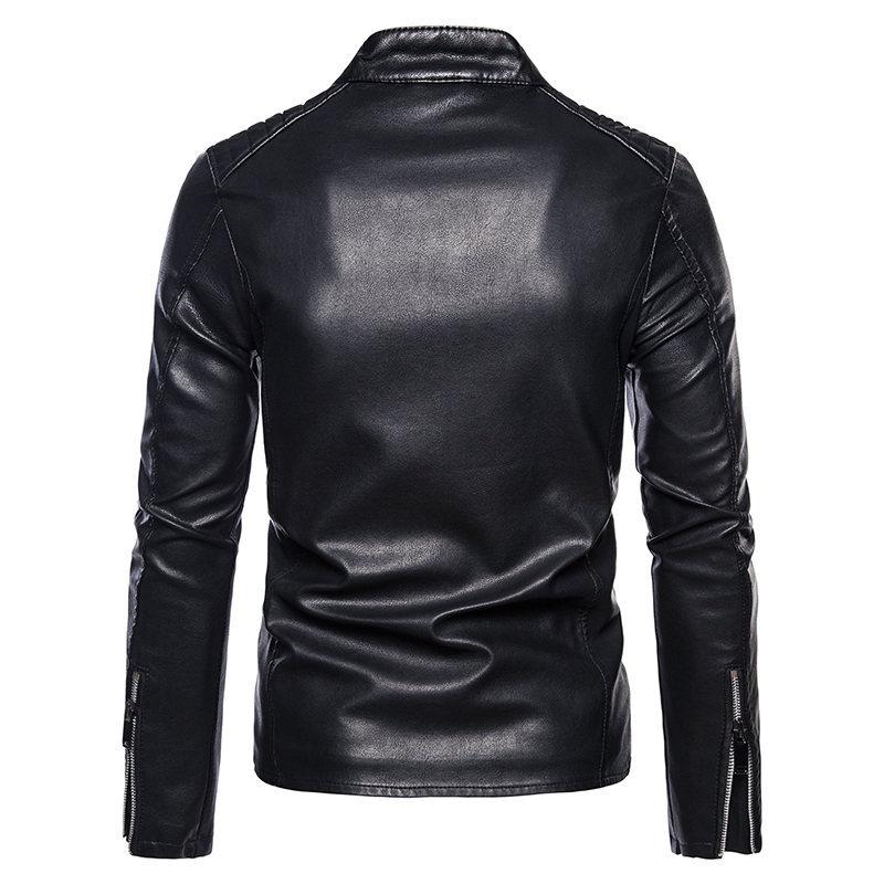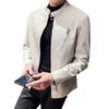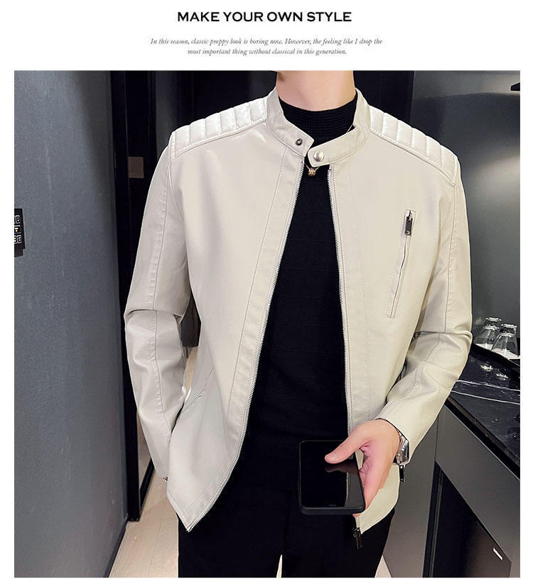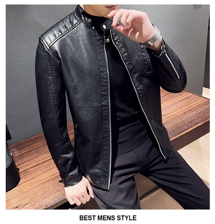 Chaqueta de cuero de Amazon para hombre, otoño e invierno, nueva chaqueta de cuero corta y ajustada con cuello alto, chaqueta de cuero PU para motocicleta de moda para hombre