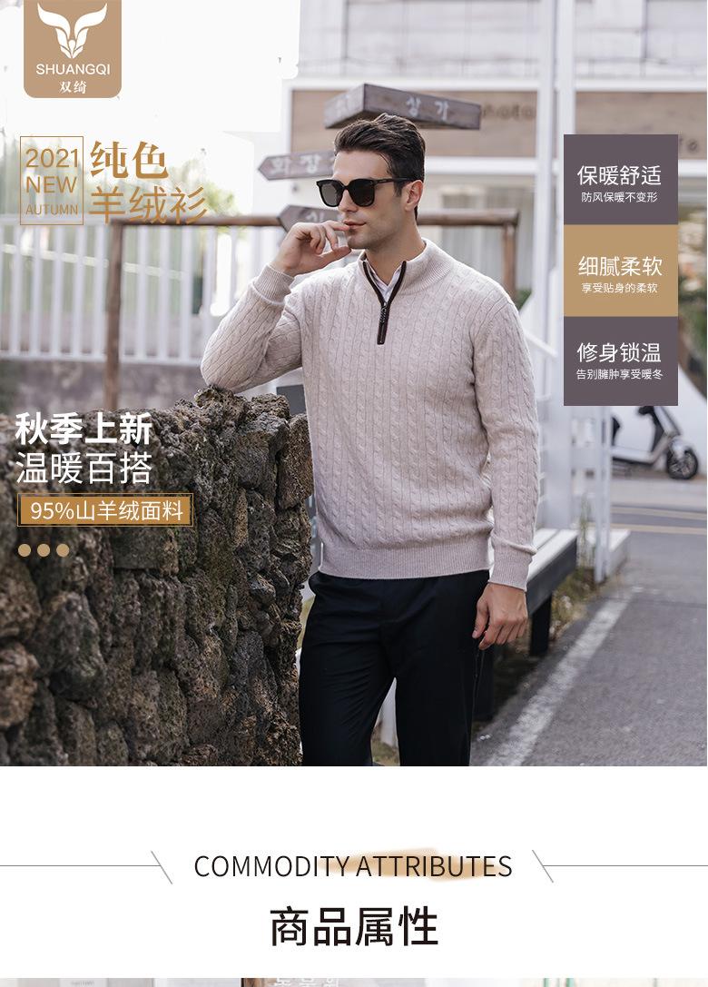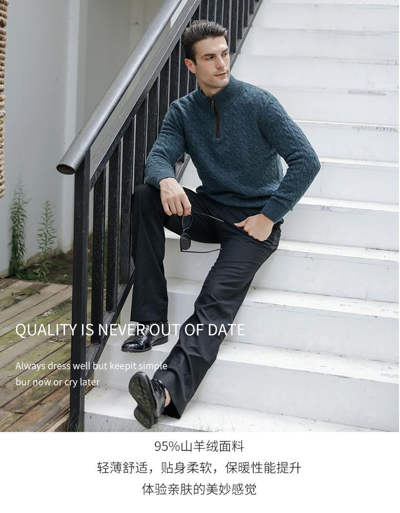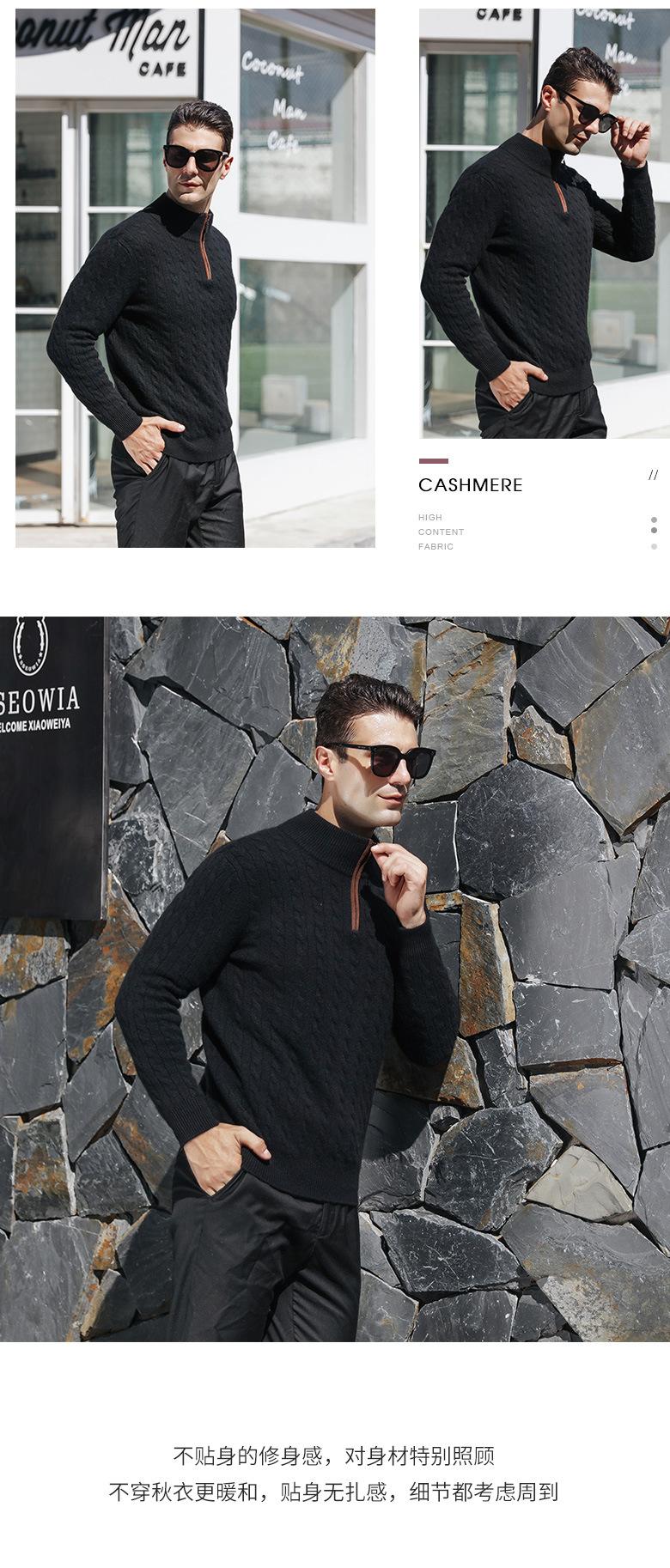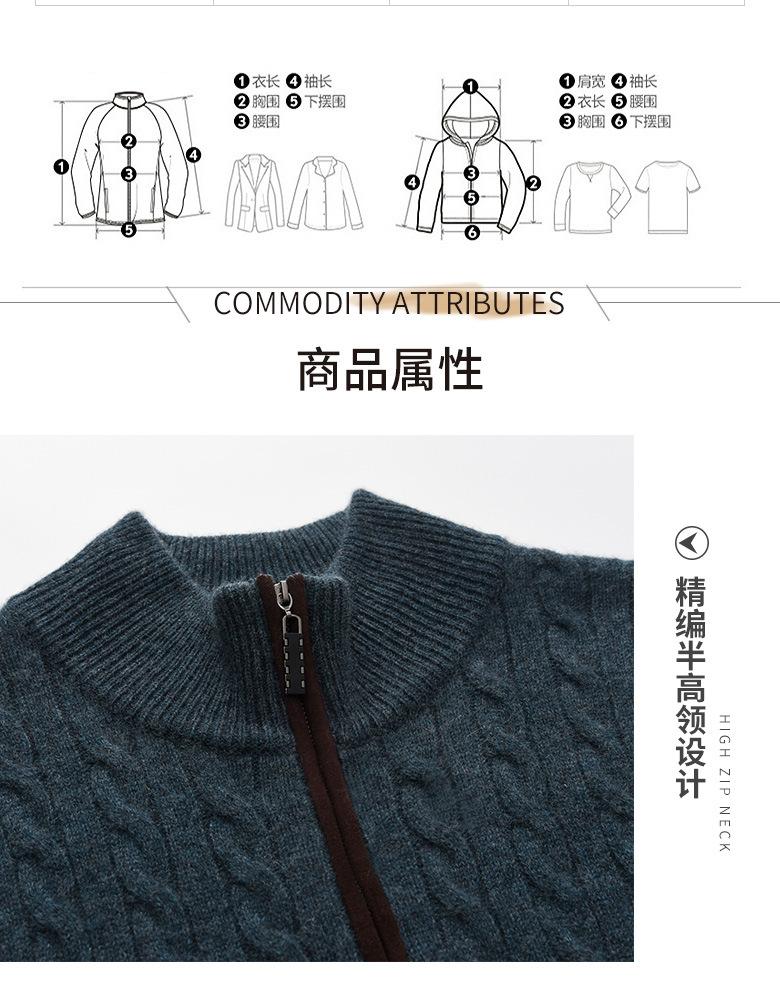 Suéter nuevo de cachemira para hombre cuello medio alto trenza decorativa cremallera jersey para hombre invierno cálido Suéter para hombre al por mayor