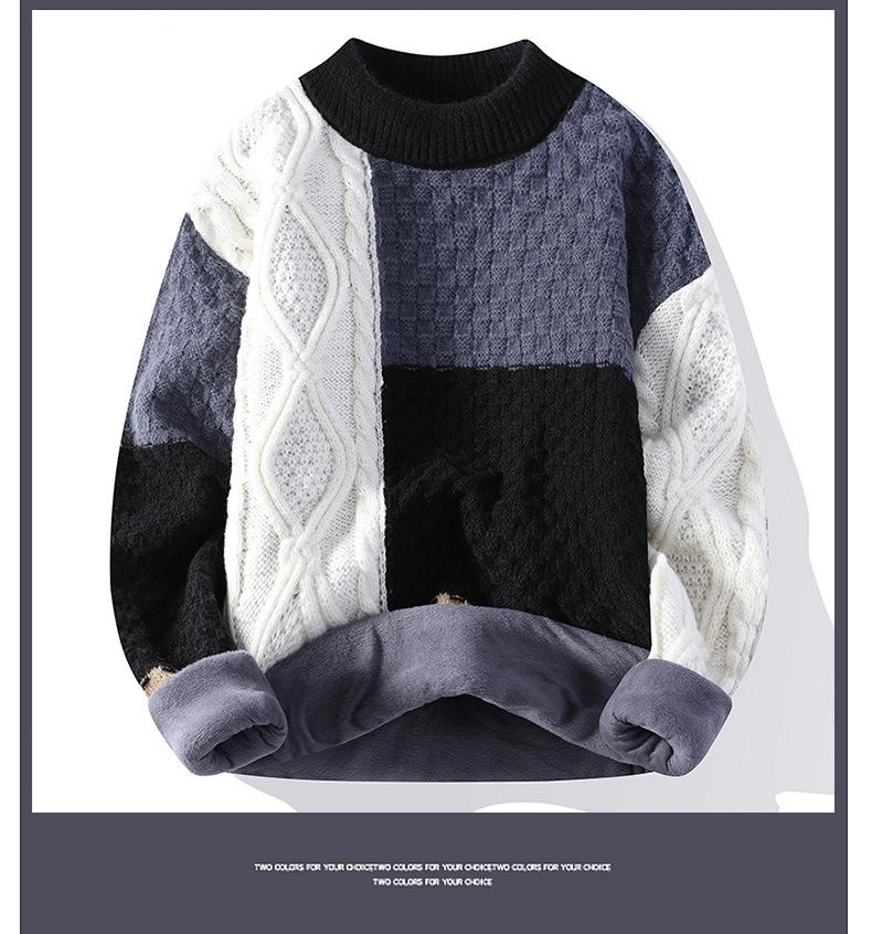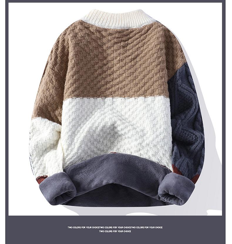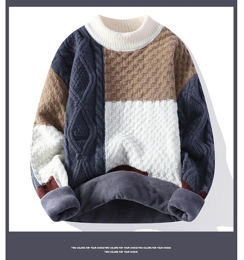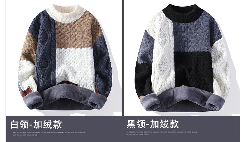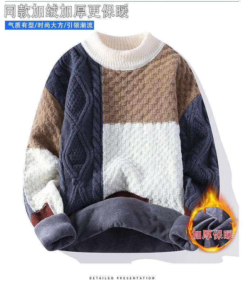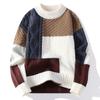 Suéter de cuello redondo con forro polar para hombre, otoño e invierno 2023, suéter interior tejido torcido, camisa holgada a juego con el color