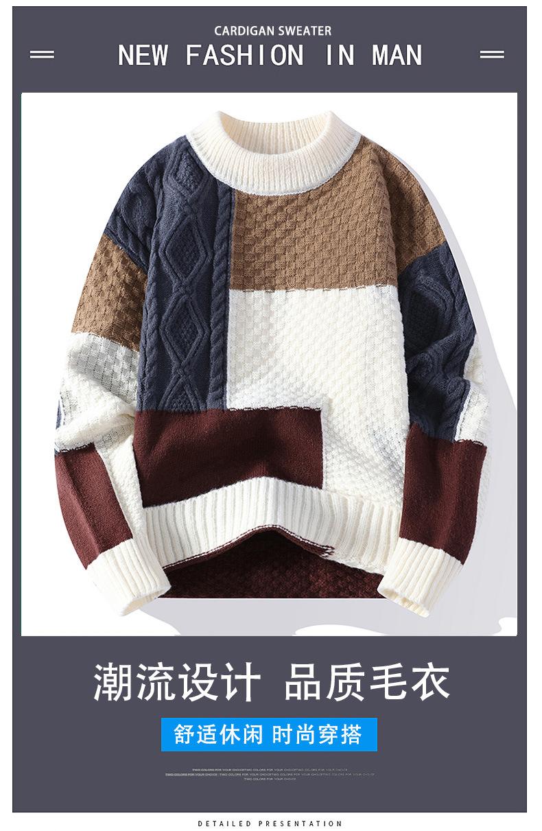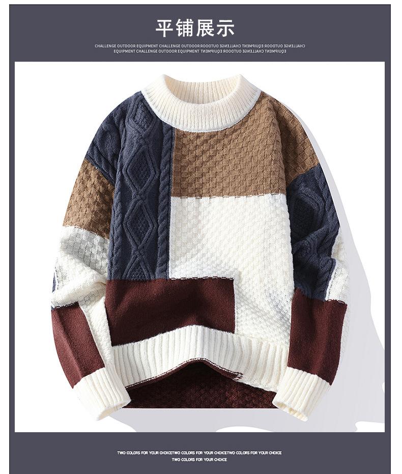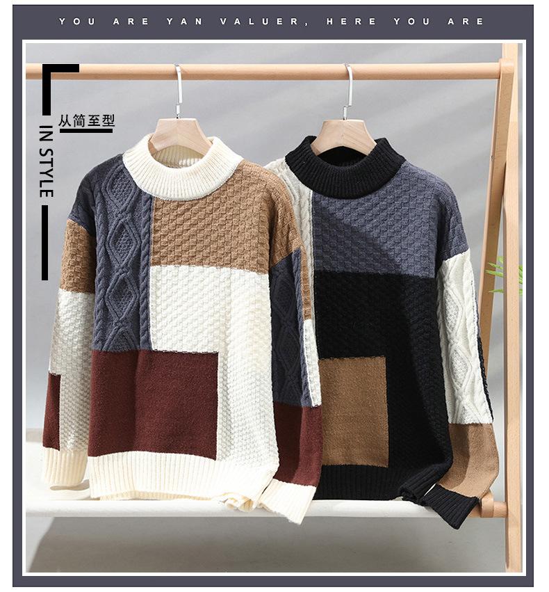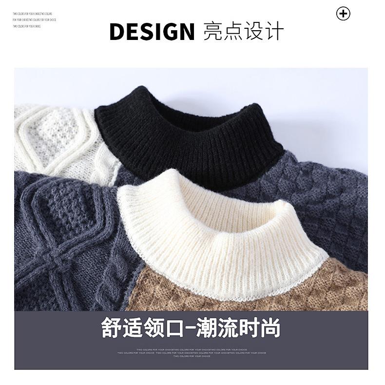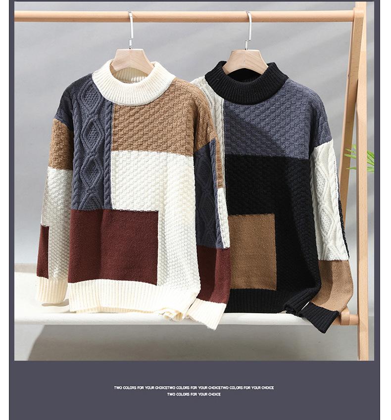 Suéter de cuello redondo con forro polar para hombre, otoño e invierno 2023, suéter interior tejido torcido, camisa holgada a juego con el color