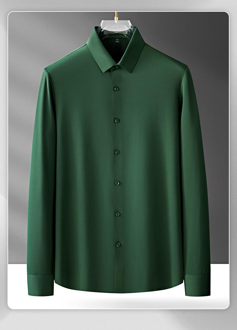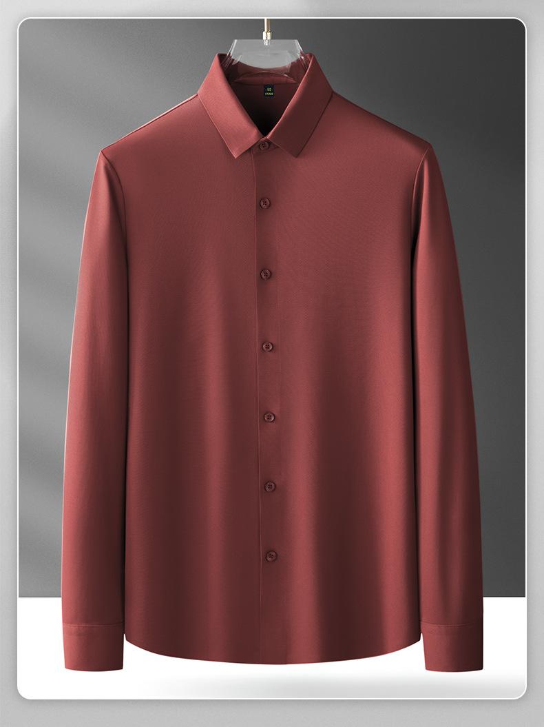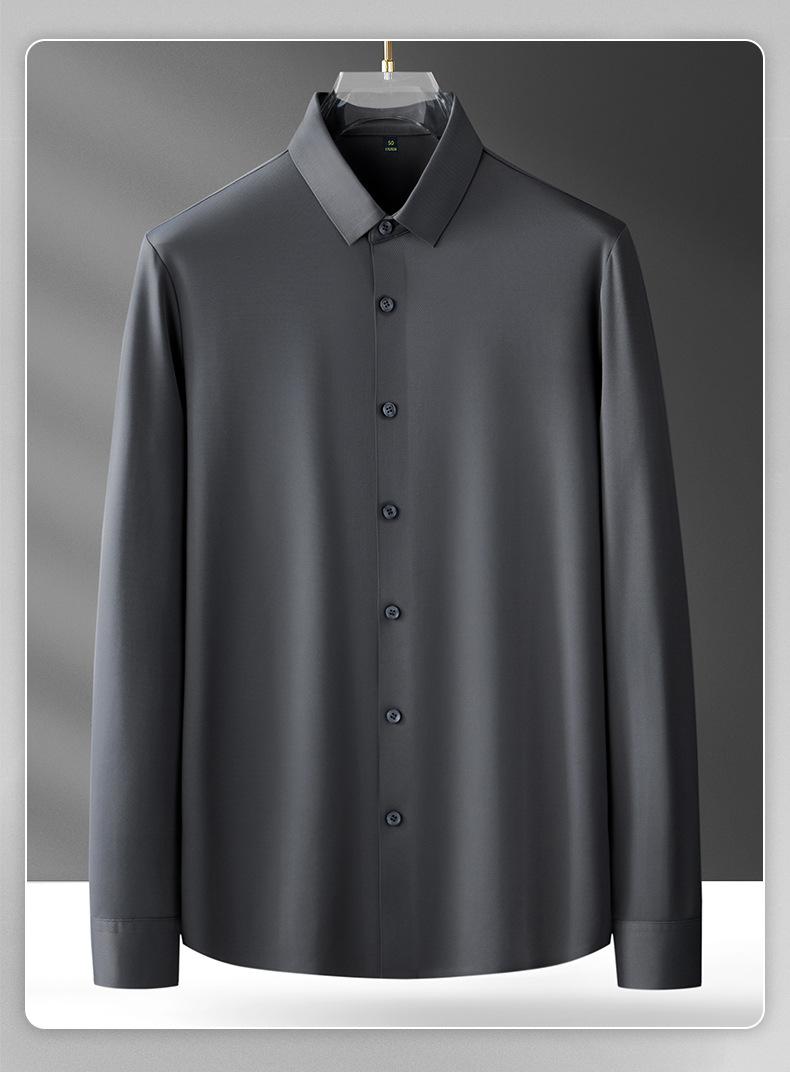 Camisa de Manga Larga sin Costuras para Hombre, Top Casual Formal Ligero para Primavera y Otoño, Camisa sin Planchado, Camisa Laminada Antiarrugas sin Planchado para Hombre
