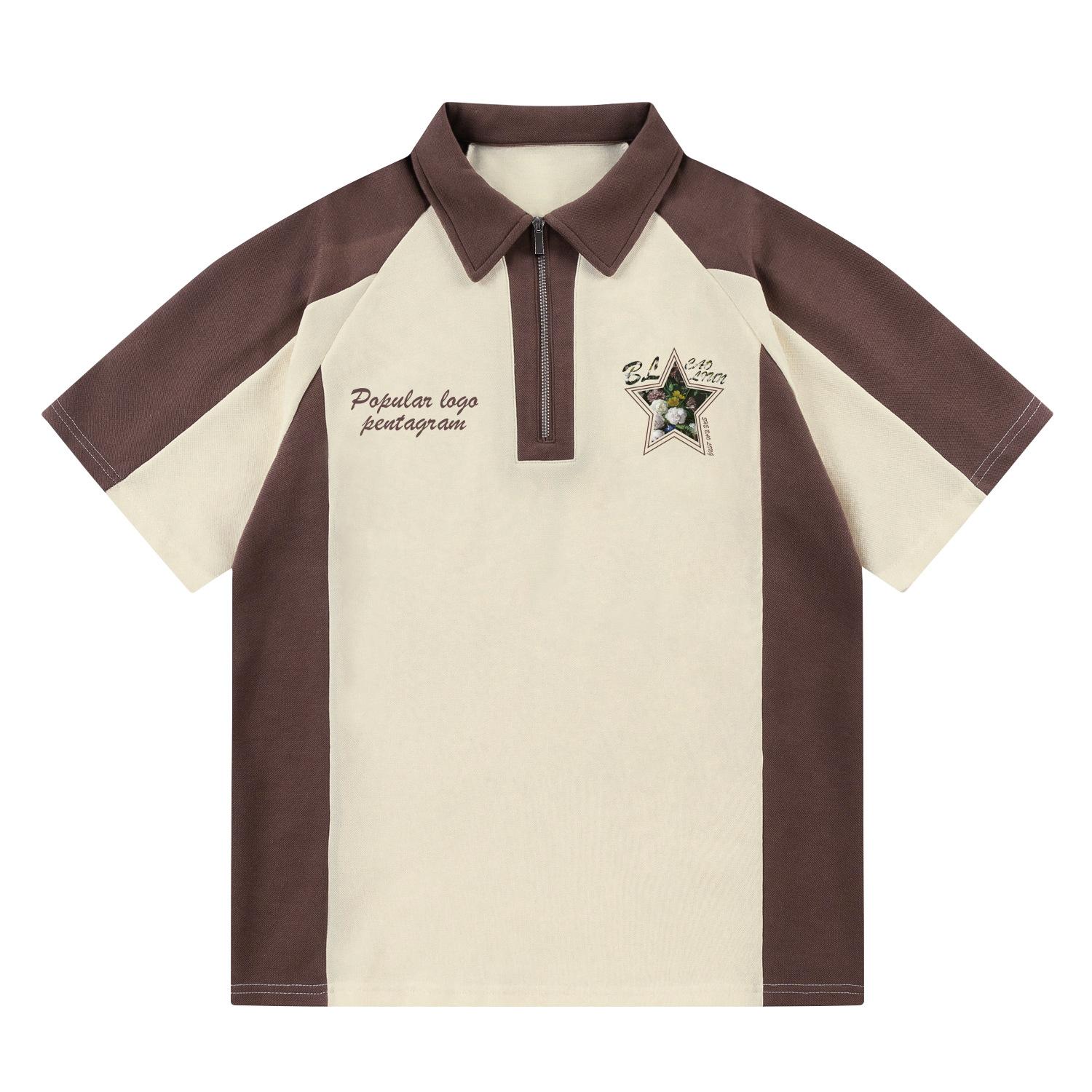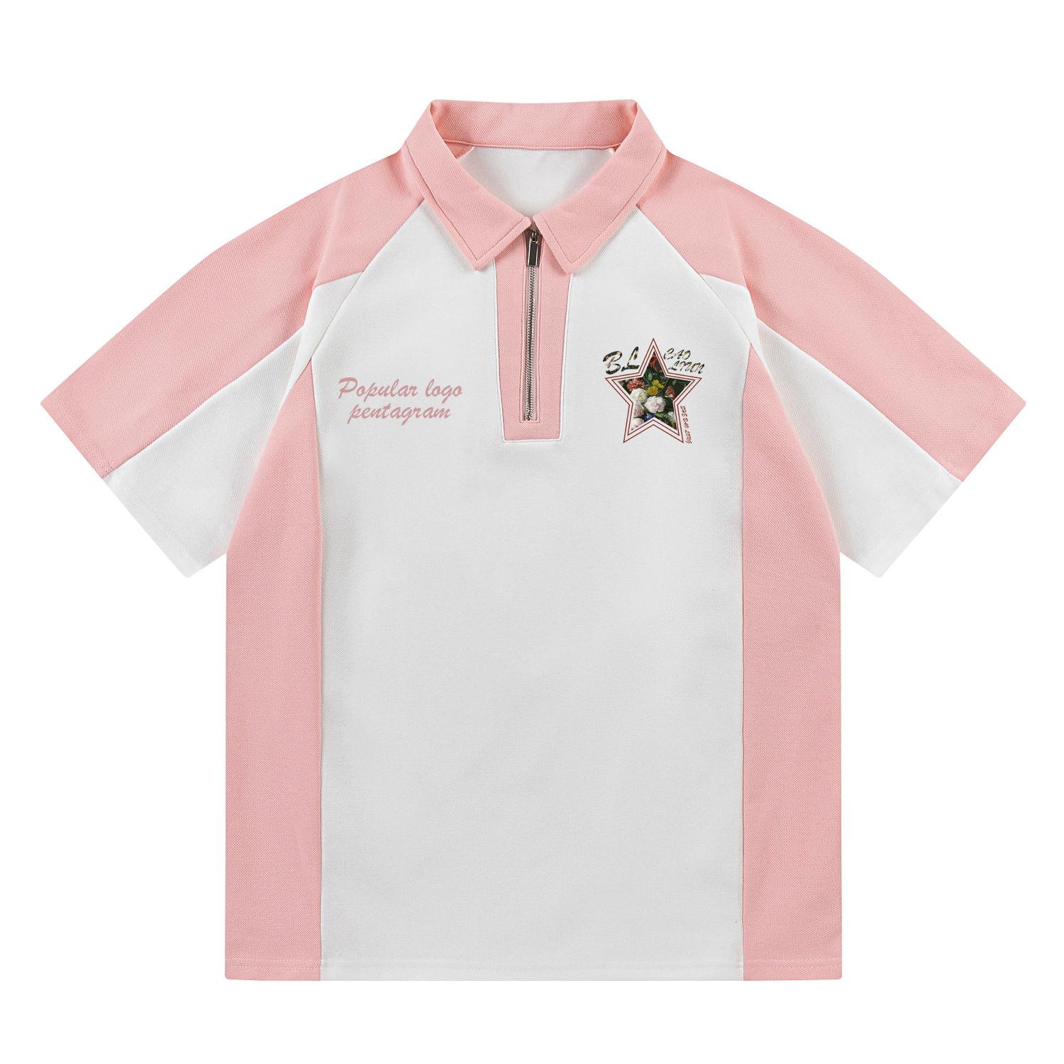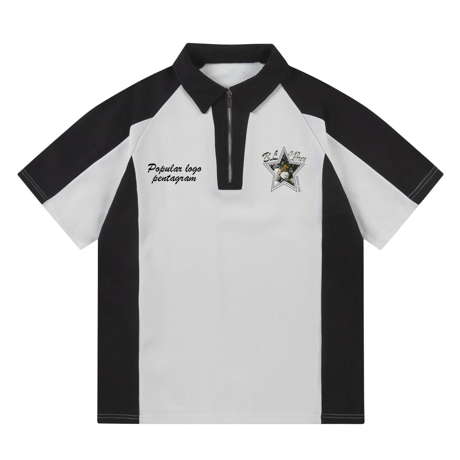 Camiseta de manga corta con cuello polo, nueva camiseta de verano 2024 con costuras en contraste de colores, polo de solapa holgado para hombre y mujer