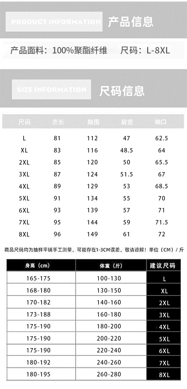 L, XL, XXL, XXXL, 4XL, 5XL, 6XL, 7XL, 8XL
