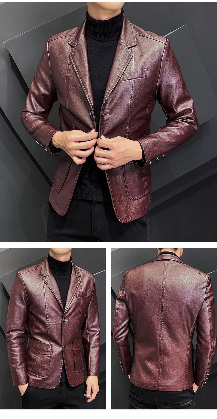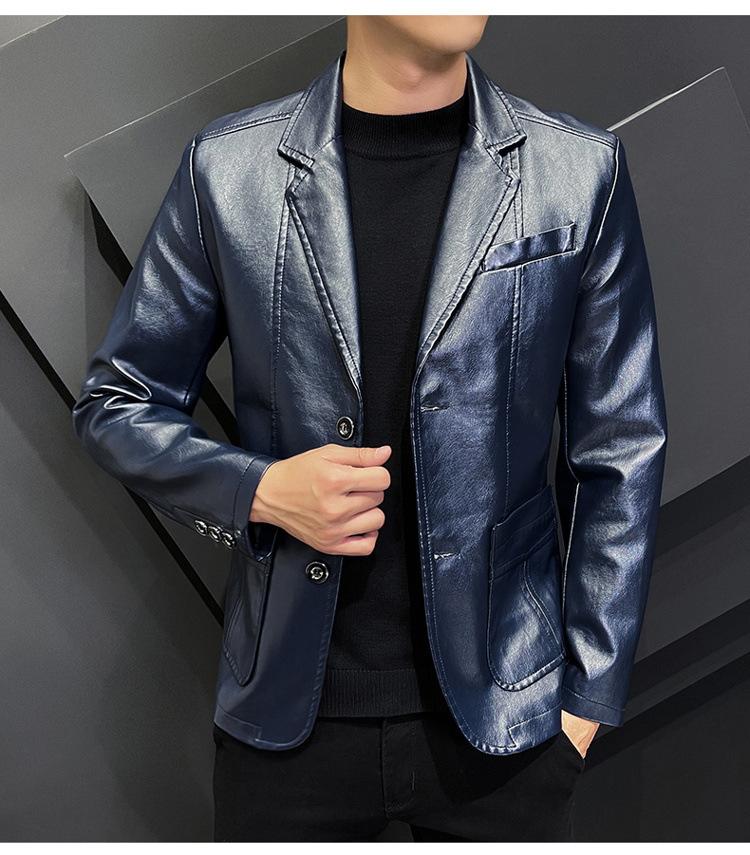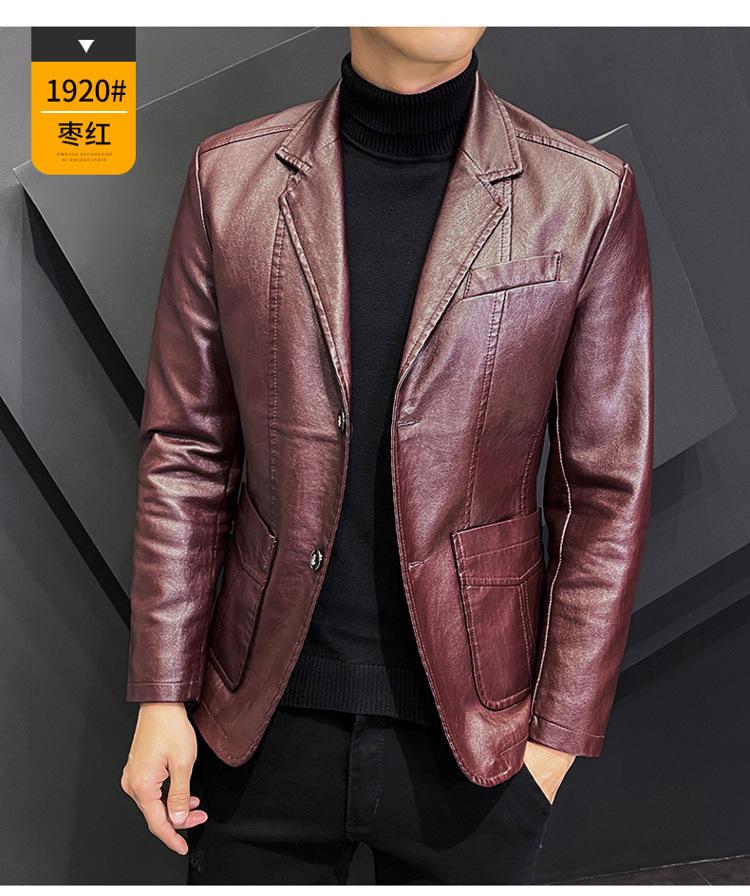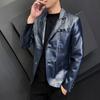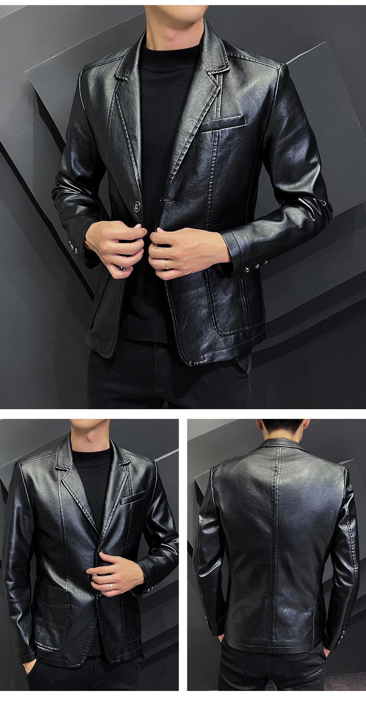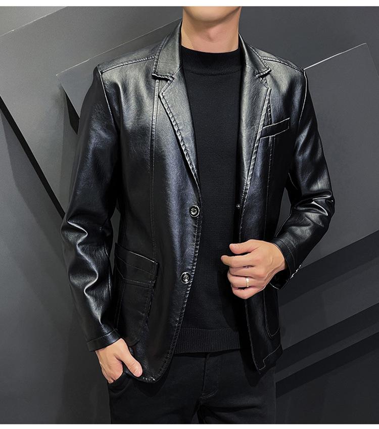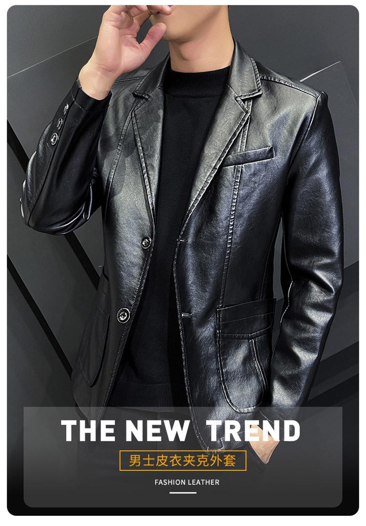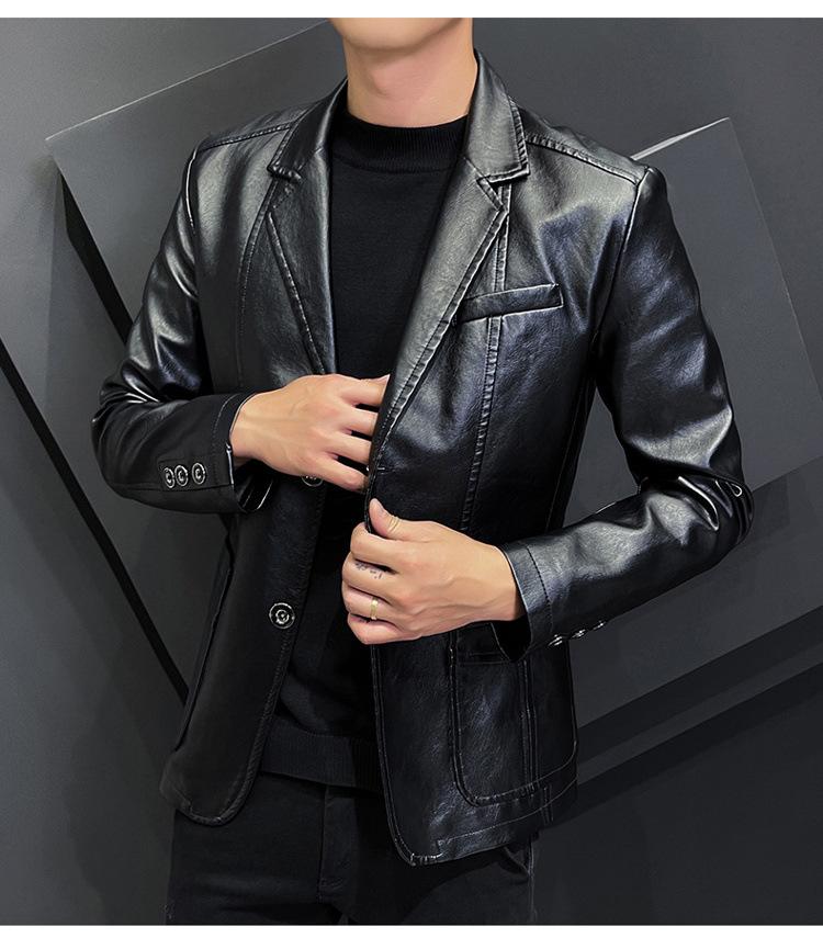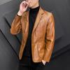 Chaqueta de cuero para hombre, otoño e invierno 2022, estilo coreano, de corte entallado, juvenil, con solapa elegante