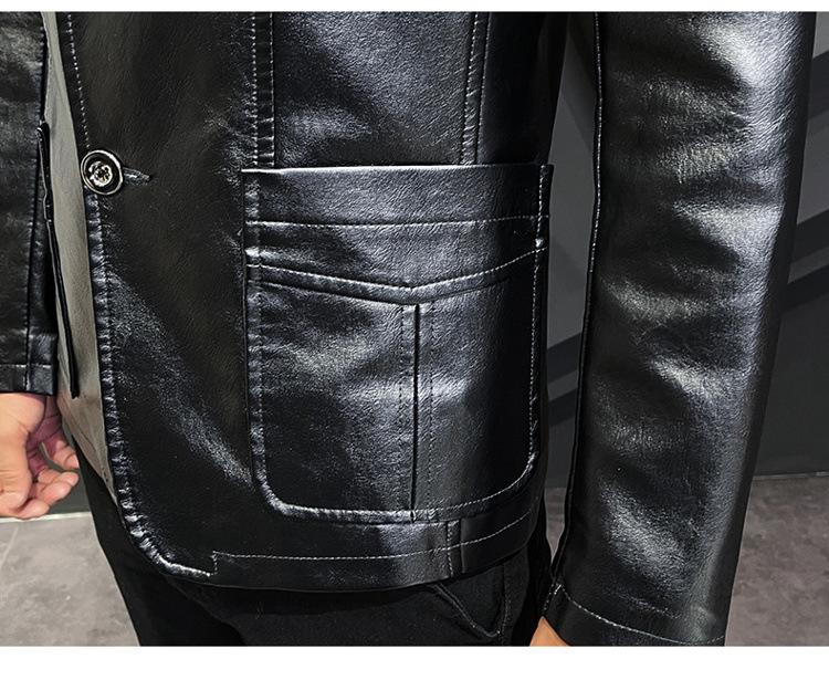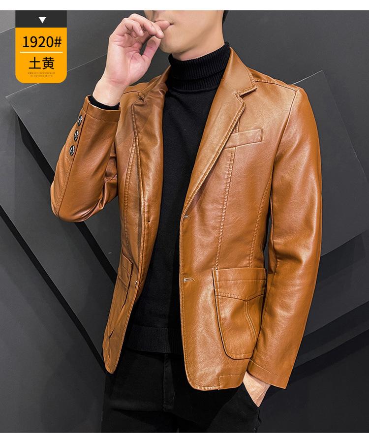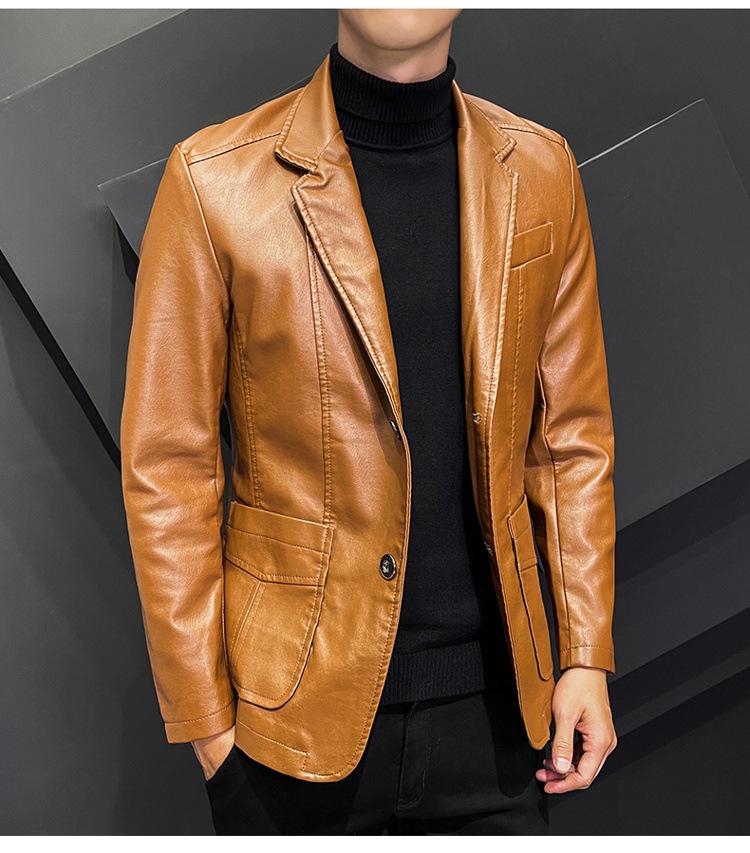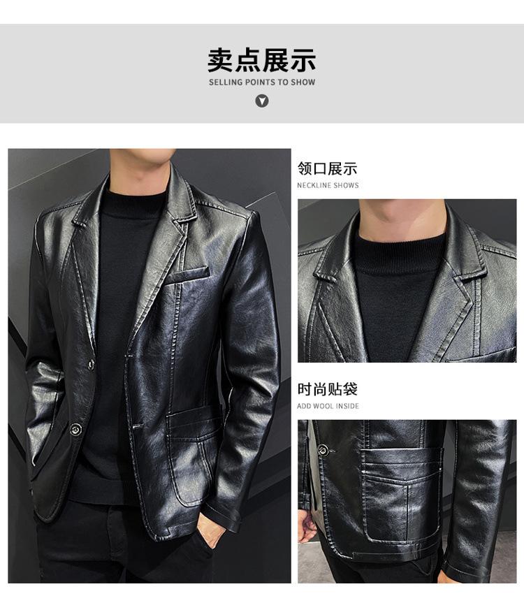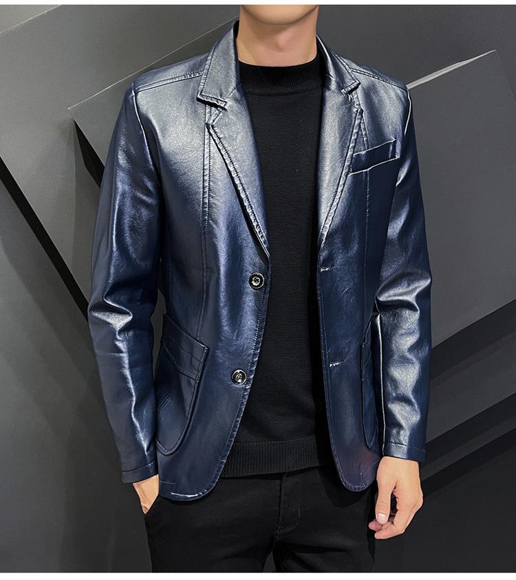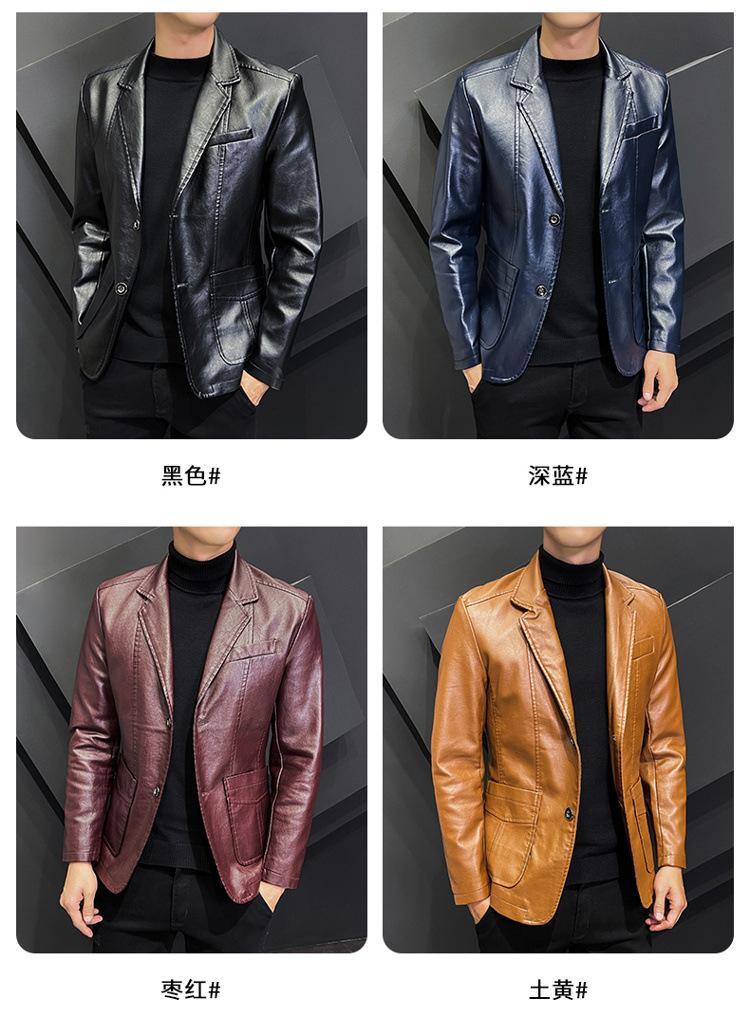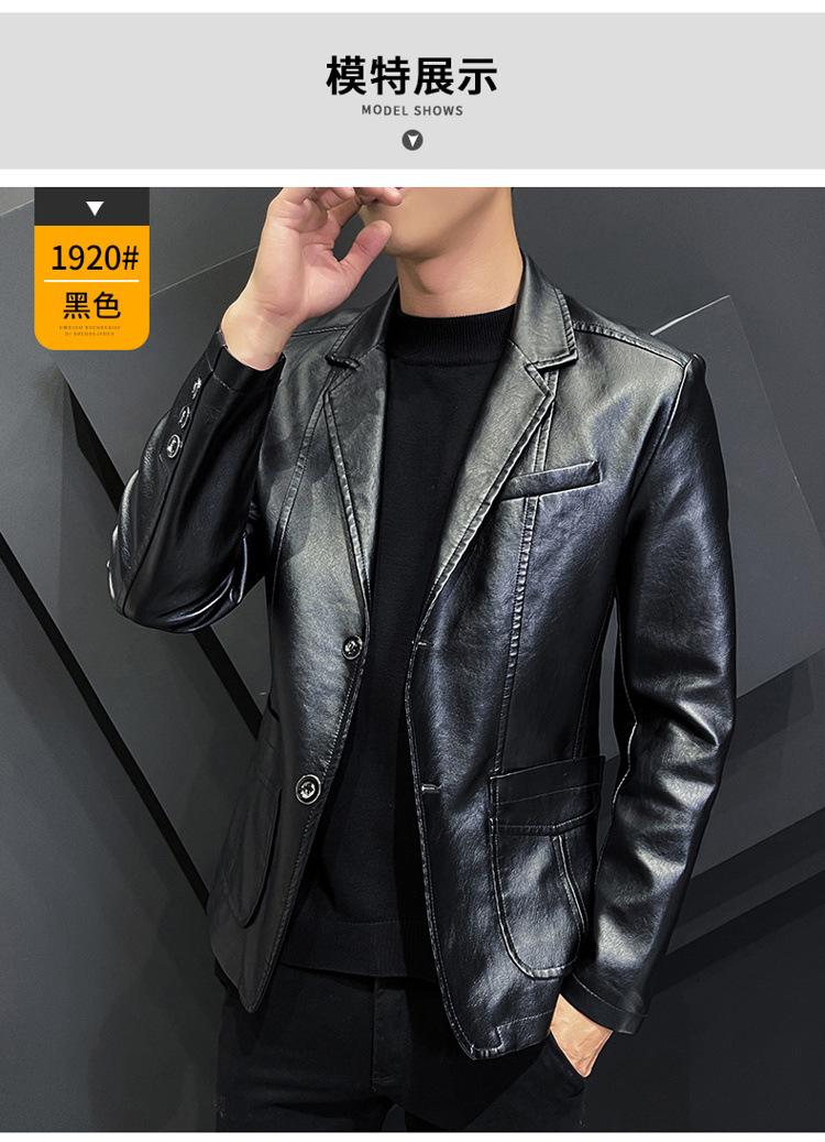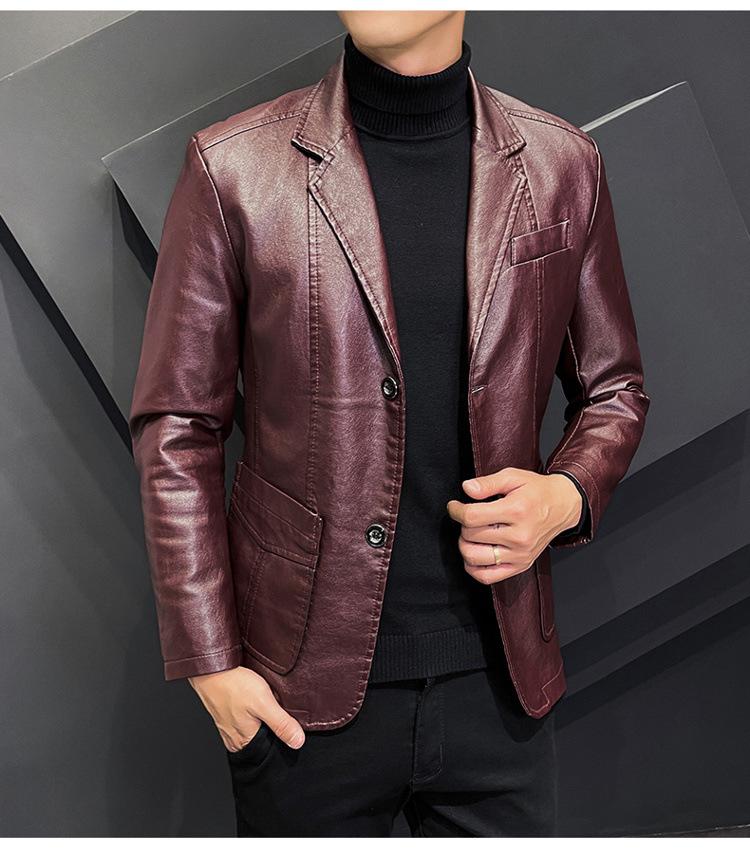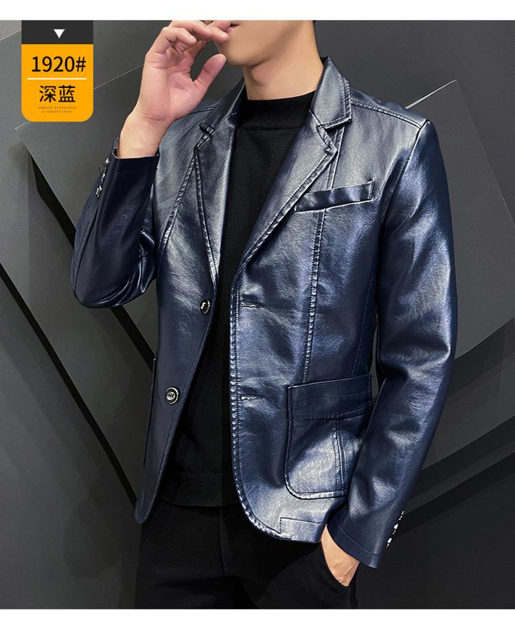 Chaqueta de cuero para hombre, otoño e invierno 2022, estilo coreano, de corte entallado, juvenil, con solapa elegante