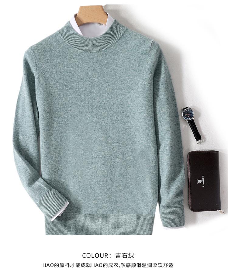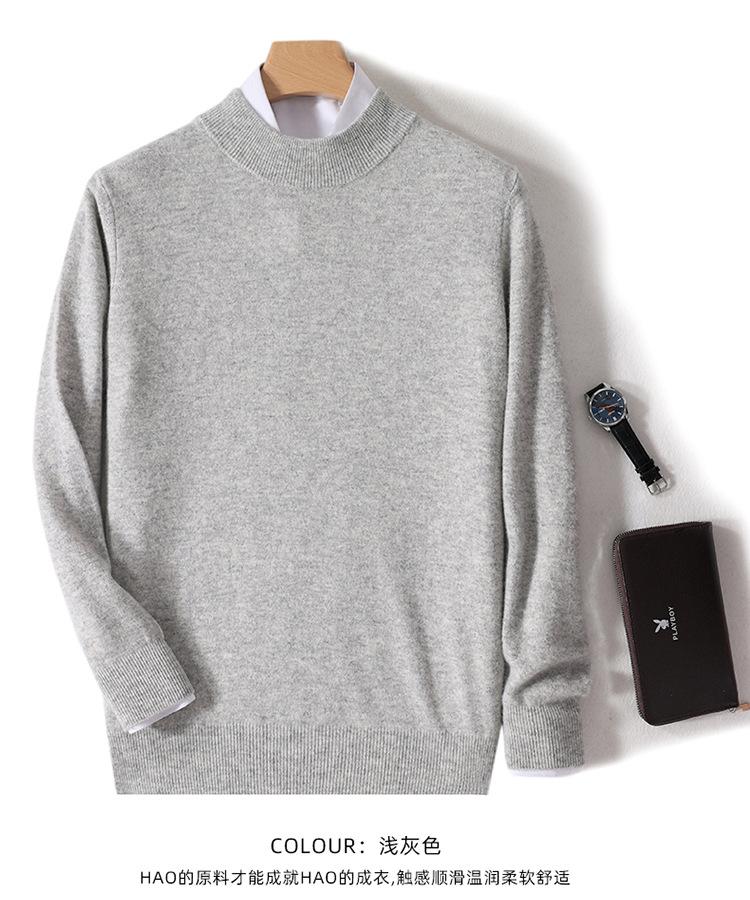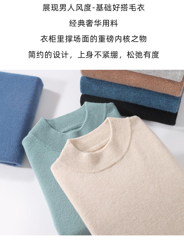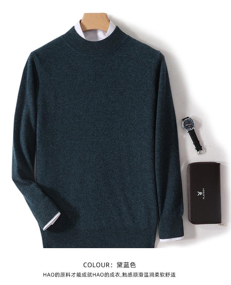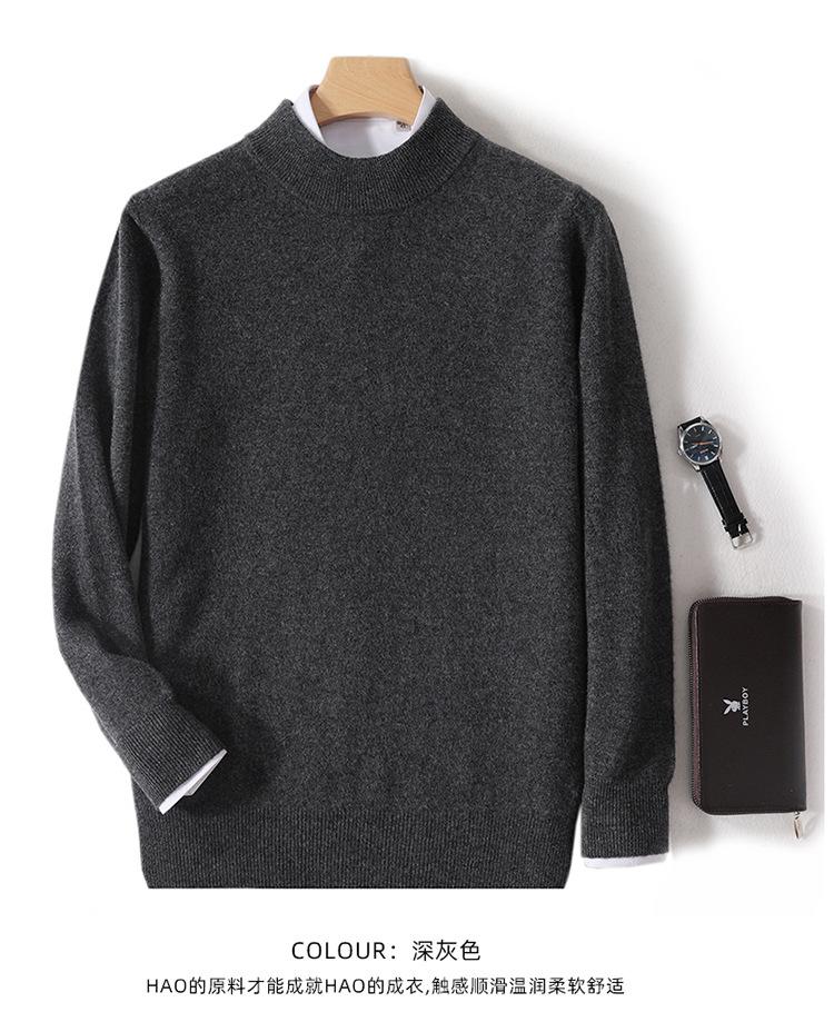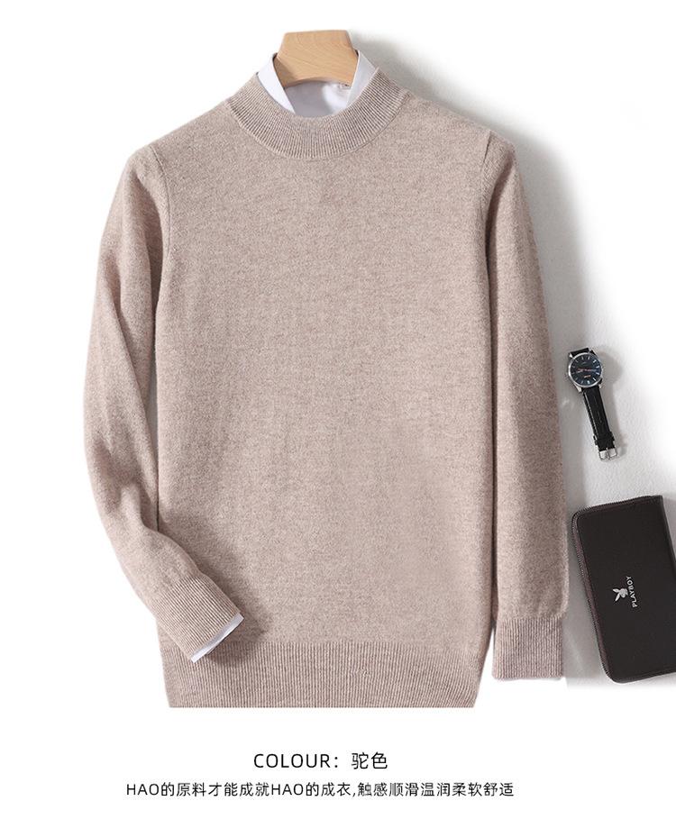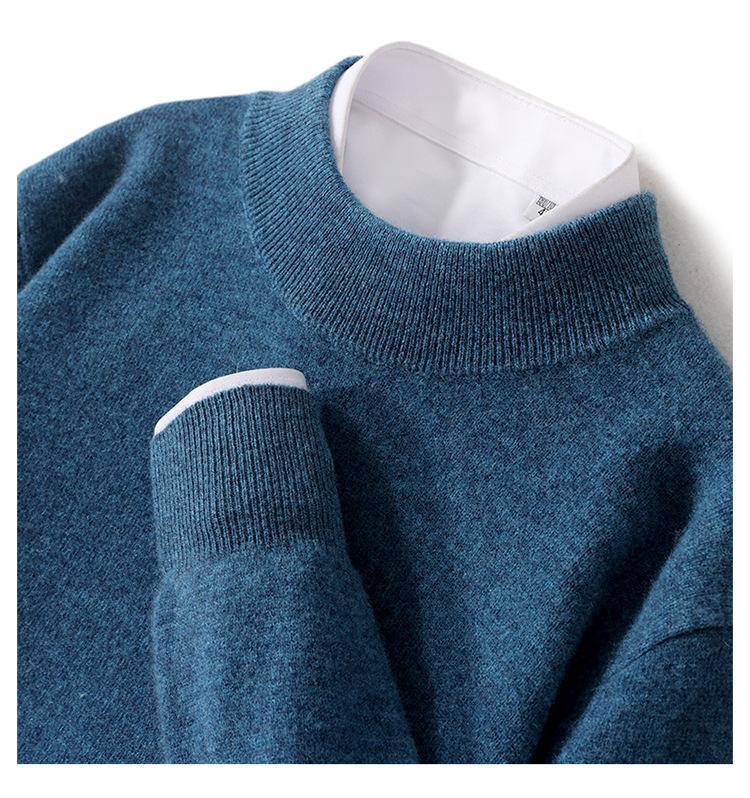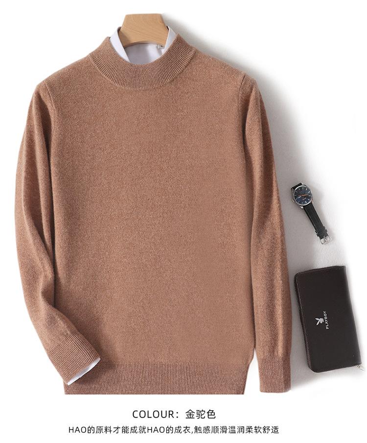 Suéter de cuello alto medio para otoño e invierno, jersey de color sólido para hombre, suéter versátil, camisa informal de negocios de punto de cachemira