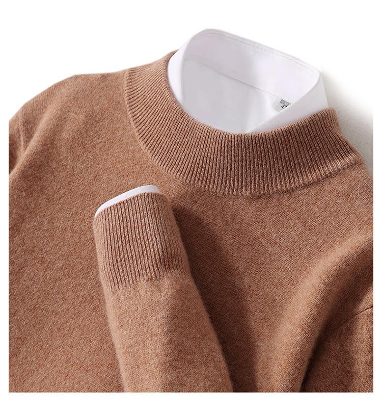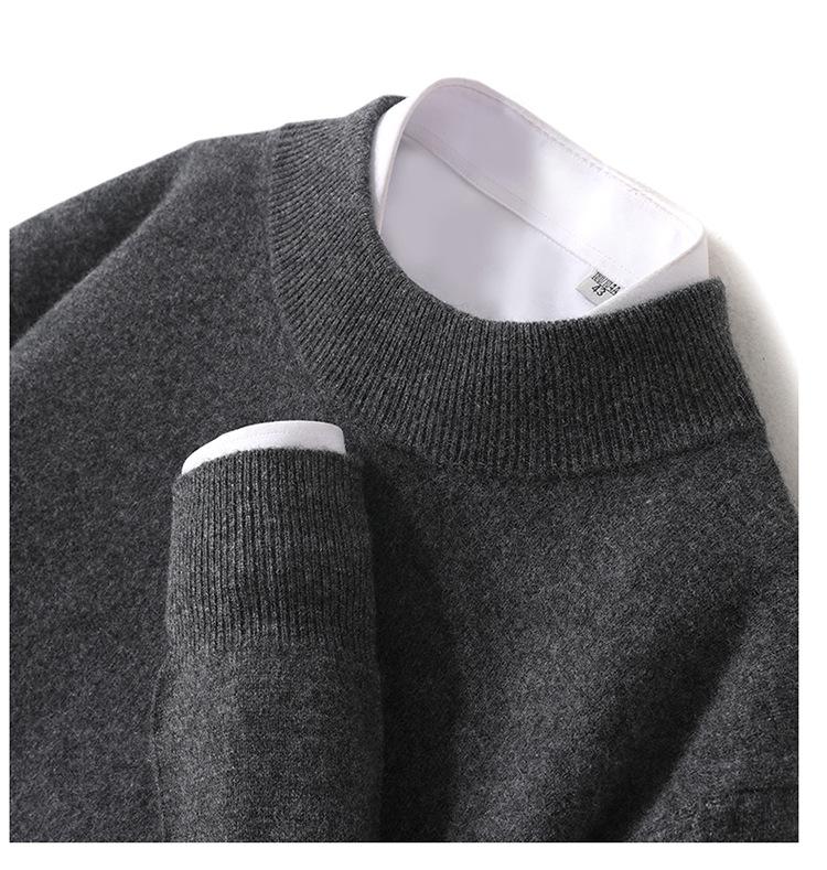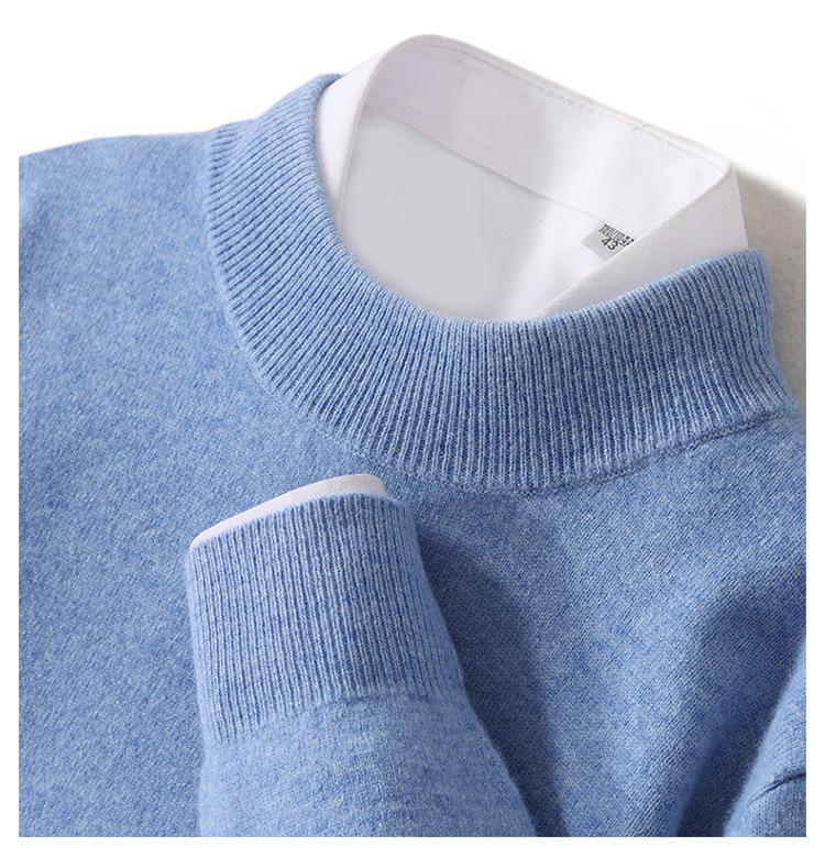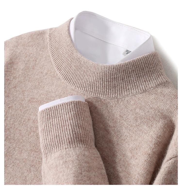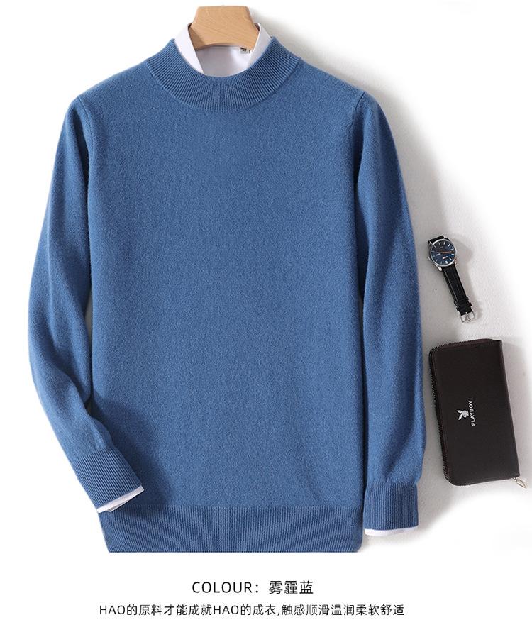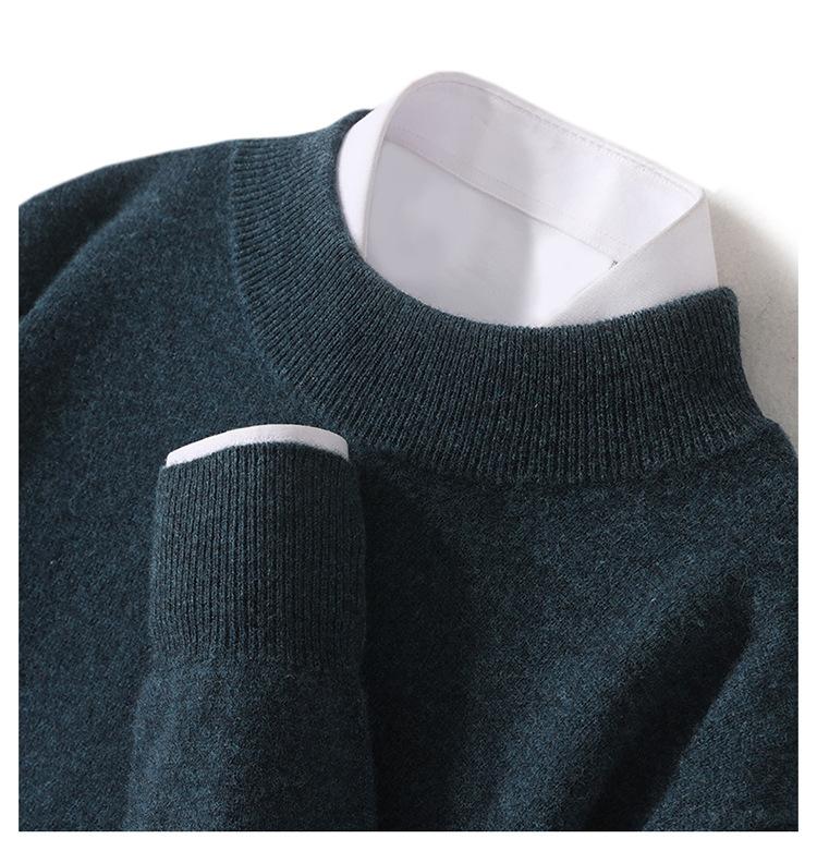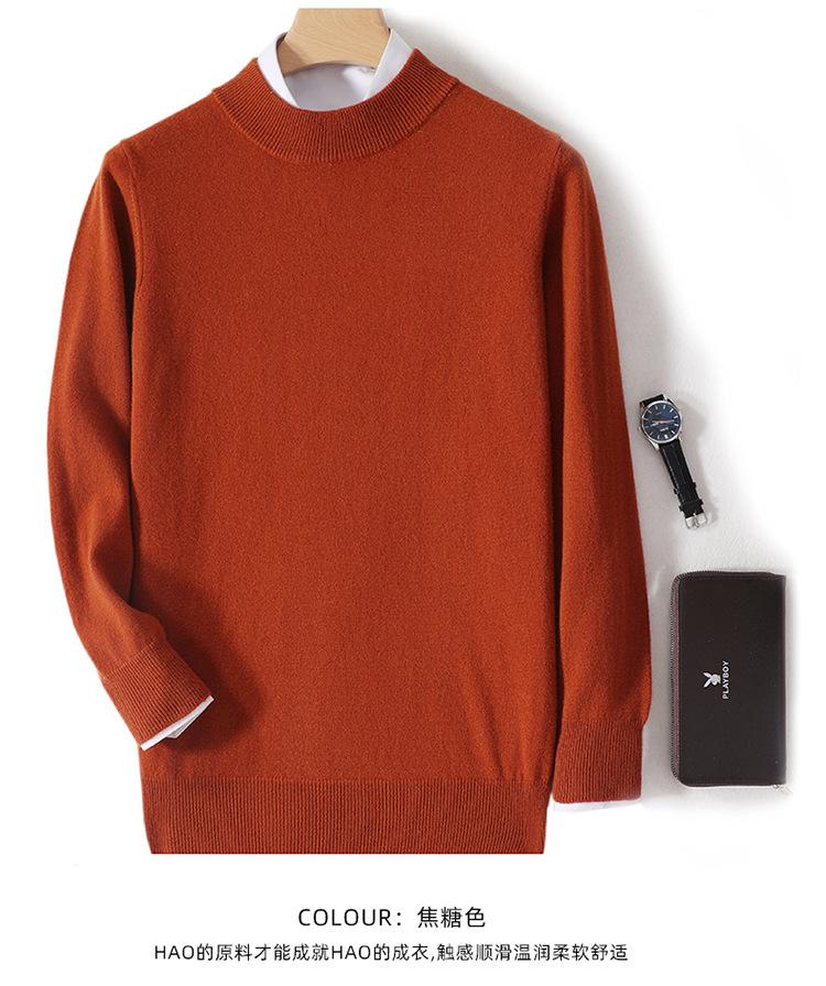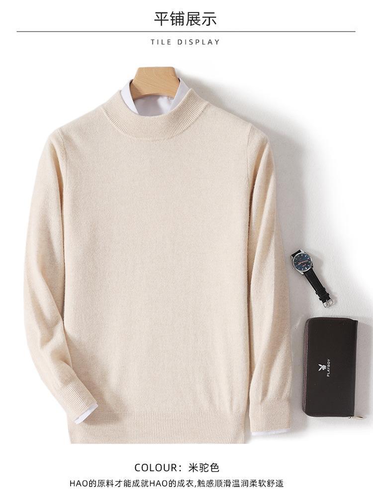 Suéter de cuello alto medio para otoño e invierno, jersey de color sólido para hombre, suéter versátil, camisa informal de negocios de punto de cachemira