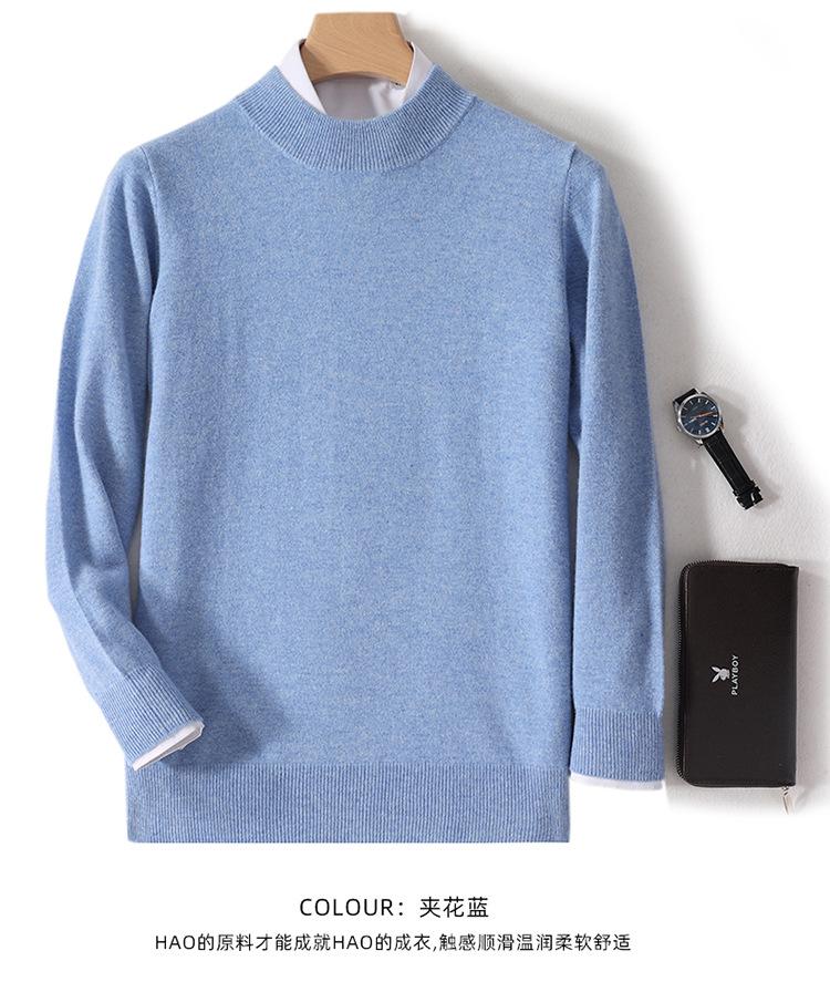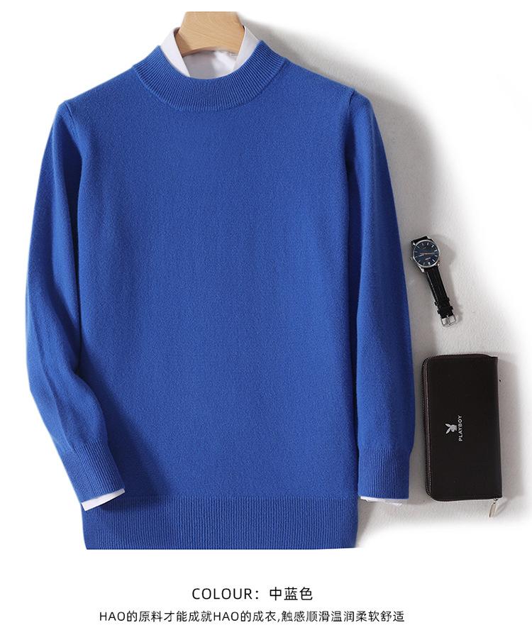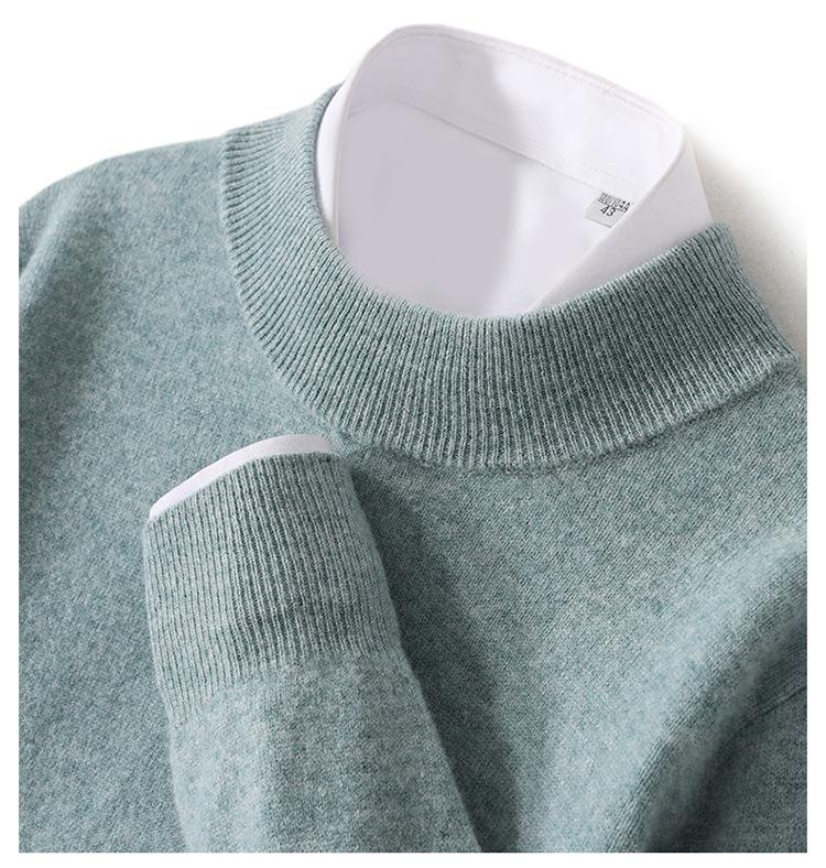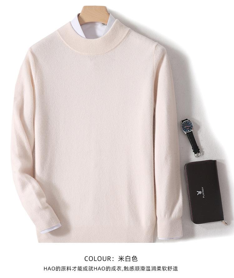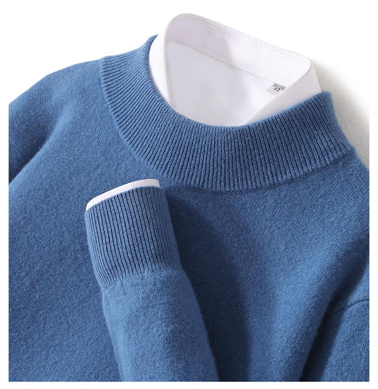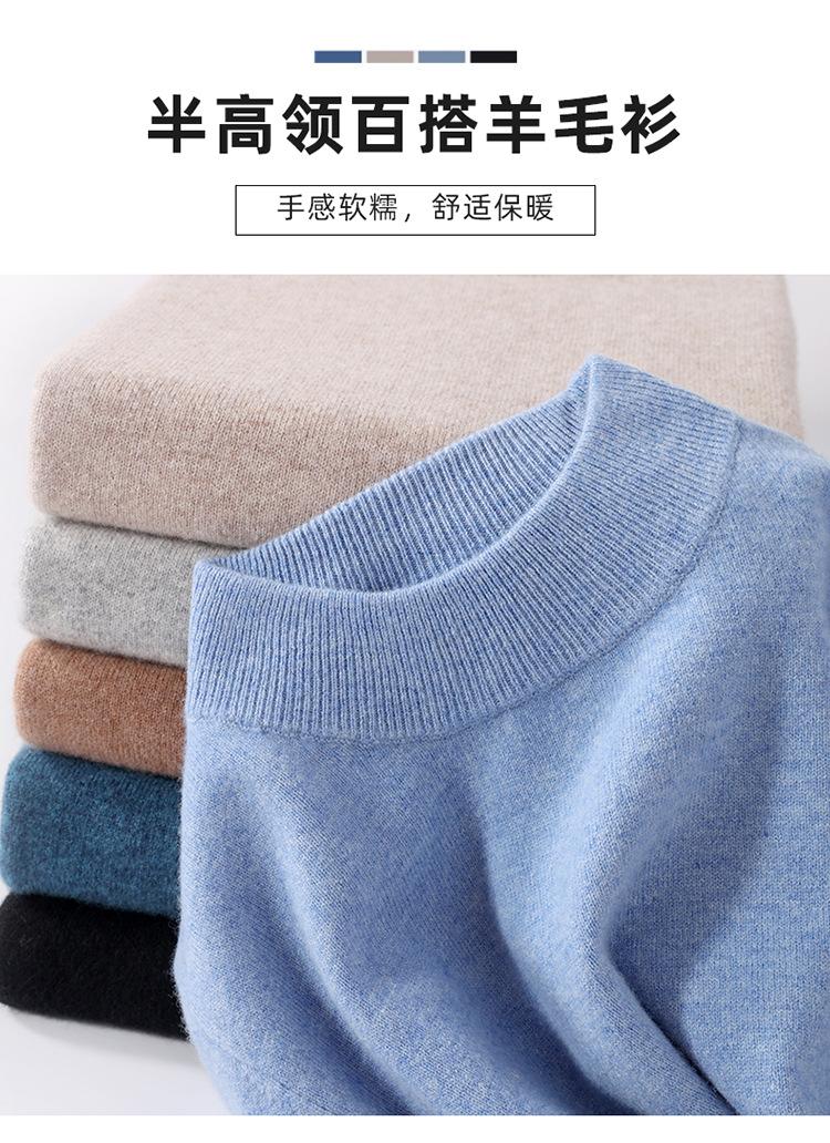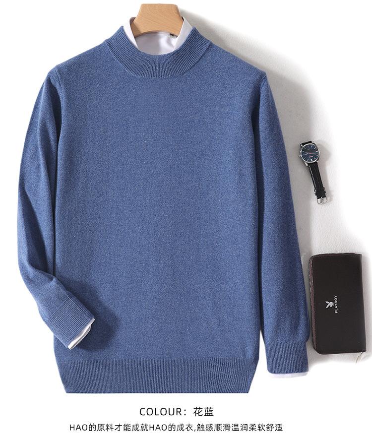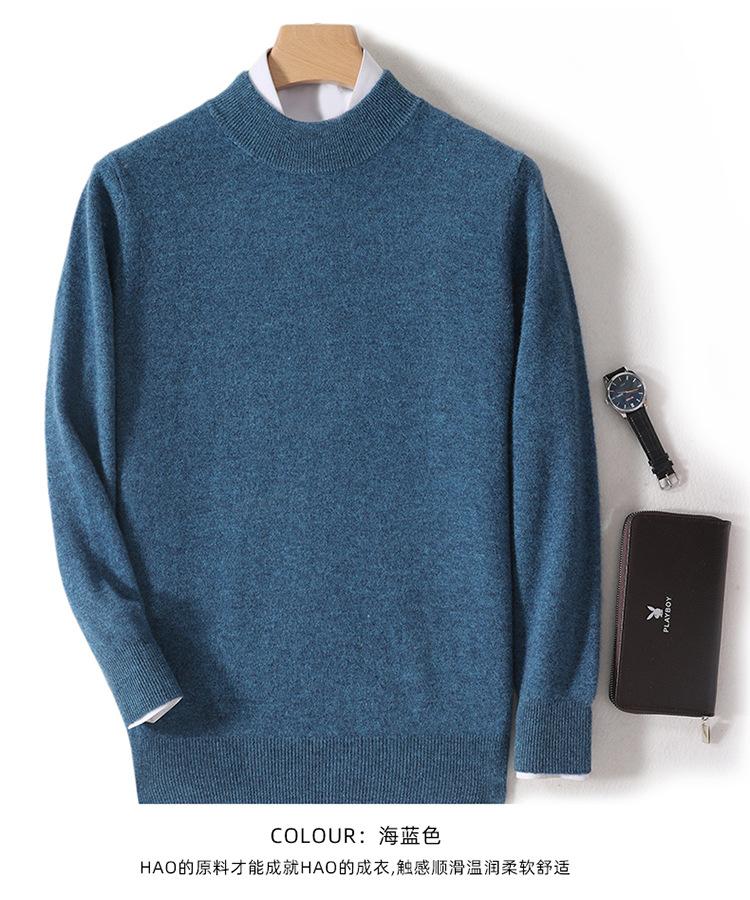 Suéter de cuello alto medio para otoño e invierno, jersey de color sólido para hombre, suéter versátil, camisa informal de negocios de punto de cachemira