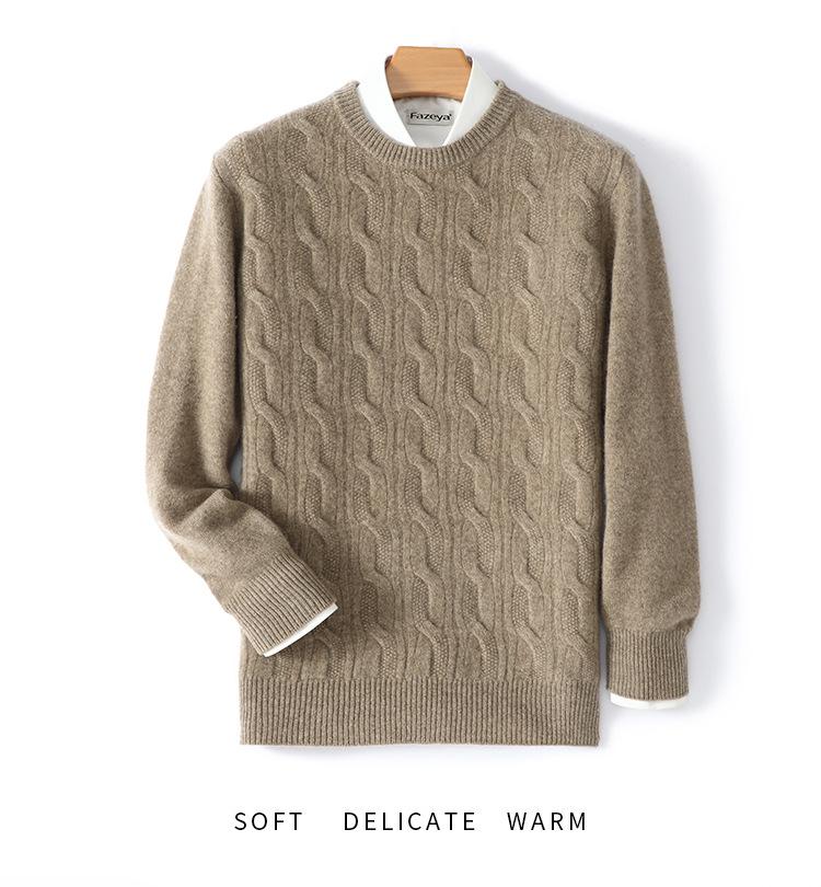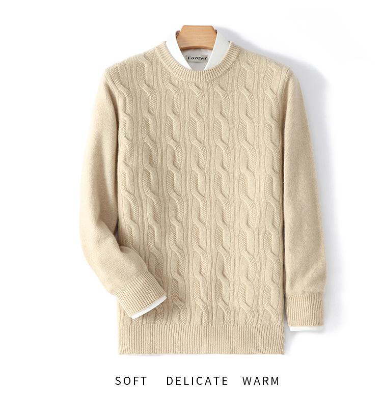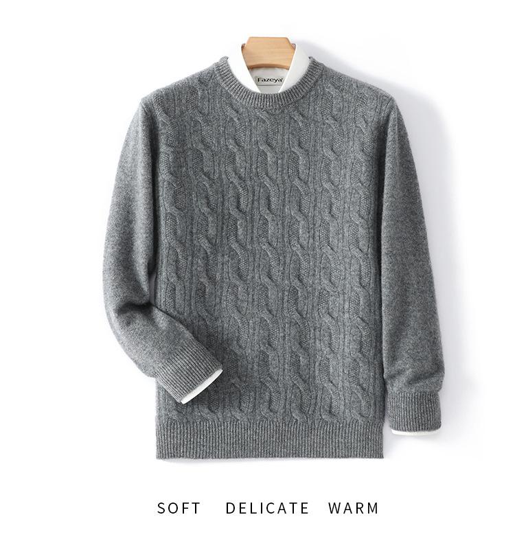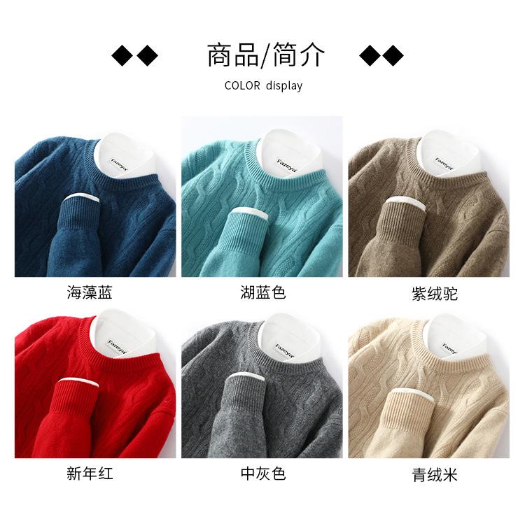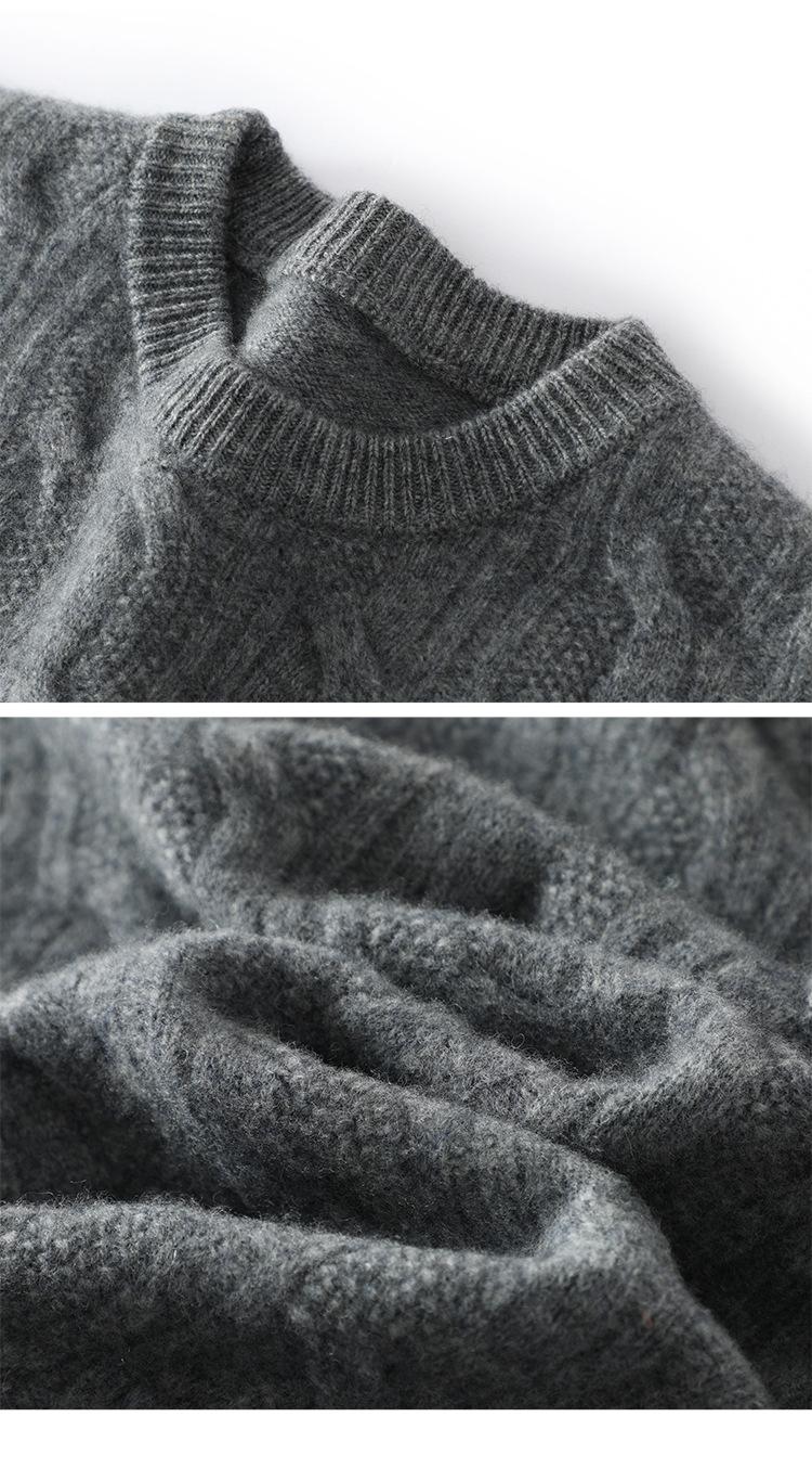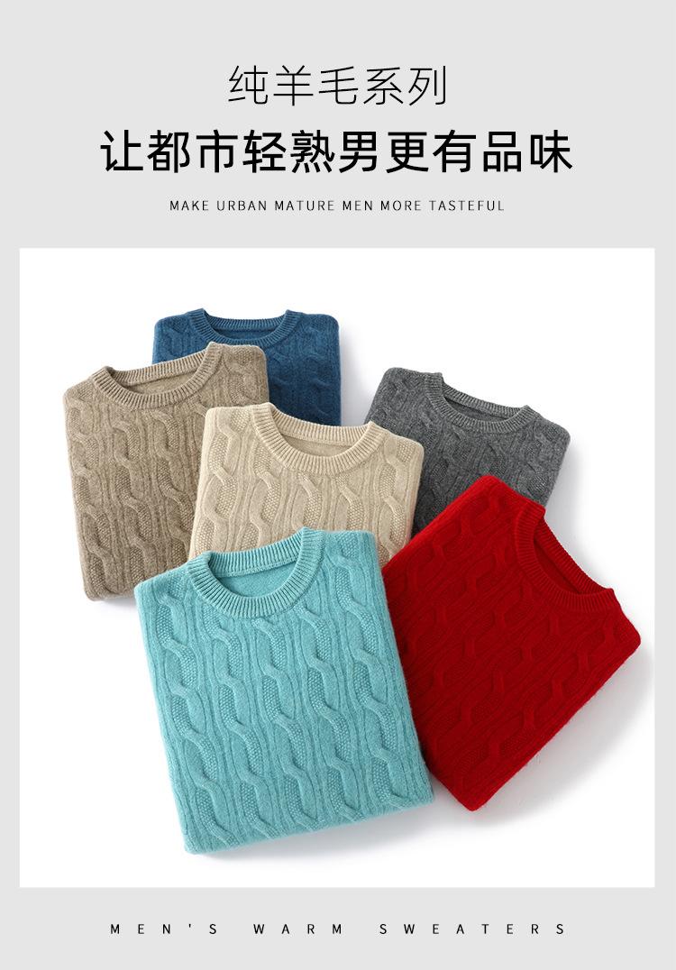 Suéter Nuevo de Otoño e Invierno de Lana Pura 100% para Hombre, Cuello Redondo, Suéter Grueso Jacquard, Camisa Base Tejida de Cachemira Business Casual
