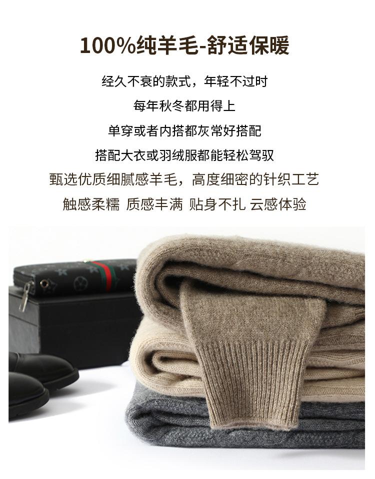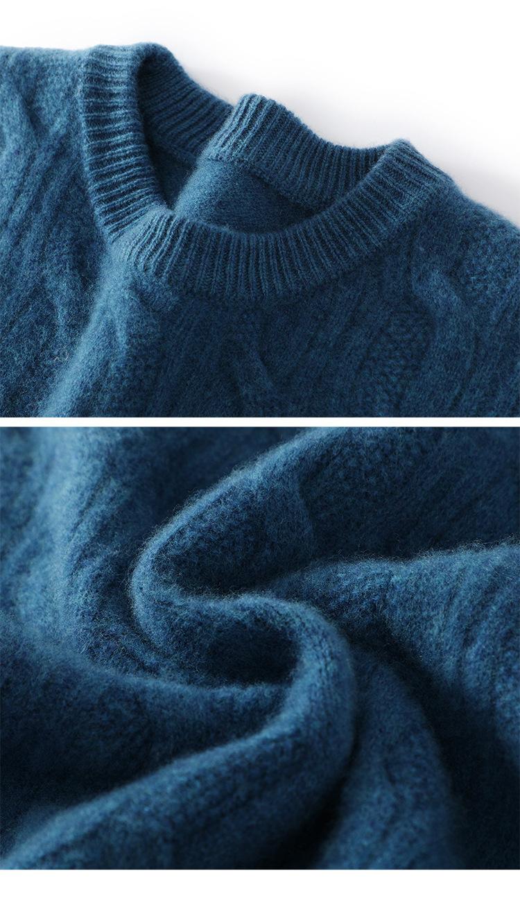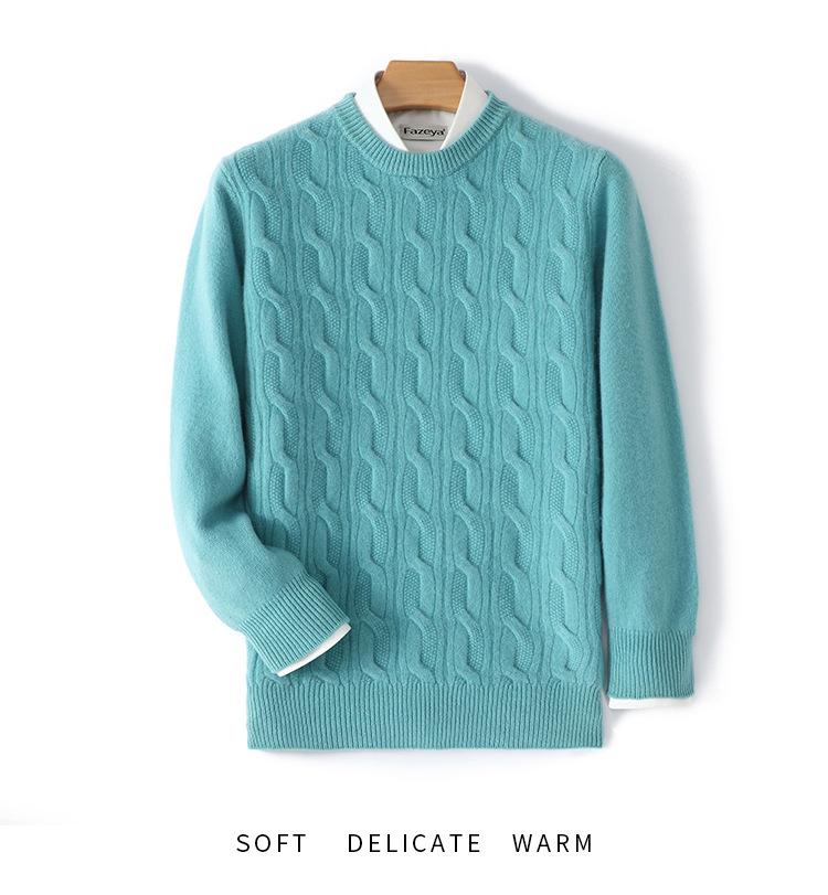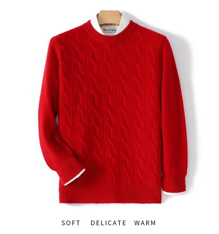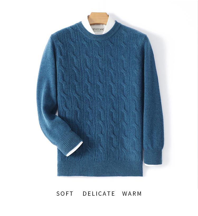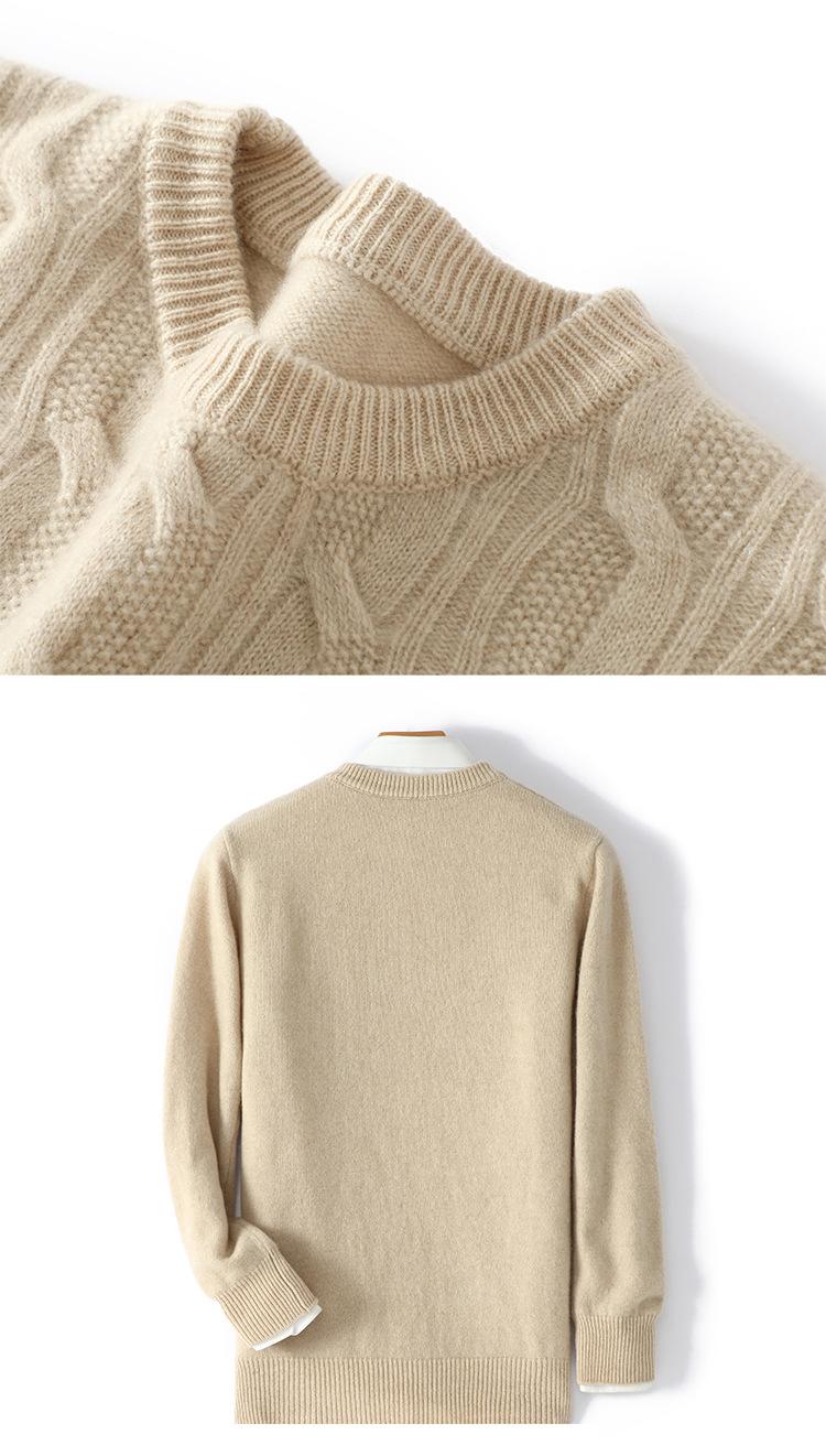 Suéter Nuevo de Otoño e Invierno de Lana Pura 100% para Hombre, Cuello Redondo, Suéter Grueso Jacquard, Camisa Base Tejida de Cachemira Business Casual