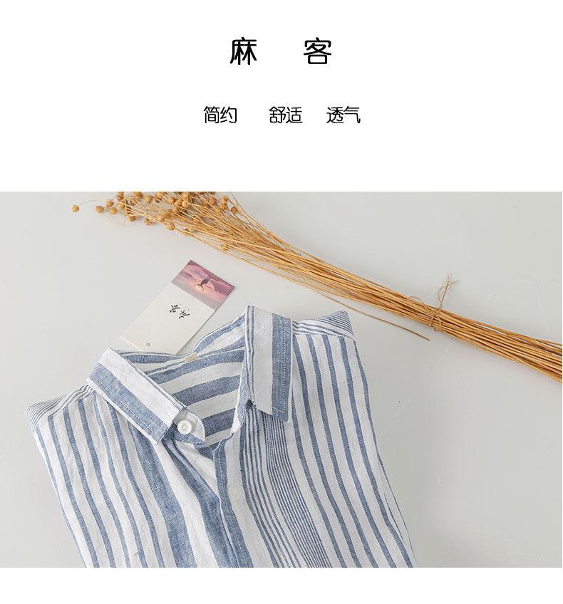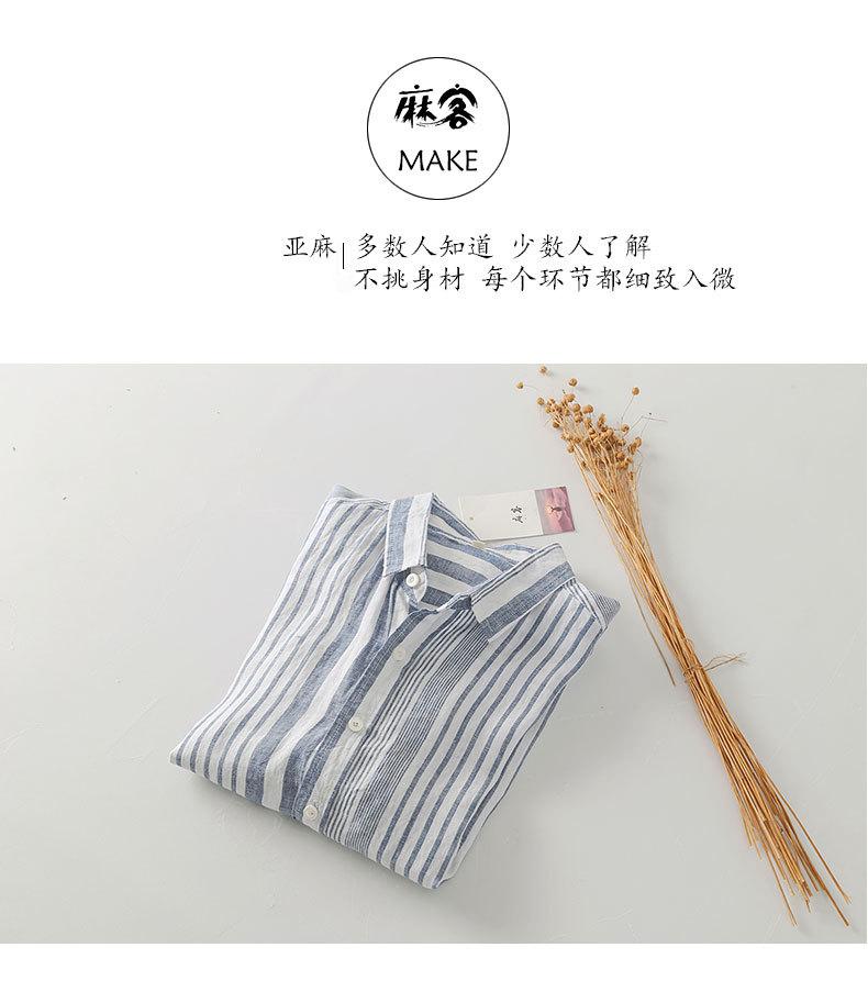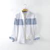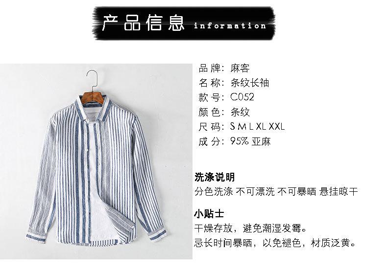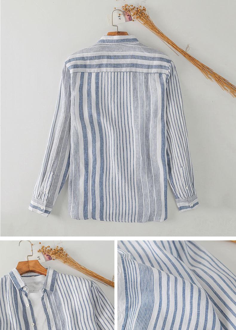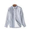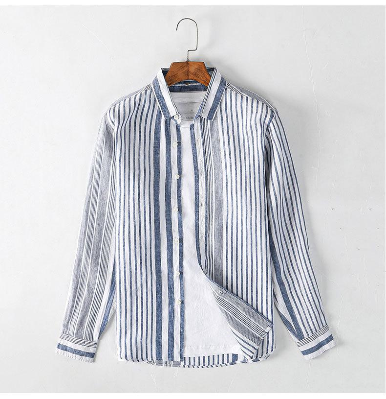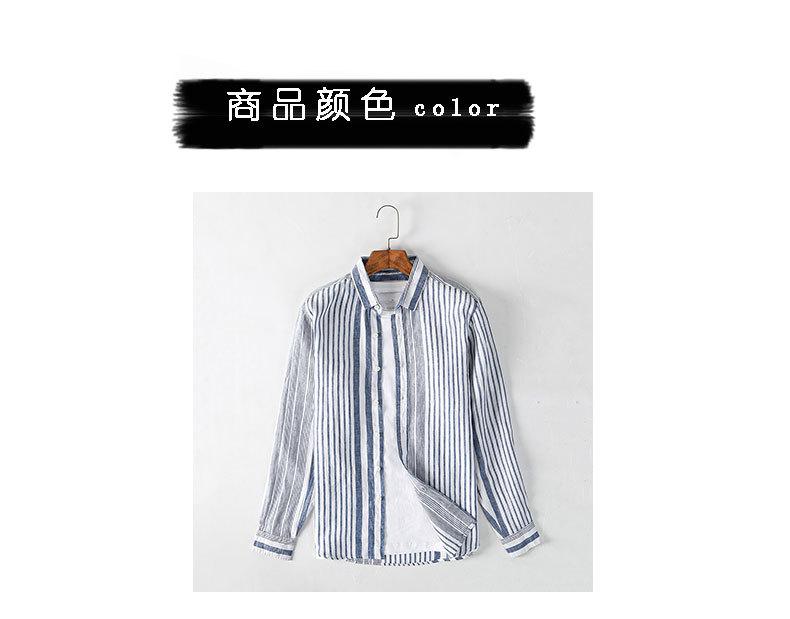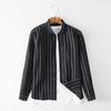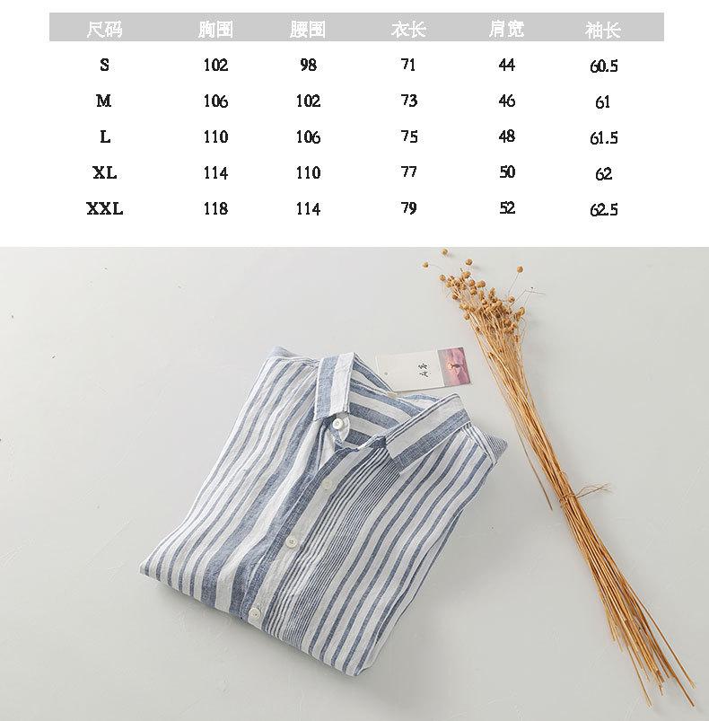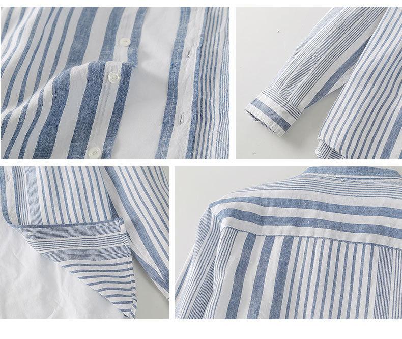 Ropa de Hombre Nueva de Lino para Primavera y Otoño Refrescante Camisa de Lino de Manga Larga a Rayas Cárdigan con Solapa C052