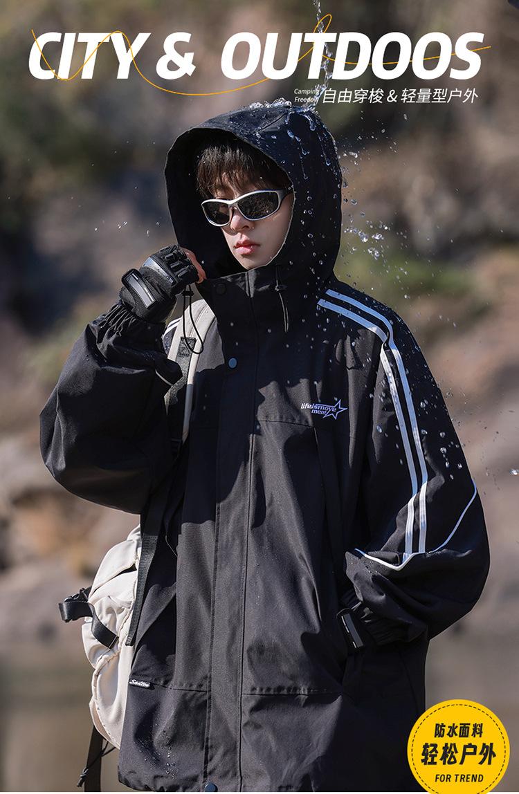 Chaqueta con capucha para hombre de Jack para primavera y otoño, chaqueta impermeable casual versátil de estilo americano para senderismo