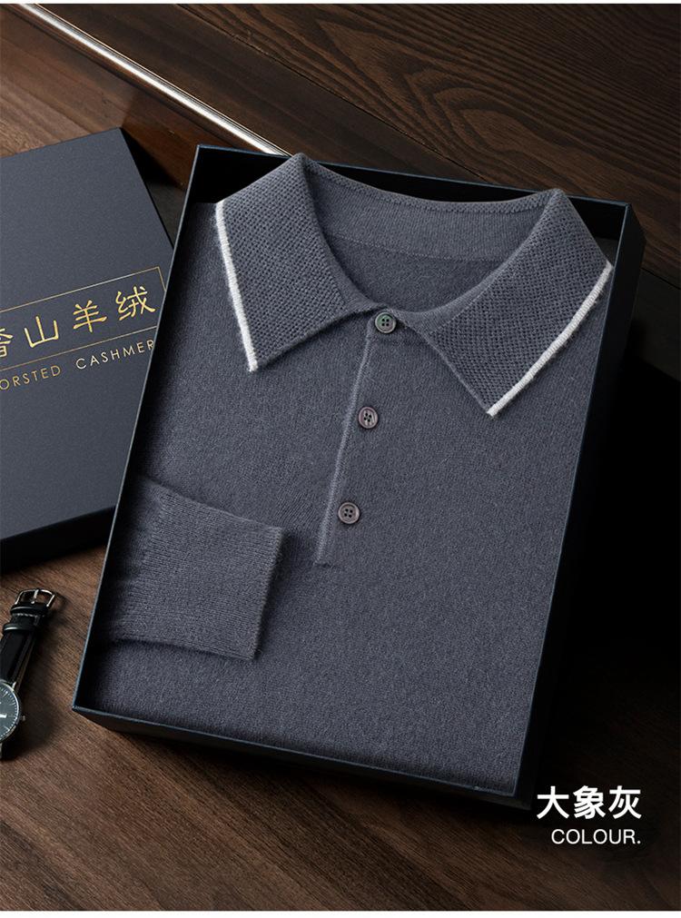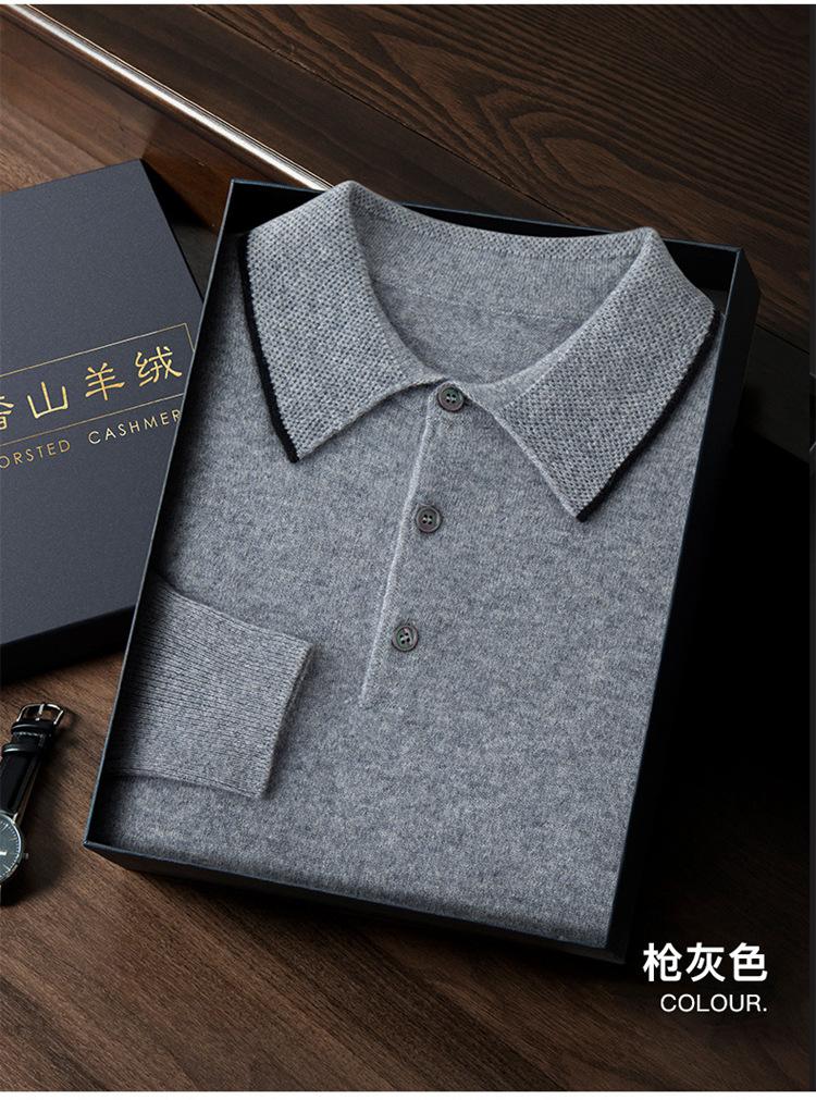 Suéter de cachemira de montaña nuevo para otoño e invierno, informal, de negocios, con cuello de polo para hombre, suéter con cuello de camisa, suéter tipo pulóver