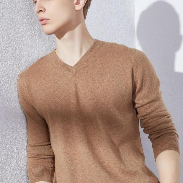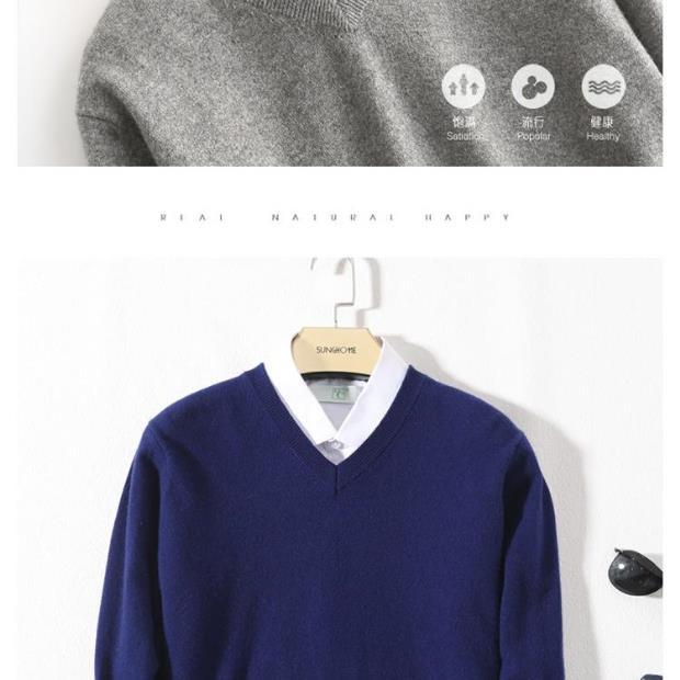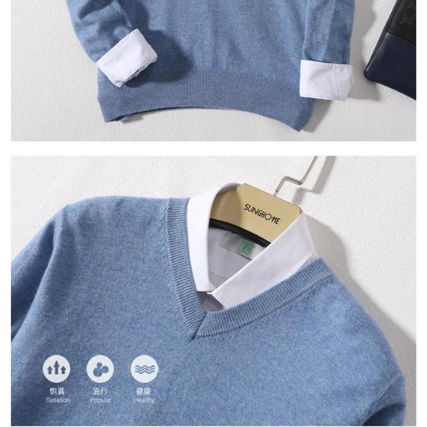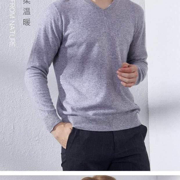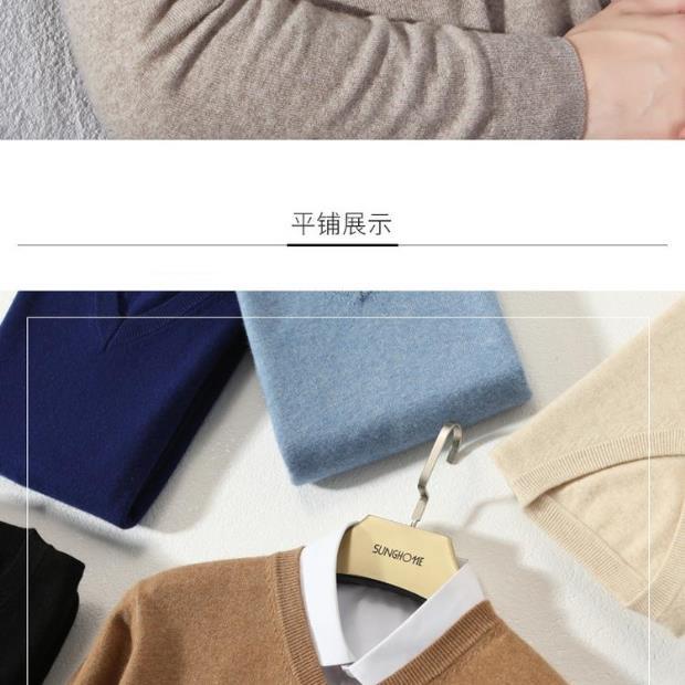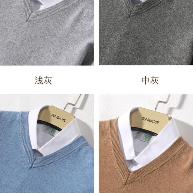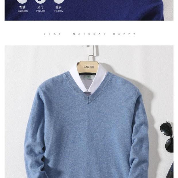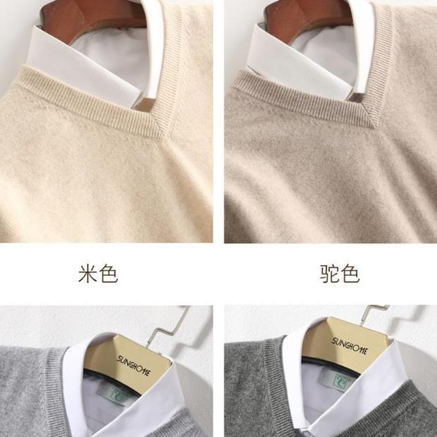 Suéter de Cachemira para Hombre Otoño e Invierno Suéter Pulóver para Hombre Business Casual Base Cuello Redondo en V Suéter de Lana Tejido