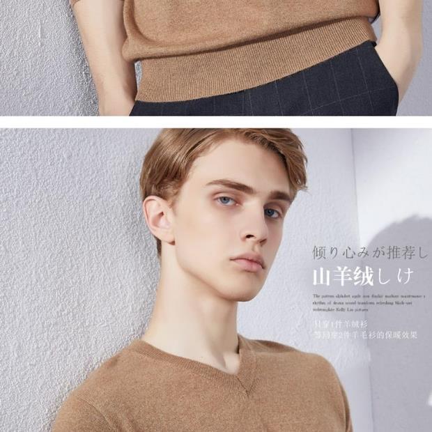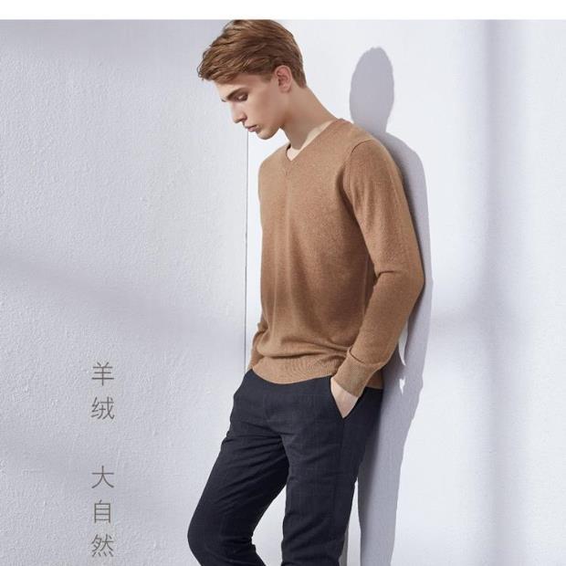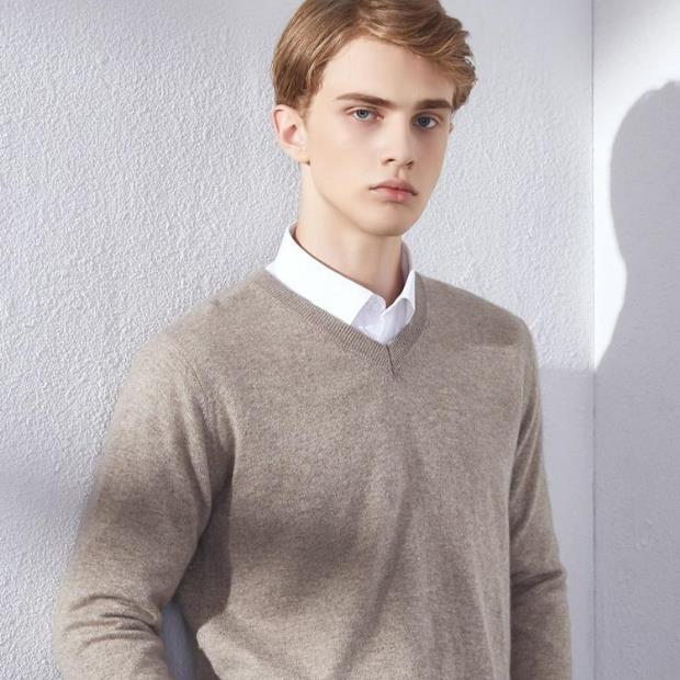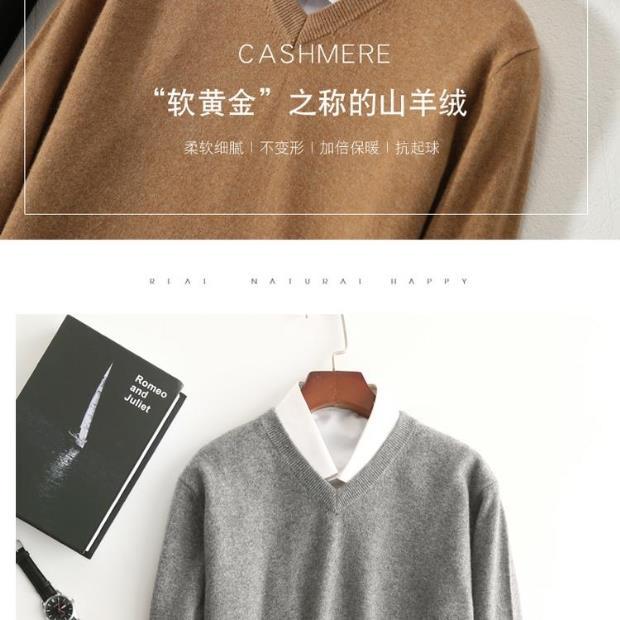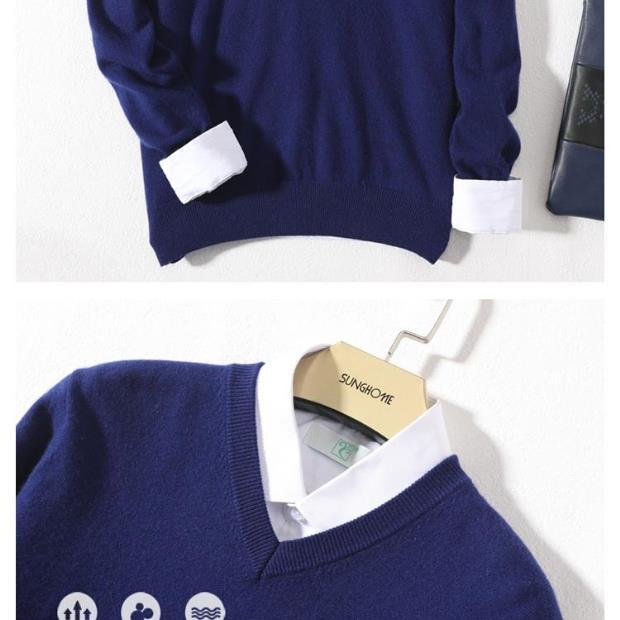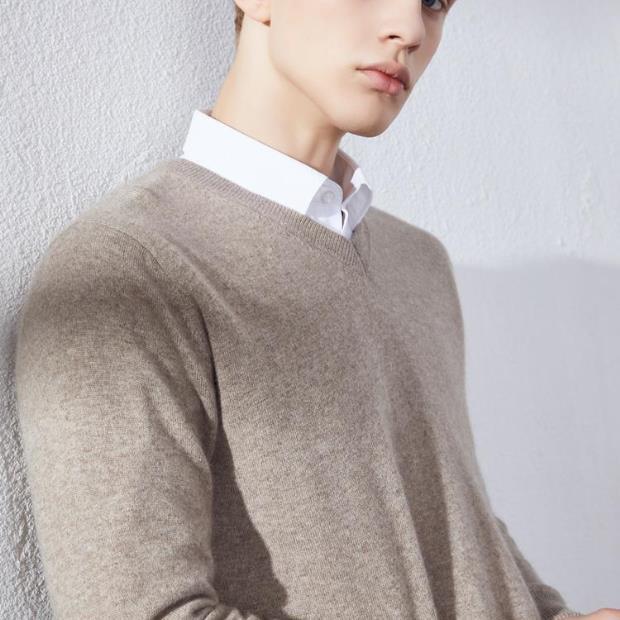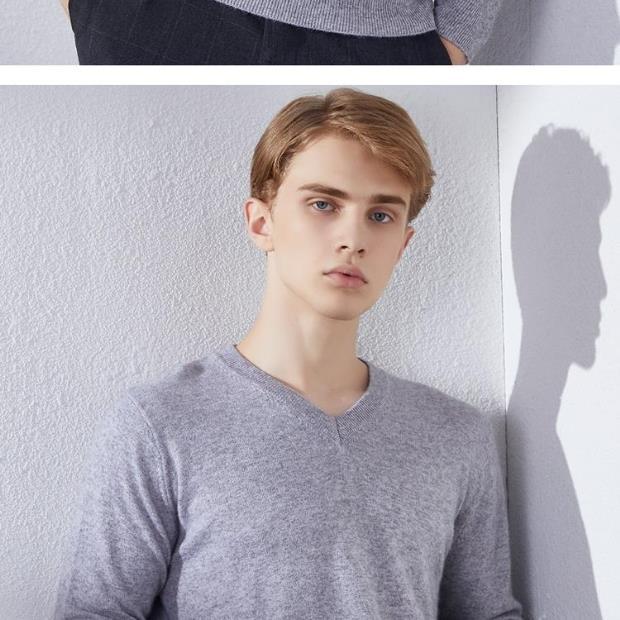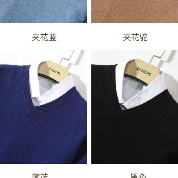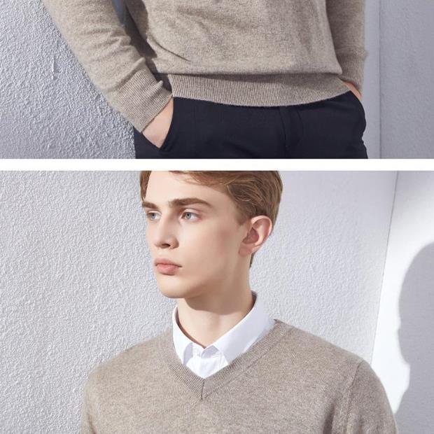 Suéter de Cachemira para Hombre Otoño e Invierno Suéter Pulóver para Hombre Business Casual Base Cuello Redondo en V Suéter de Lana Tejido