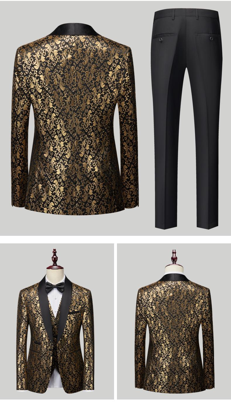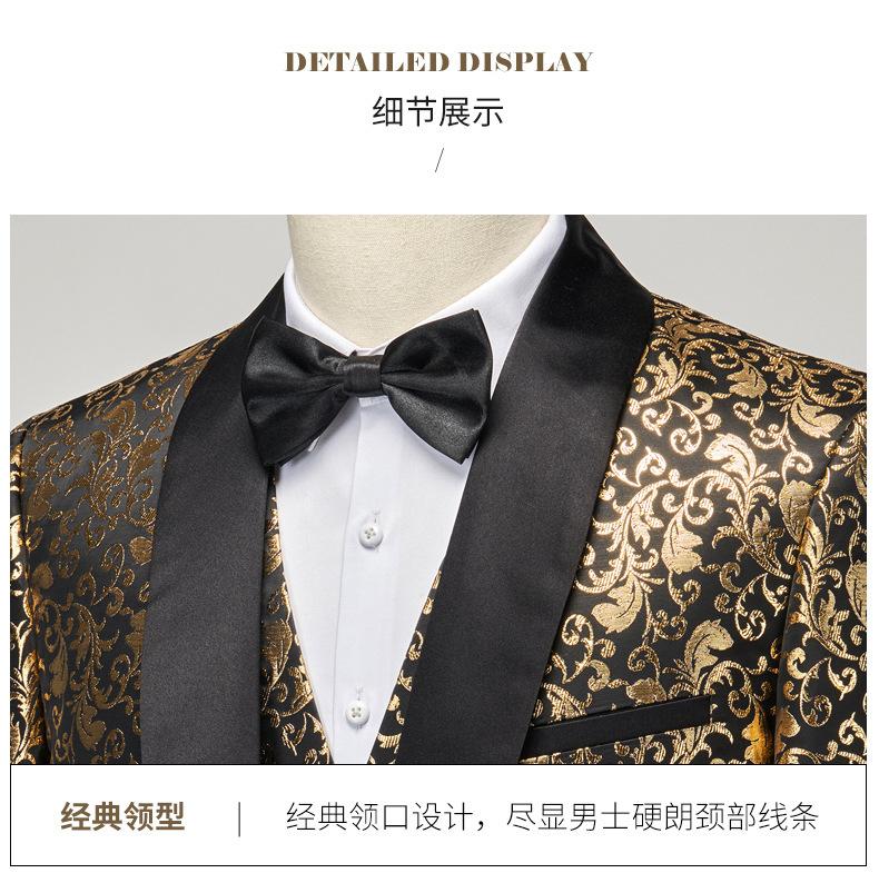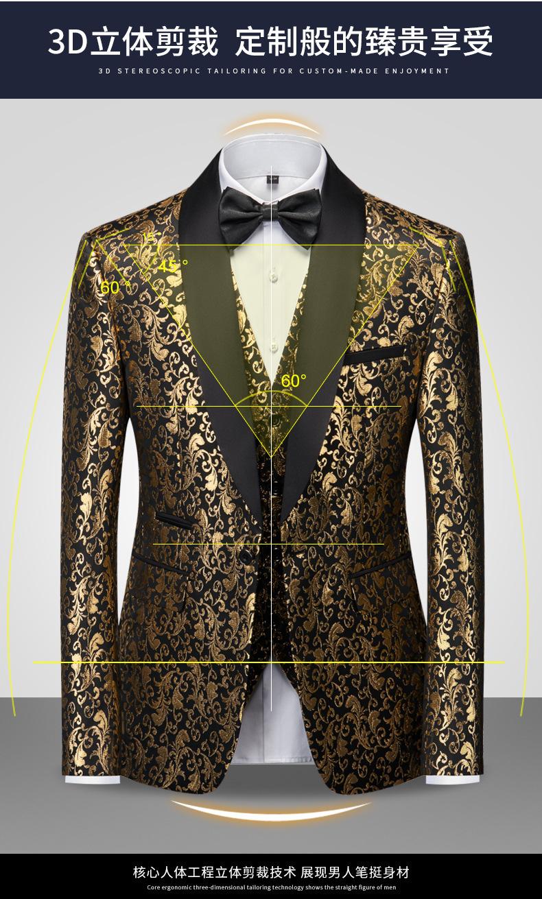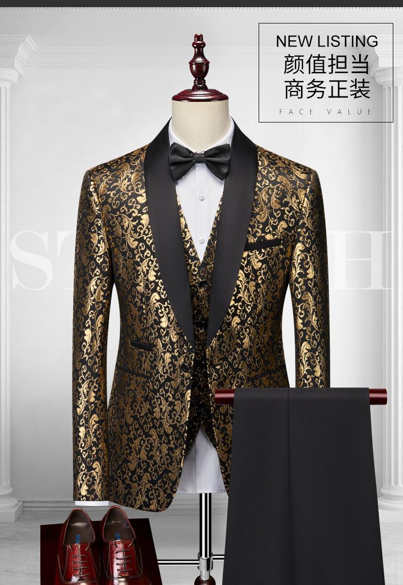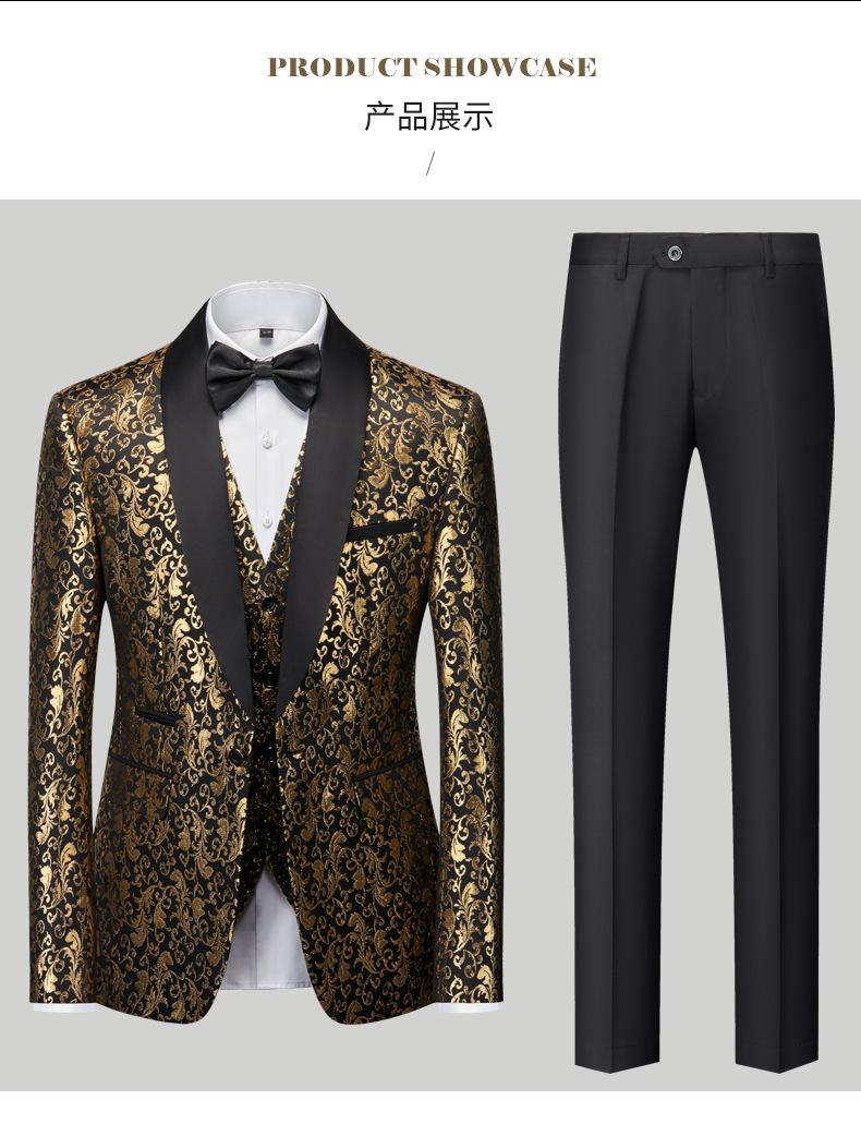 Traje de hombre de estilo británico transfronterizo, casual de negocios, versión coreana, vestido formal estampado en oro, traje de padrino de boda, traje de tres piezas