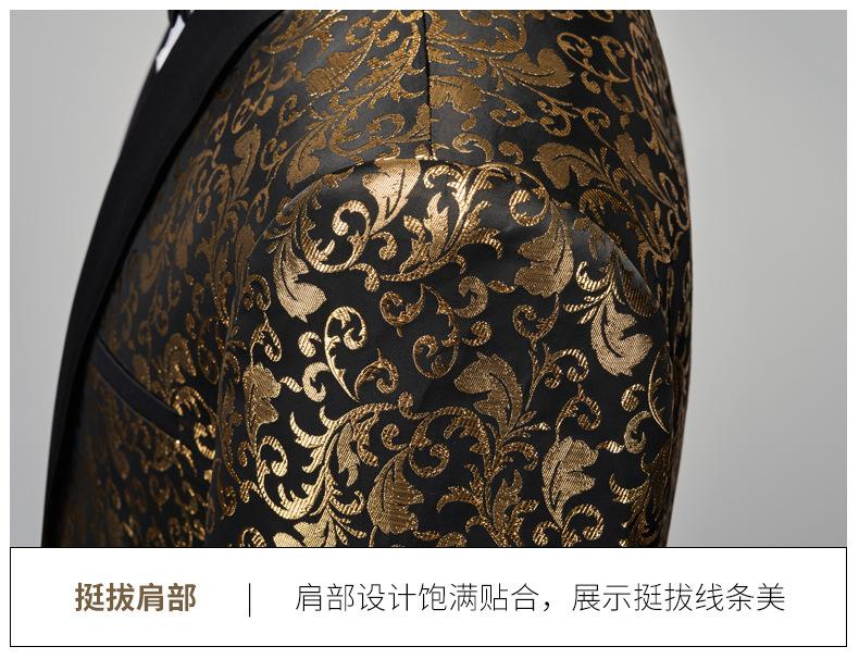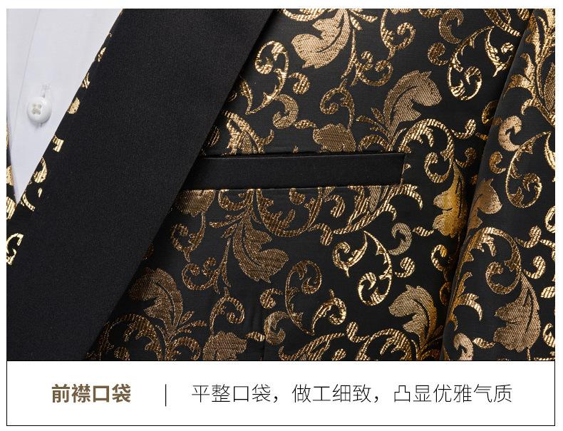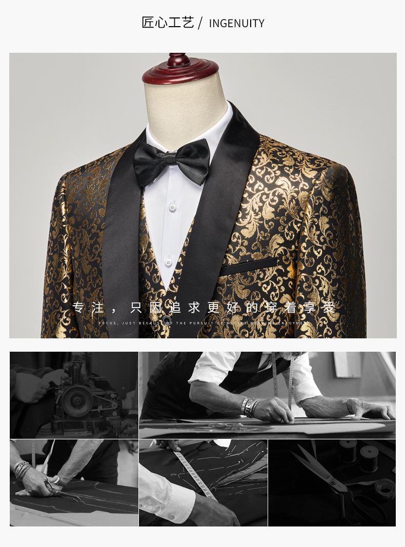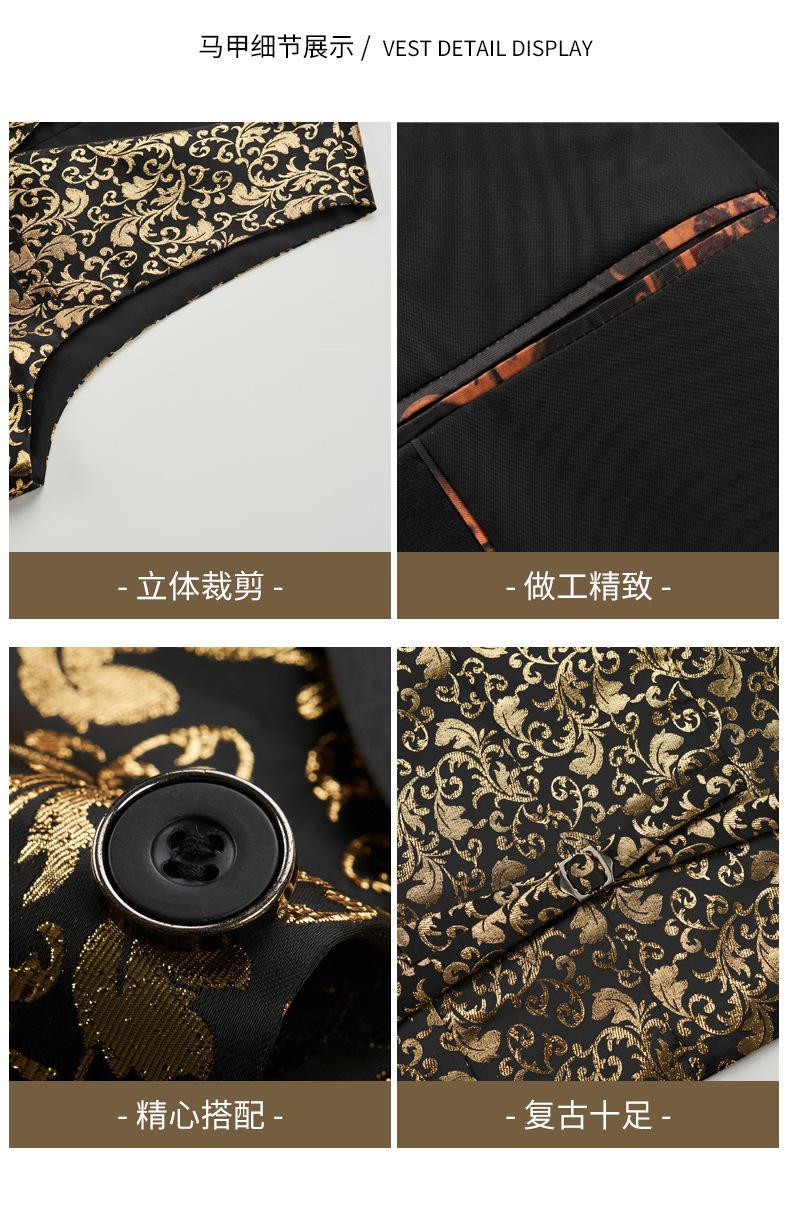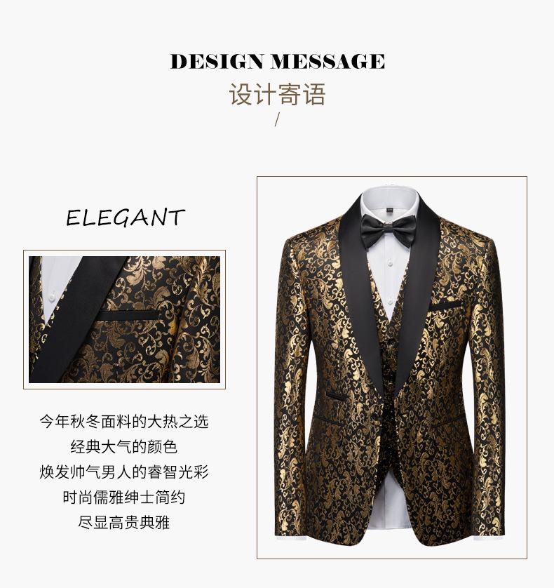 Traje de hombre de estilo británico transfronterizo, casual de negocios, versión coreana, vestido formal estampado en oro, traje de padrino de boda, traje de tres piezas