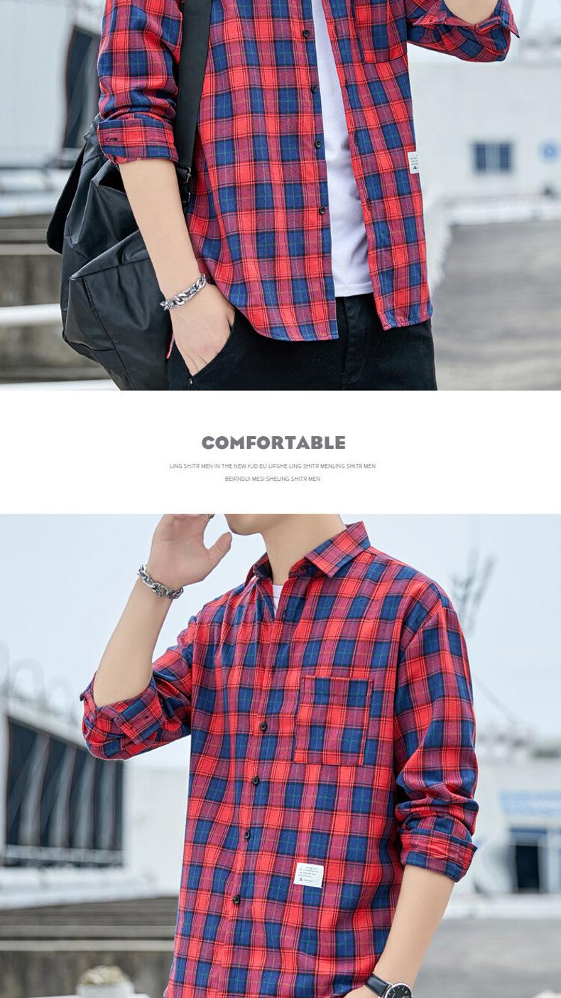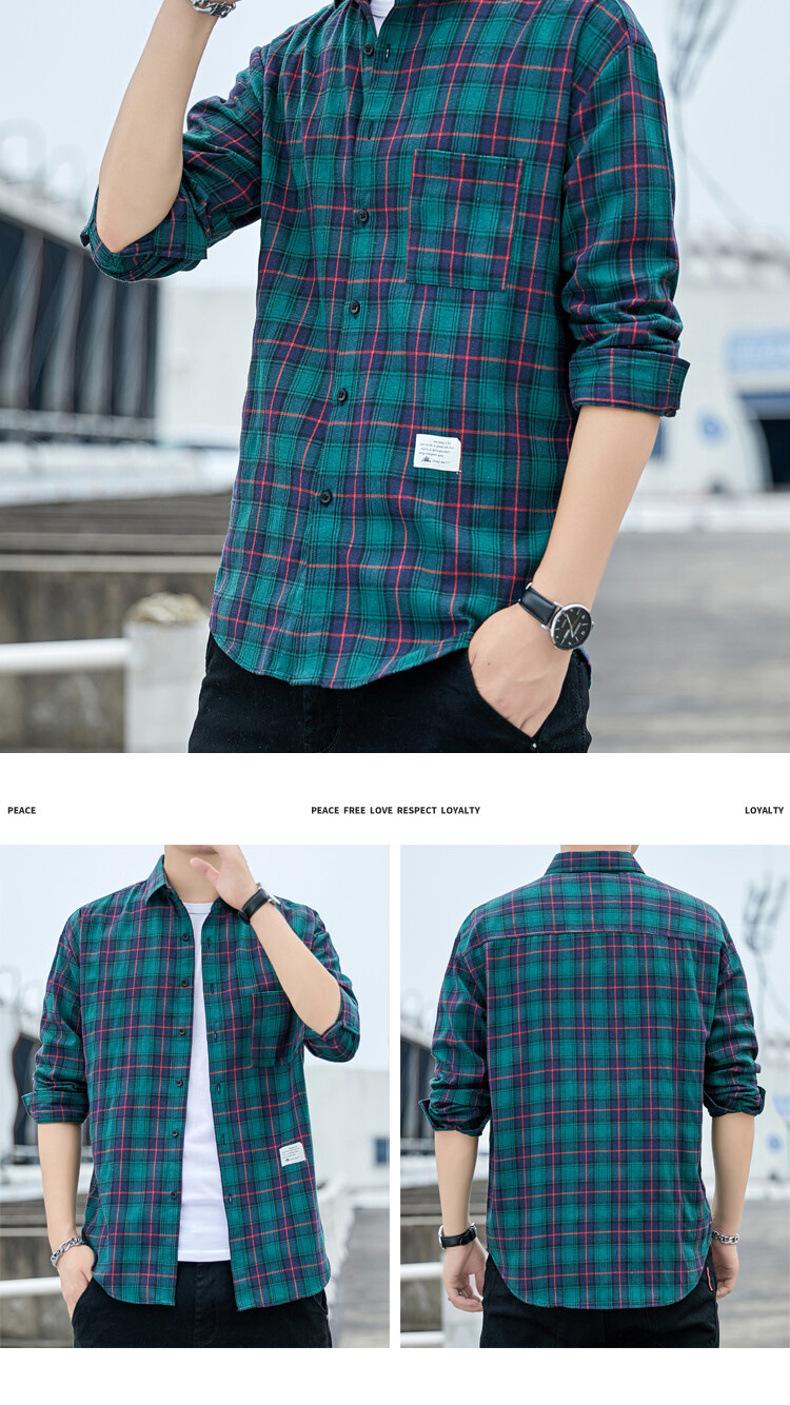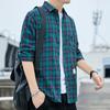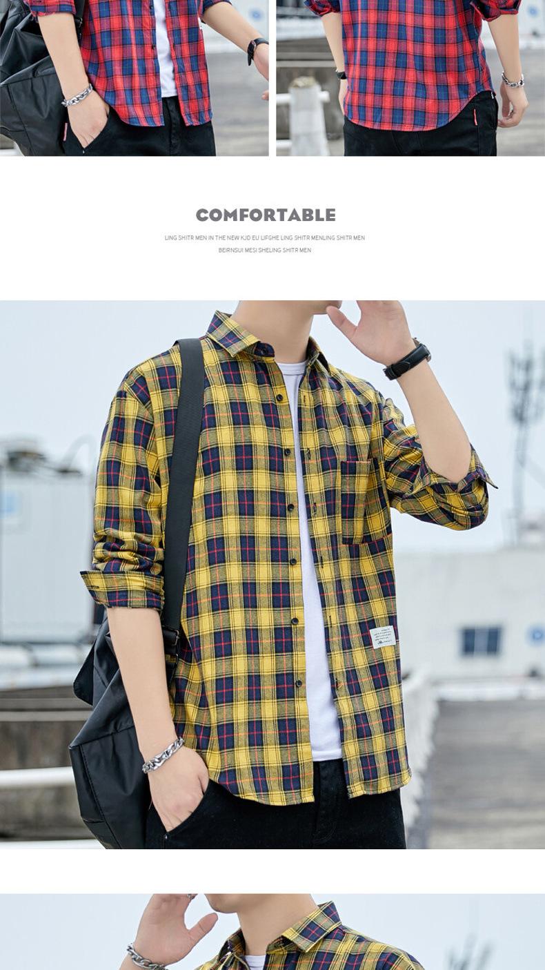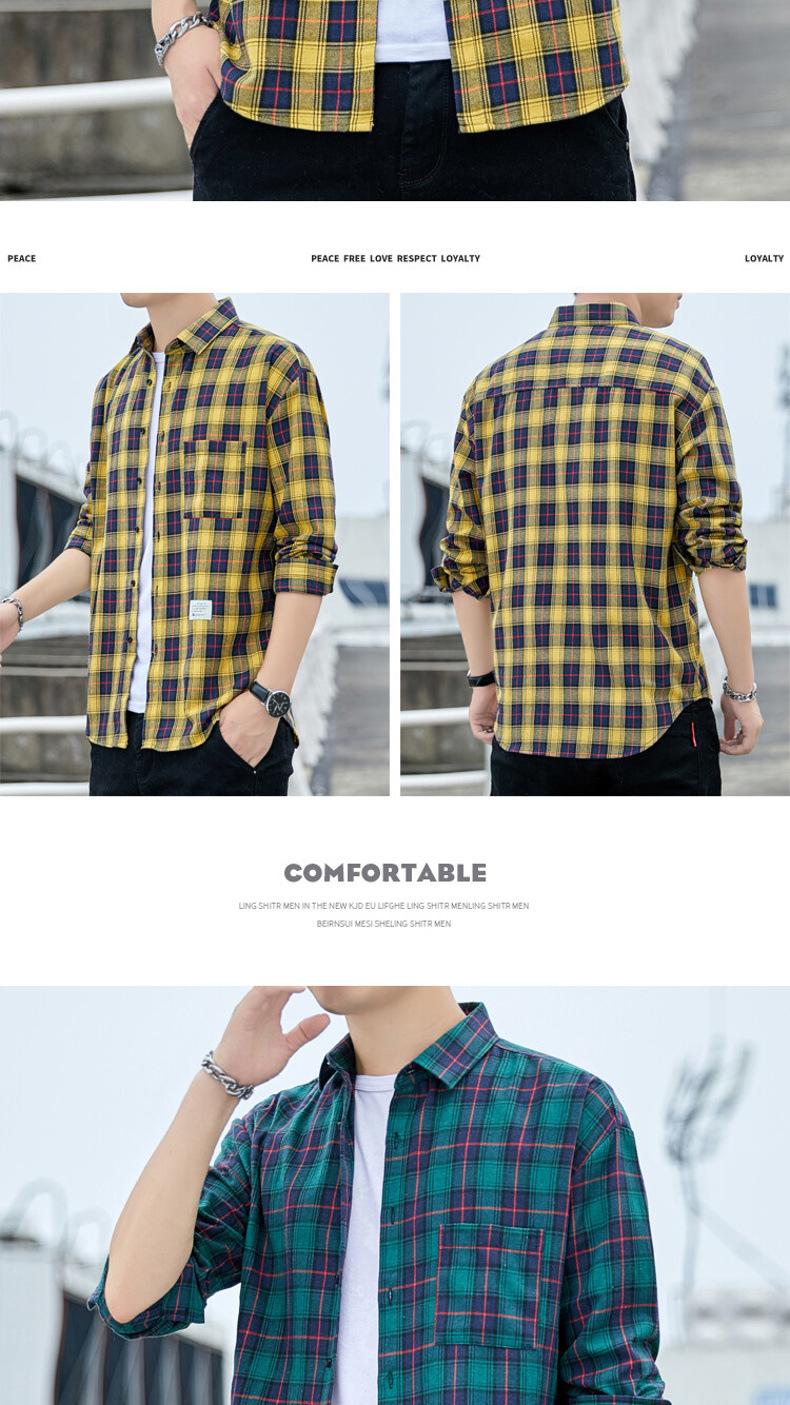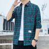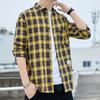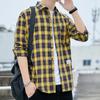 Camisa de manga larga para hombre, otoño, nuevo estilo coreano, camisa a cuadros de moda, chaqueta informal a rayas, chaqueta combinable