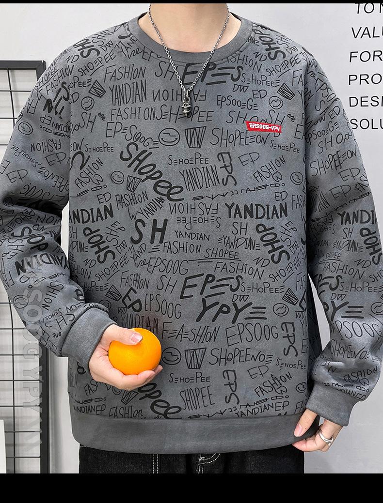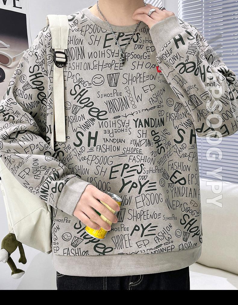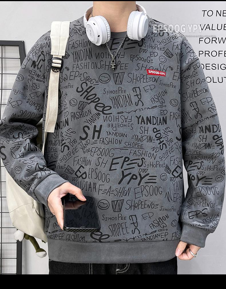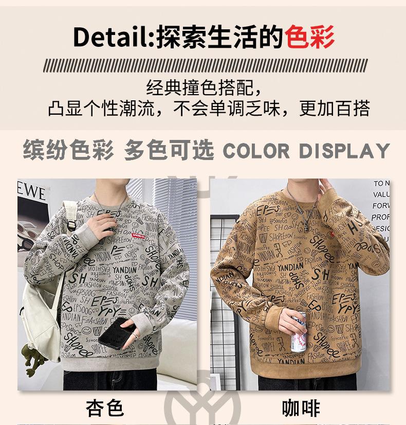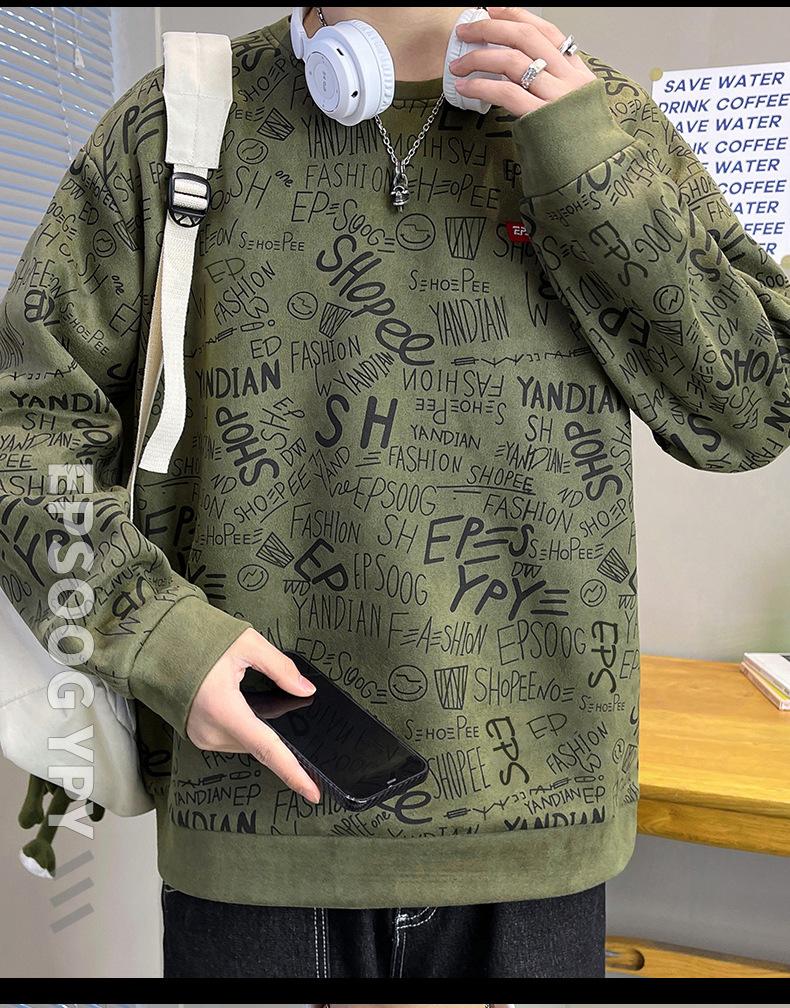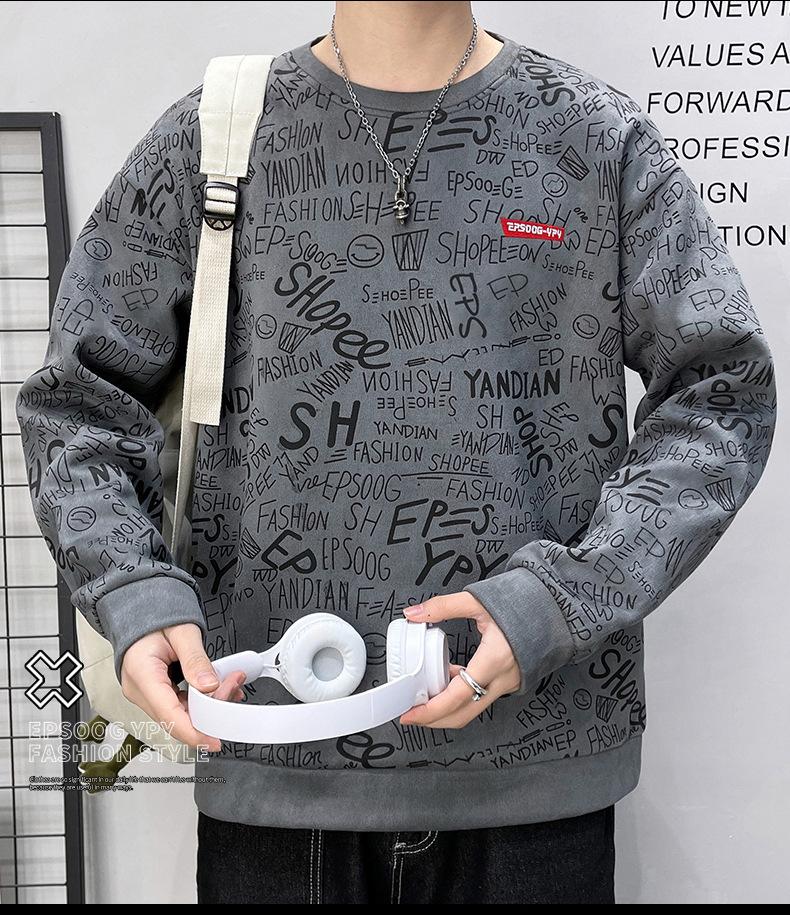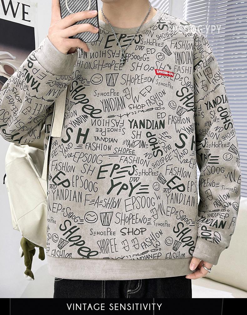 Sudadera Nueva de Primavera y Otoño para Hombre Moda Retro Americana Casual Manga Larga Camiseta Base Estilo Trendy para Adolescentes Estudiantes