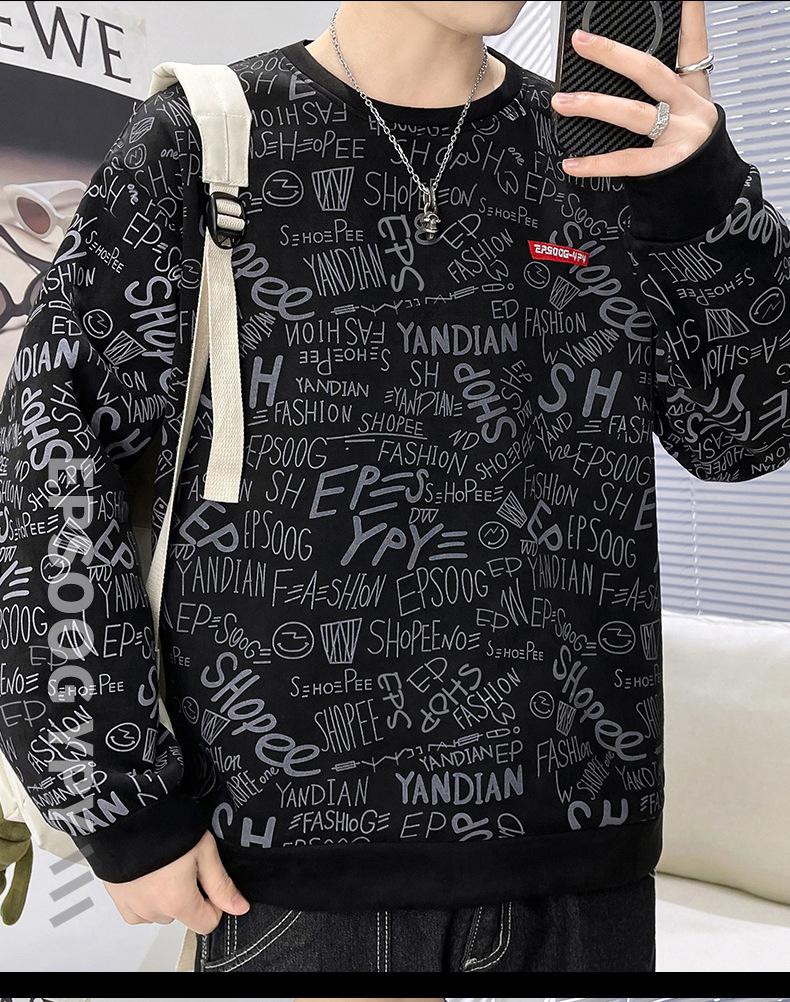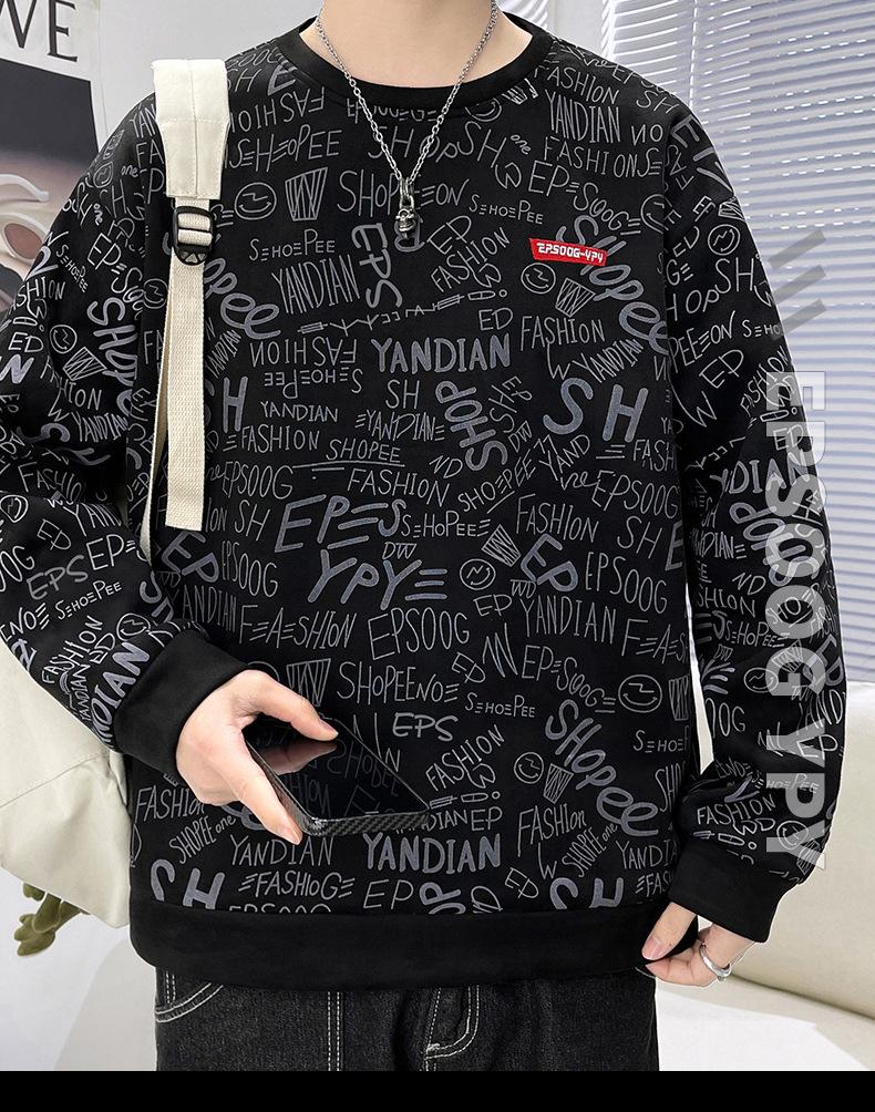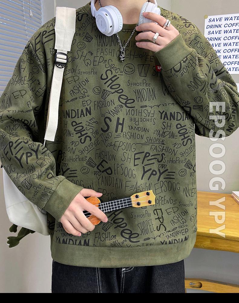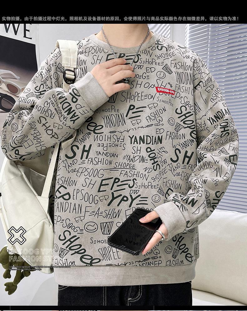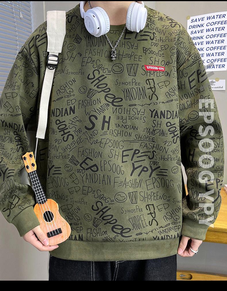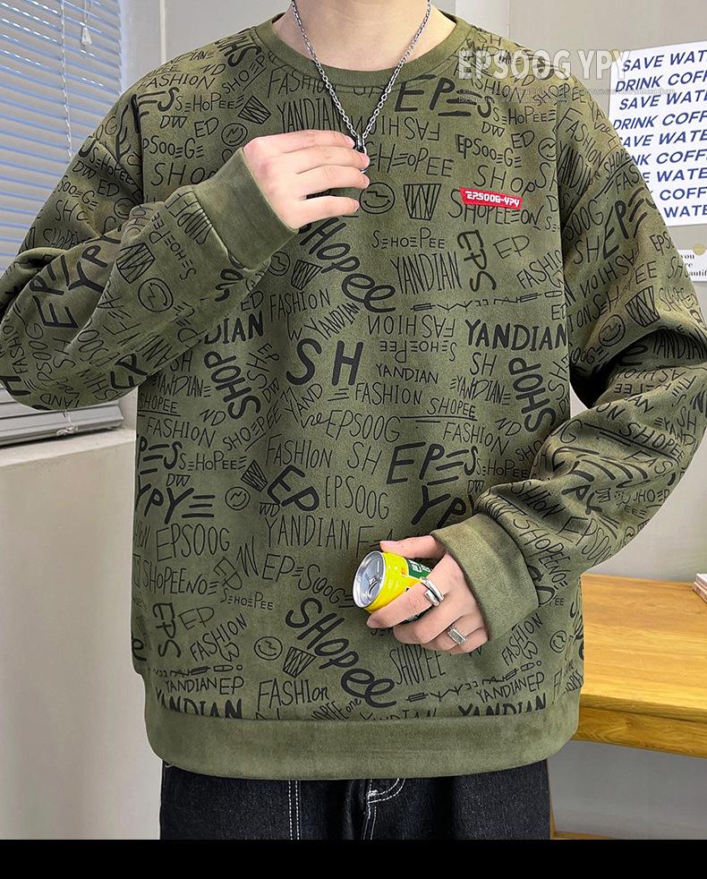 Sudadera Nueva de Primavera y Otoño para Hombre Moda Retro Americana Casual Manga Larga Camiseta Base Estilo Trendy para Adolescentes Estudiantes