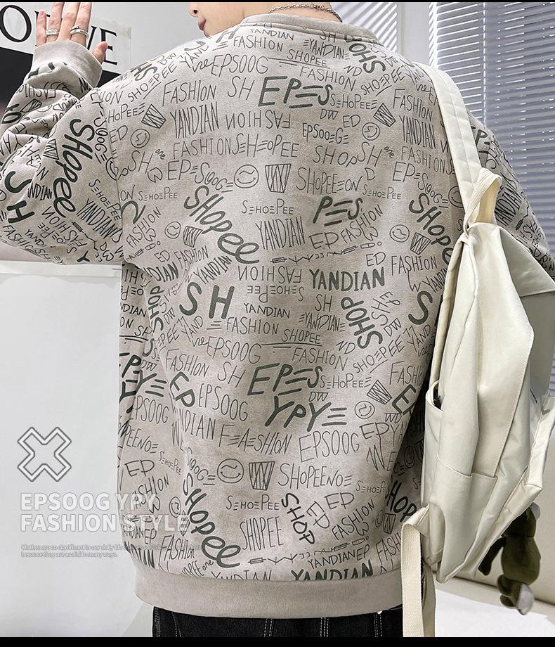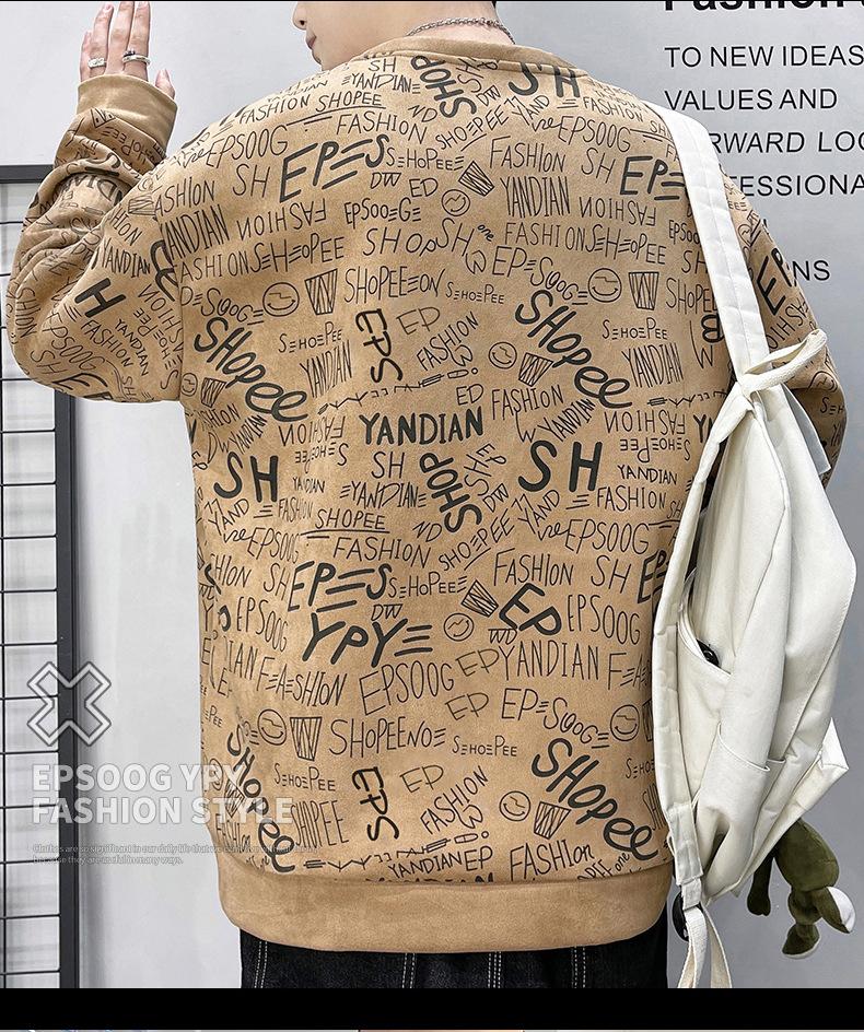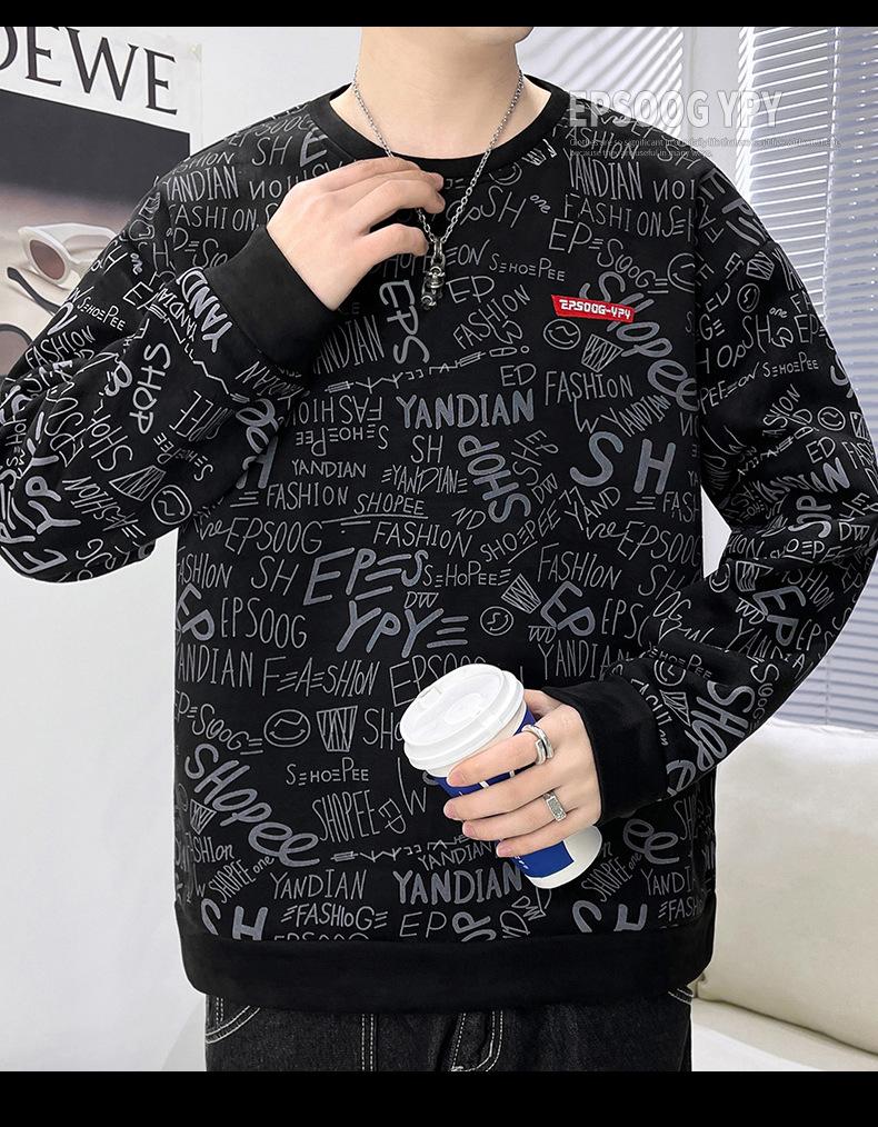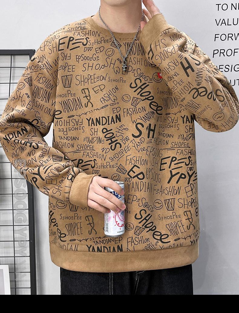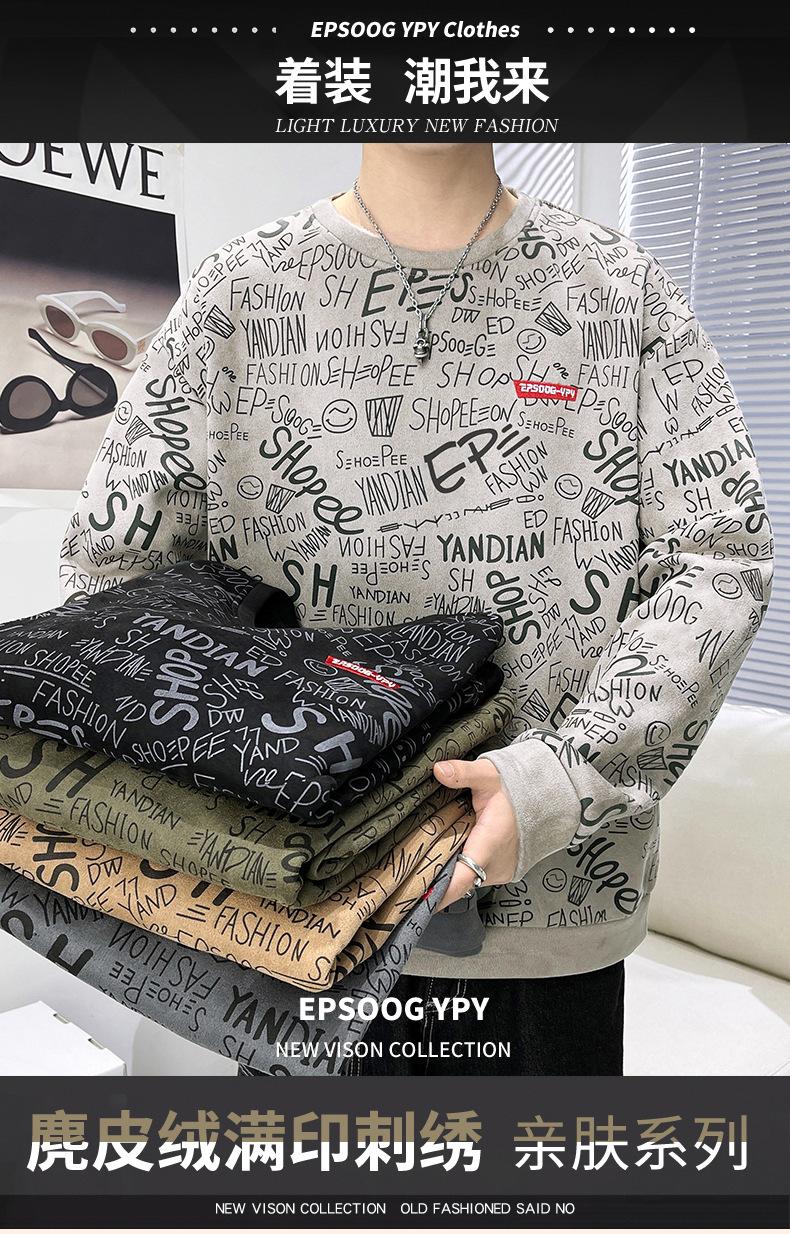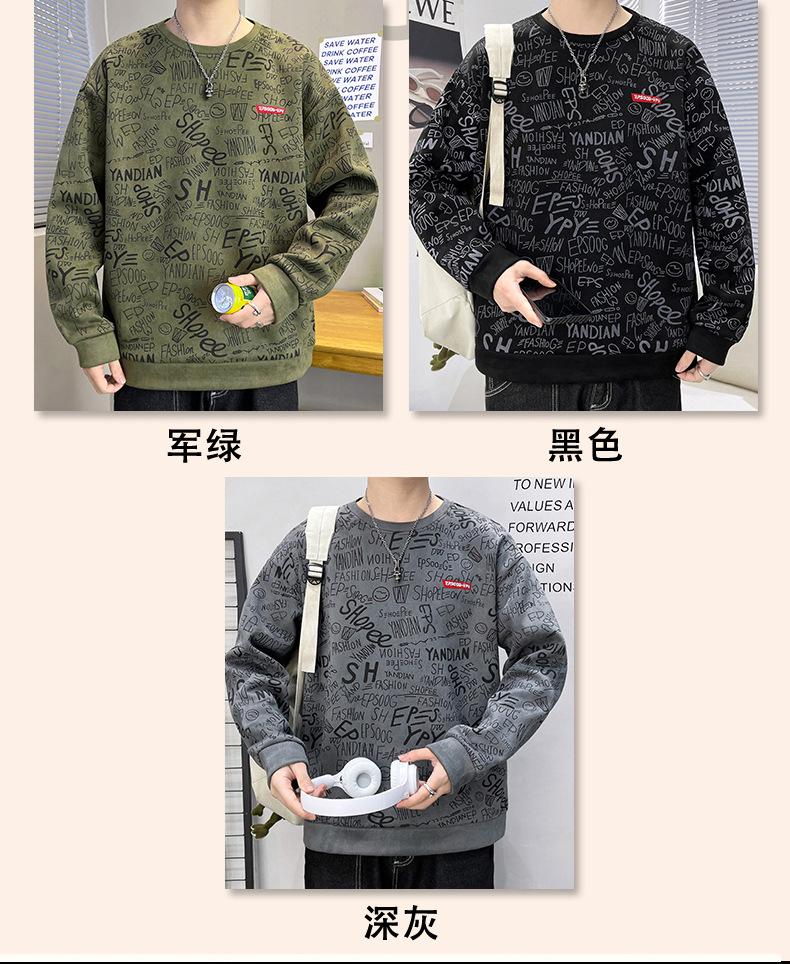 Sudadera Nueva de Primavera y Otoño para Hombre Moda Retro Americana Casual Manga Larga Camiseta Base Estilo Trendy para Adolescentes Estudiantes
