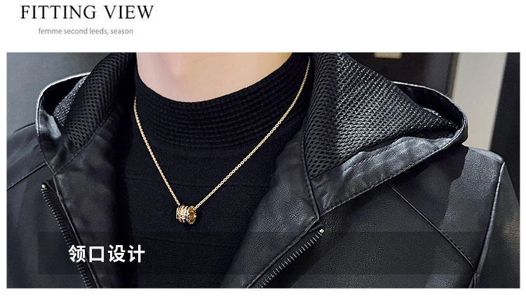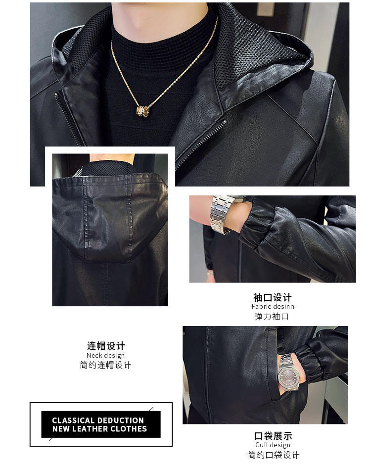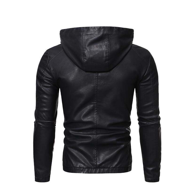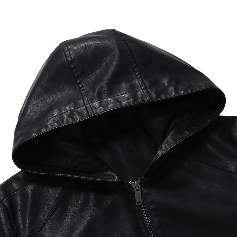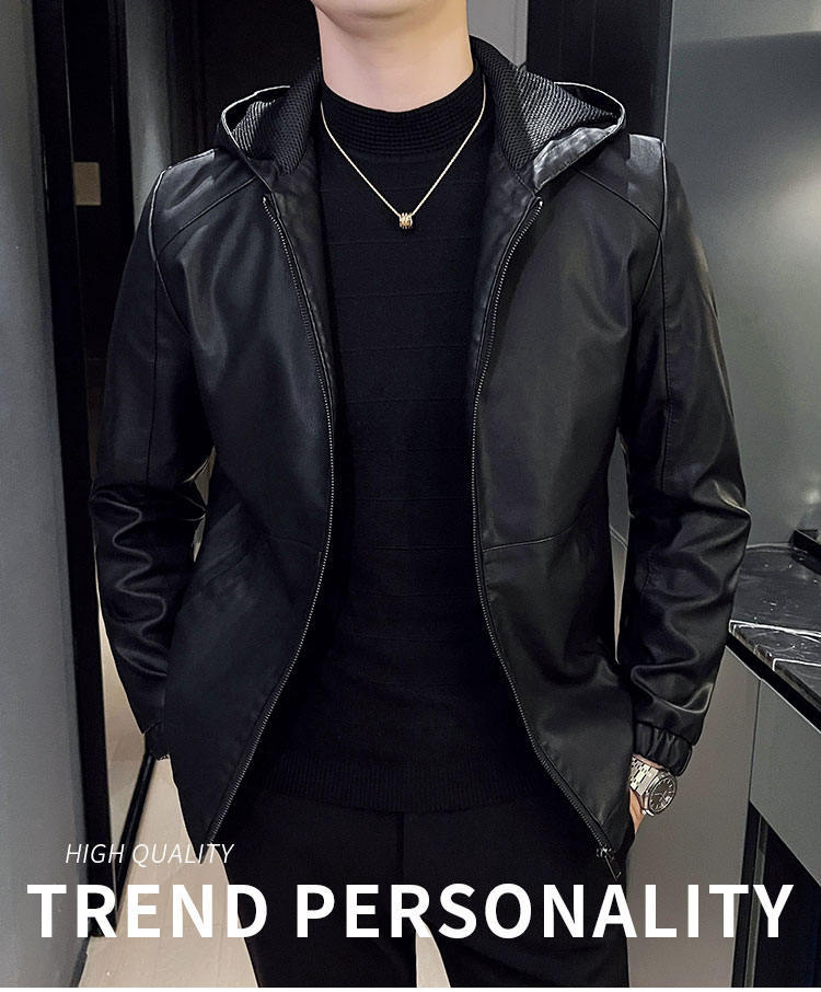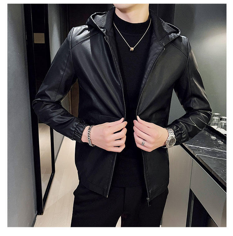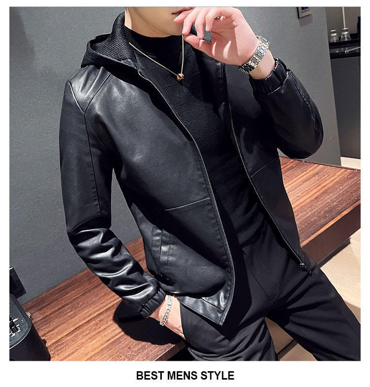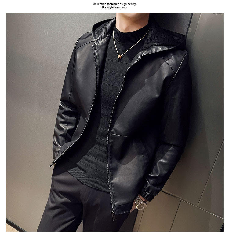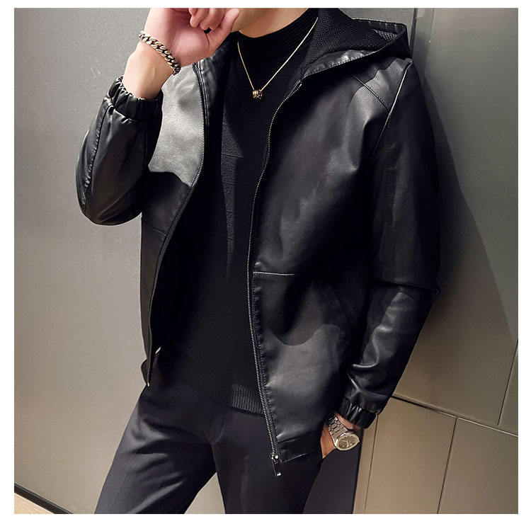 2023 Otoño e Invierno Europeo y Americano Nueva Chaqueta de Cuero Exportación Venta al por Mayor Moda Color Puro Slim Talla Grande Chaqueta de Cuero con Capucha para Hombre