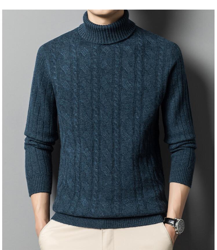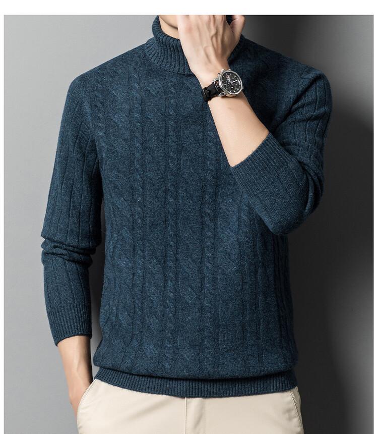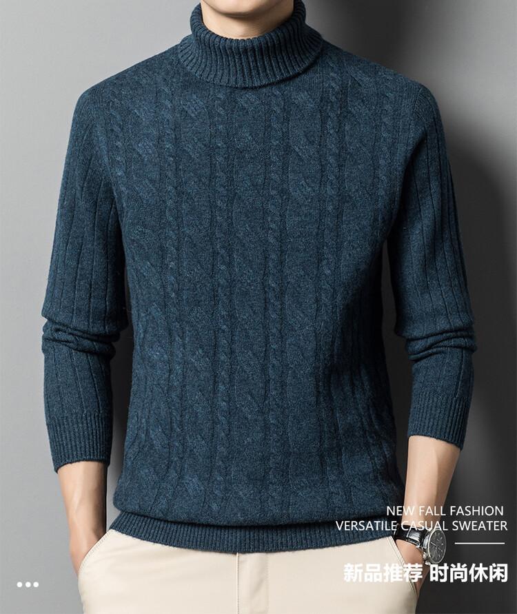 Suéter Manzian de cuello alto para hombre, suéter grueso y torcido, suéter de invierno de cachemira pura, camisa cálida de moda